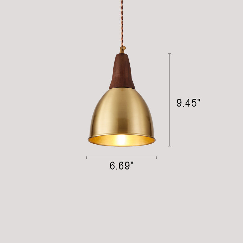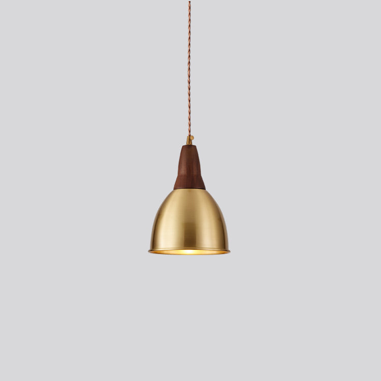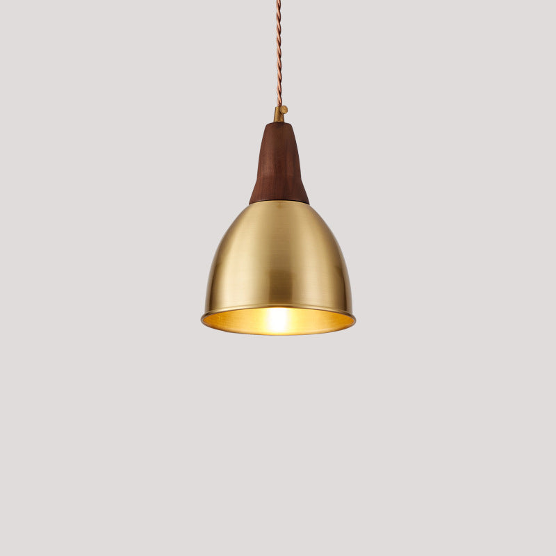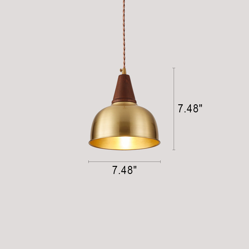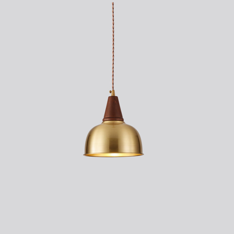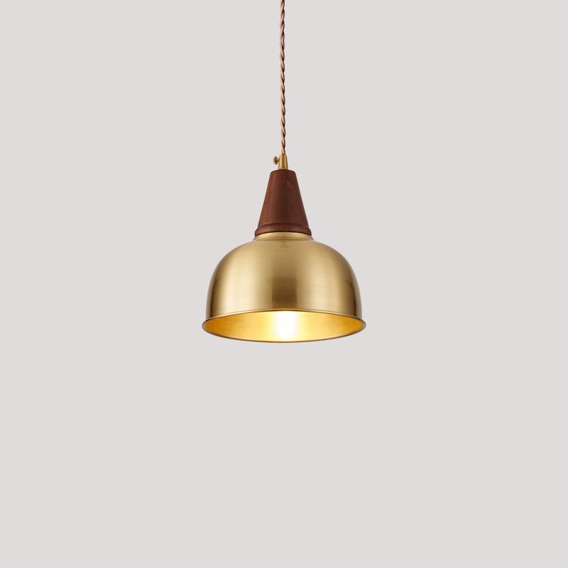 北欧ヴィンテージ 真鍮ドーム ラウンドウォールナットトップ 1灯ペンダントライト