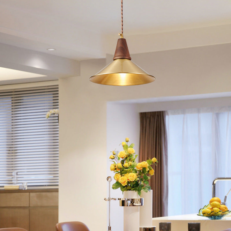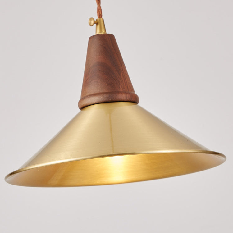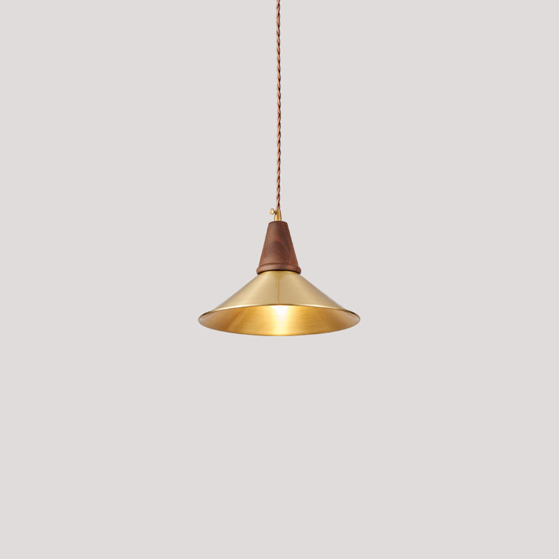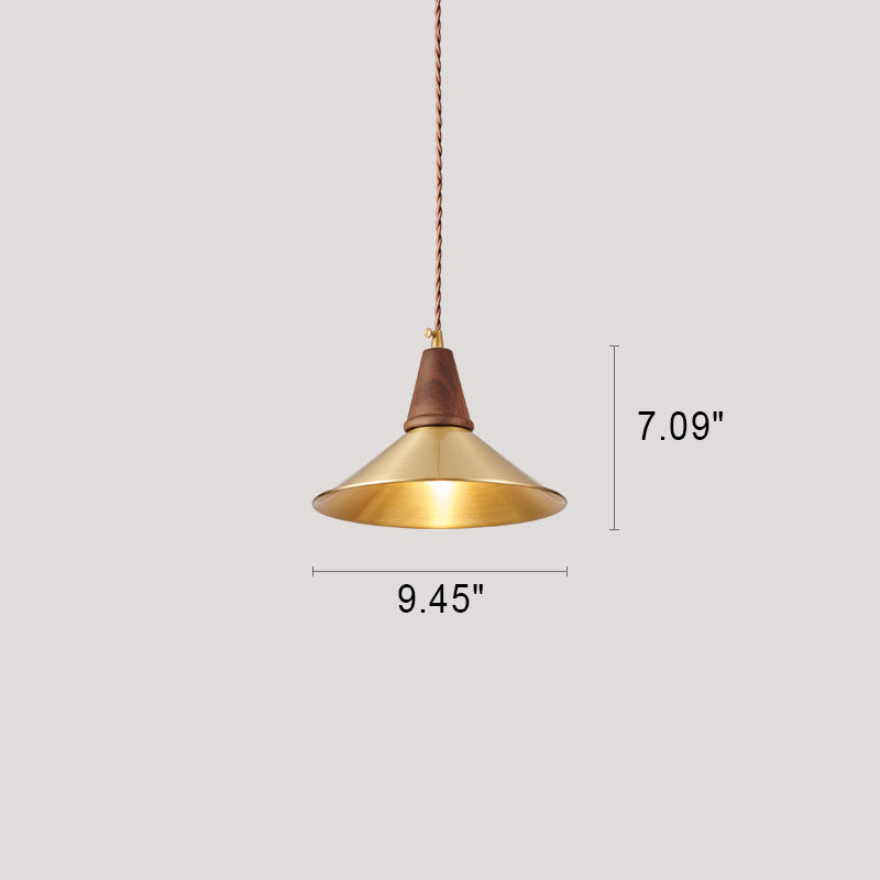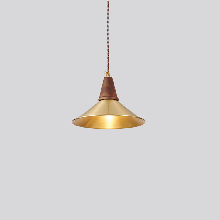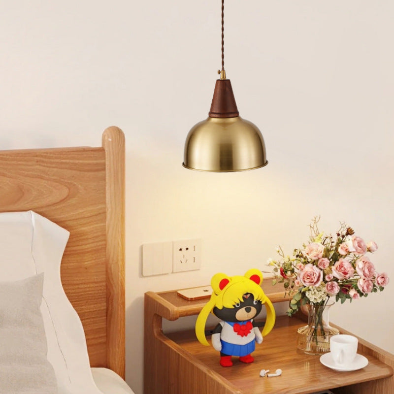 北欧ヴィンテージ 真鍮ドーム ラウンドウォールナットトップ 1灯ペンダントライト
