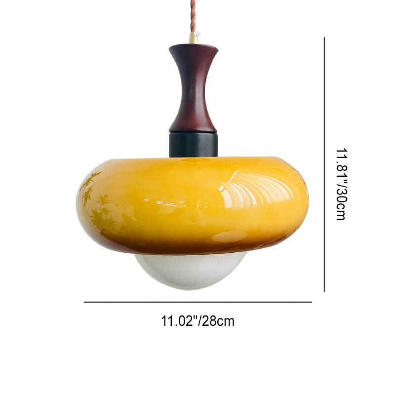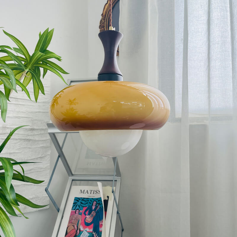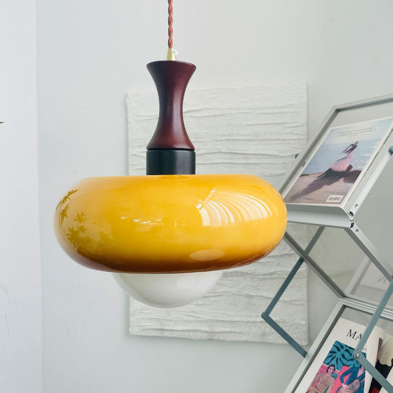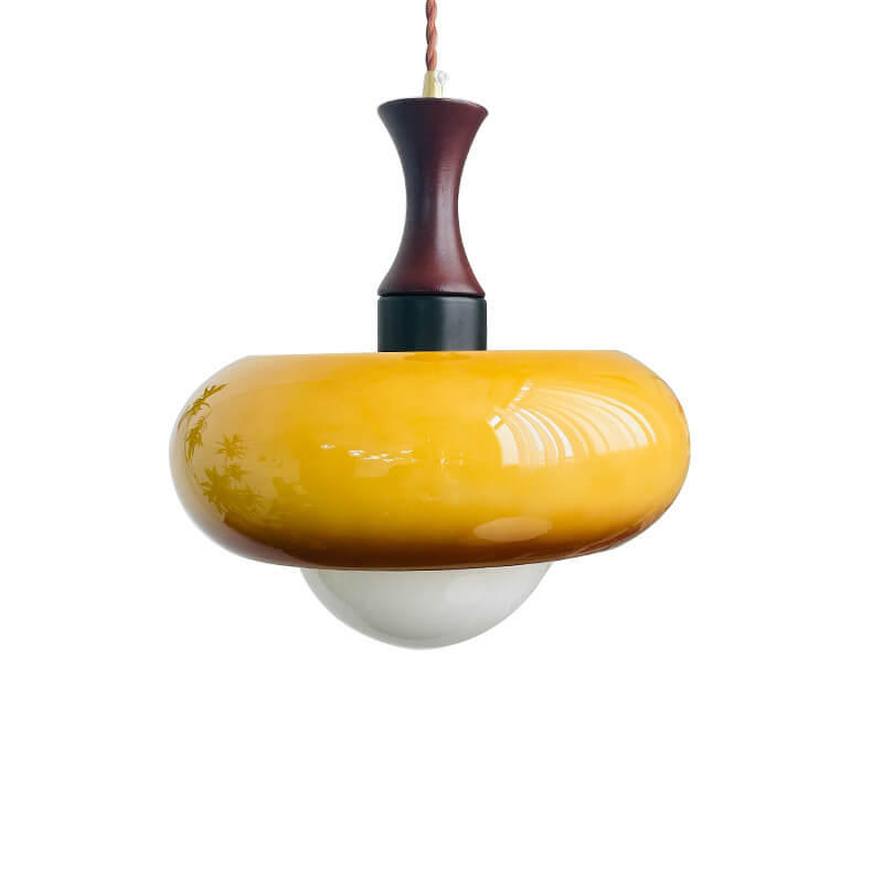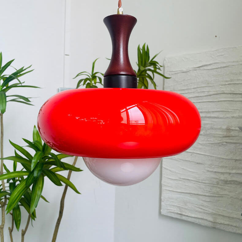 北欧ヴィンテージ キャラメルチェリーガラス ラウンドウォールナット 1灯ペンダントライト