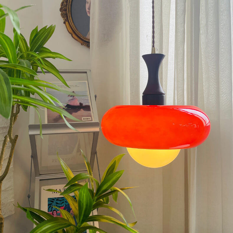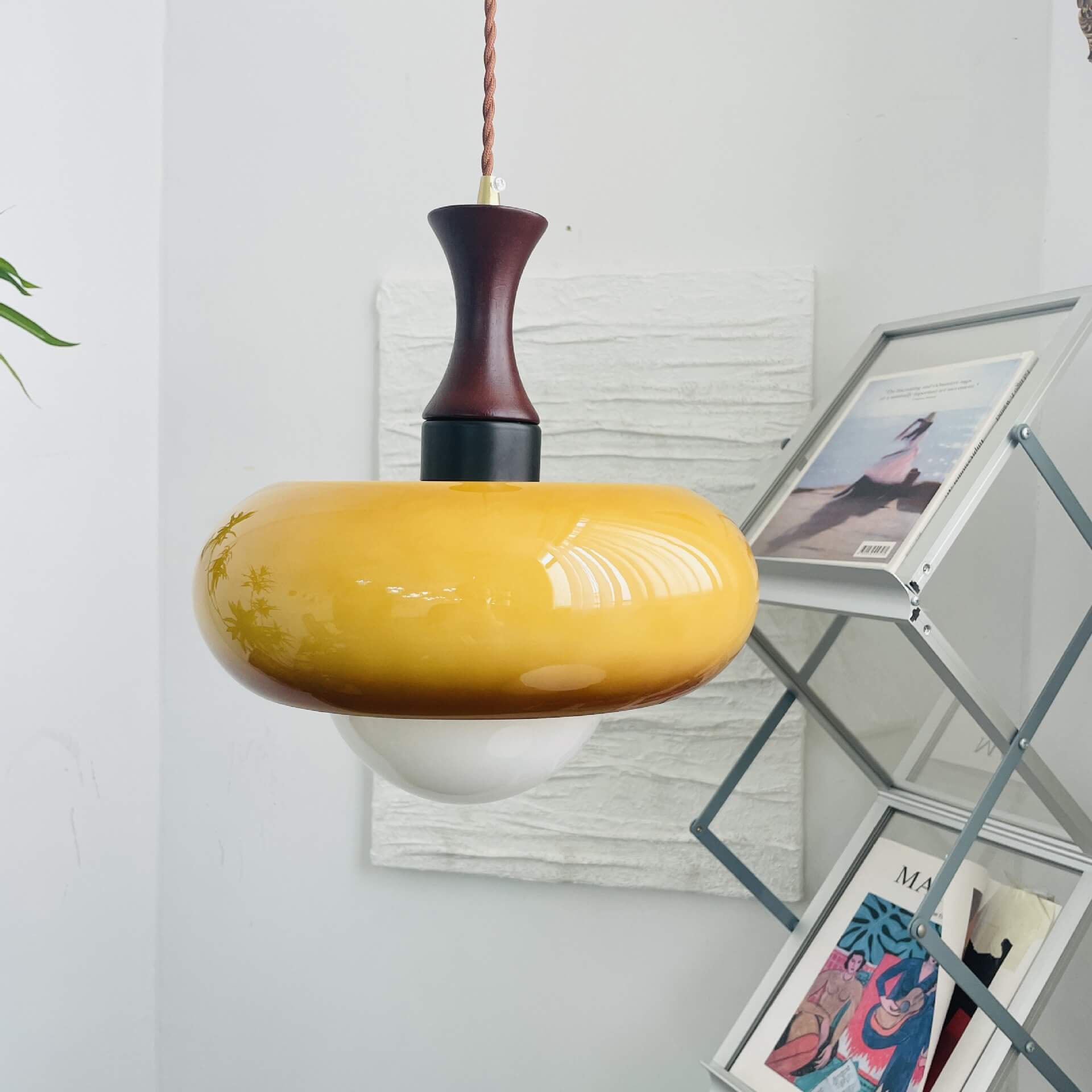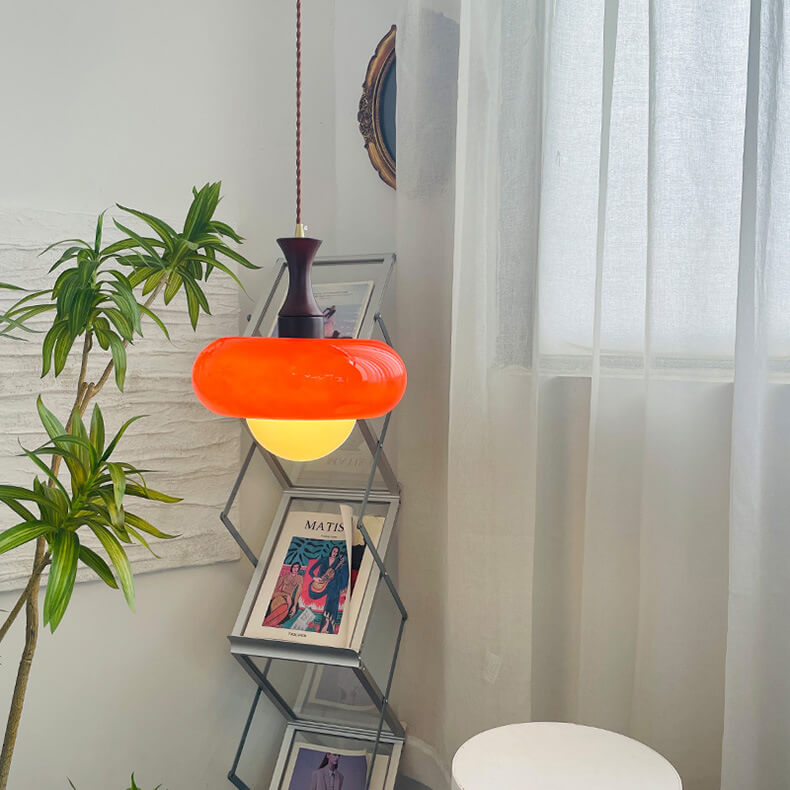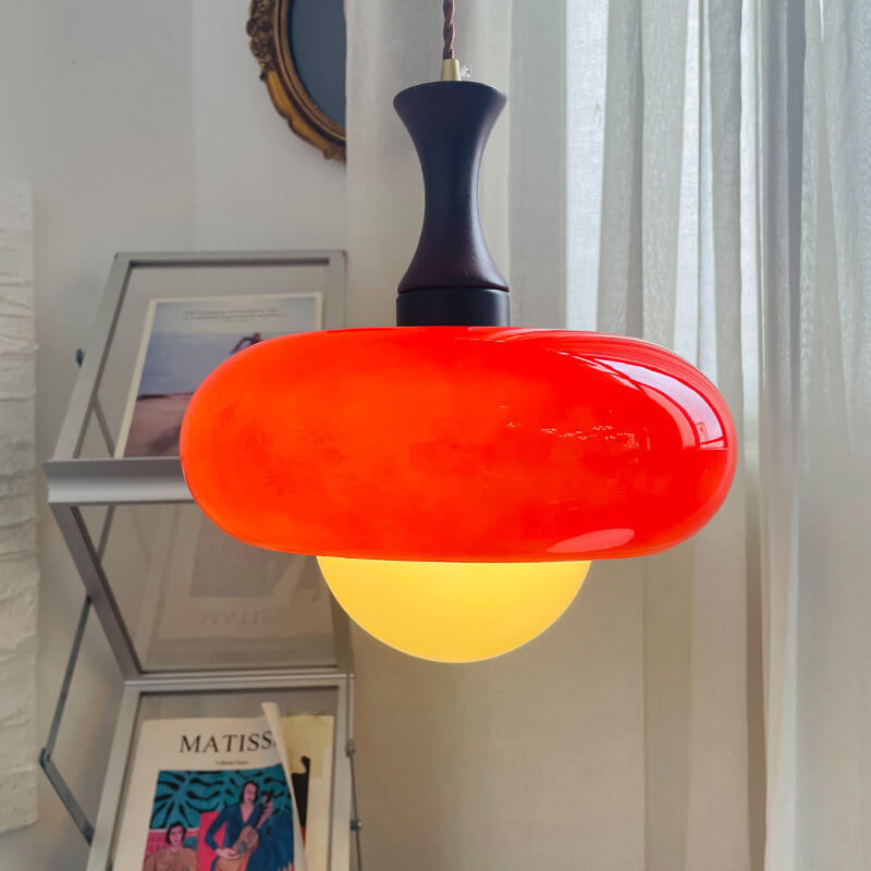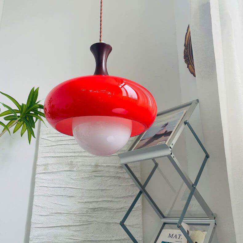 北欧ヴィンテージ キャラメルチェリーガラス ラウンドウォールナット 1灯ペンダントライト