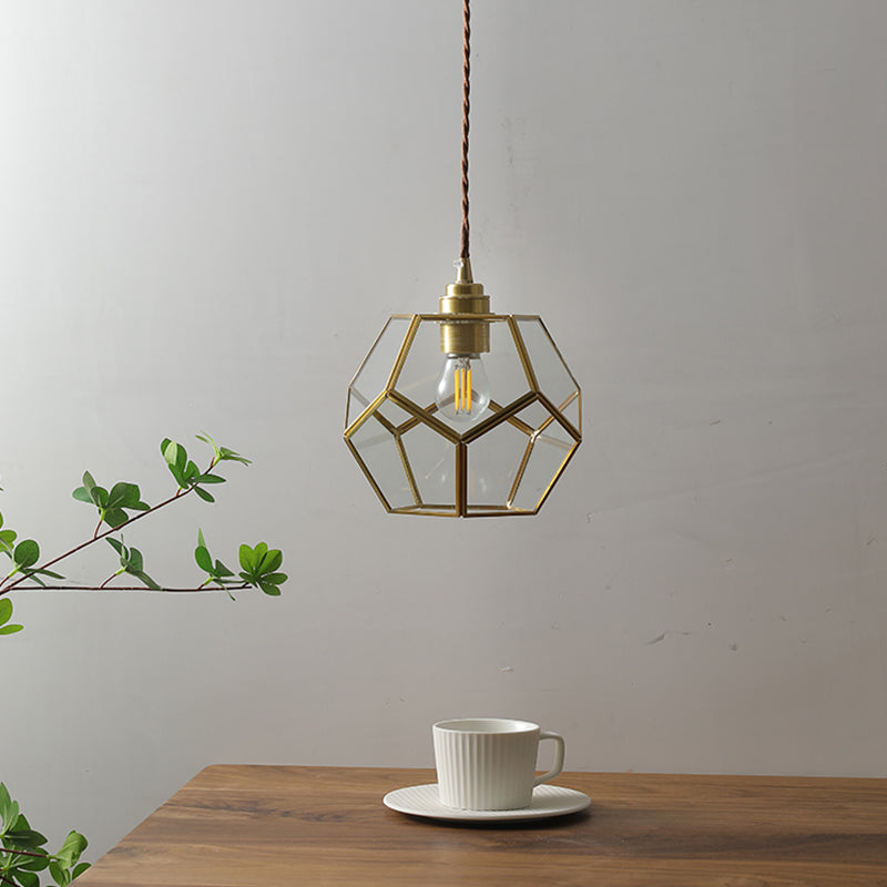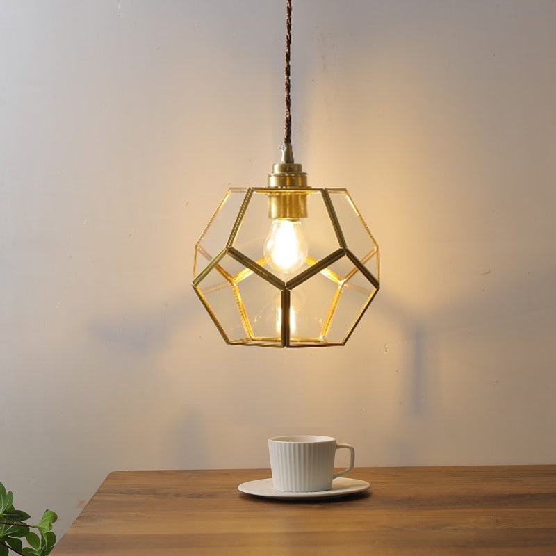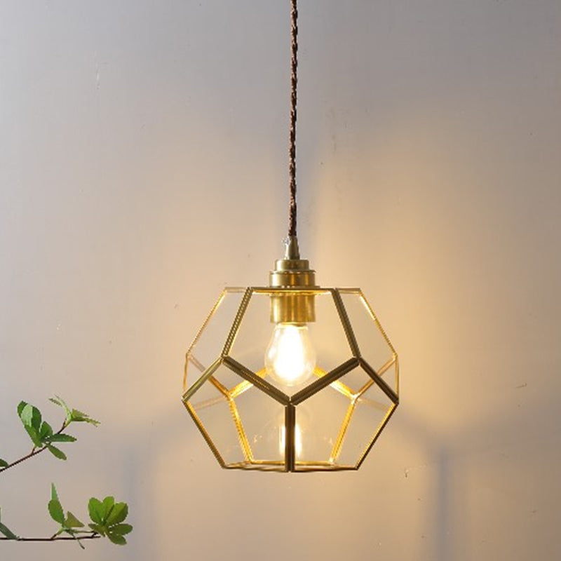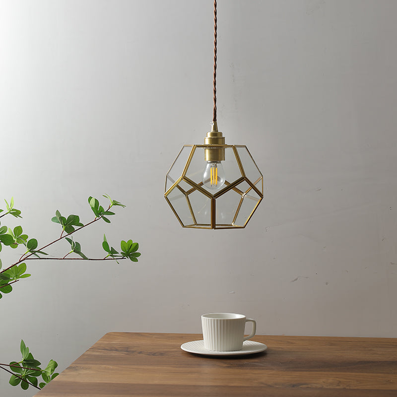 北欧ヴィンテージ 多角形 クリアガラス 真鍮 1灯ペンダントライト
