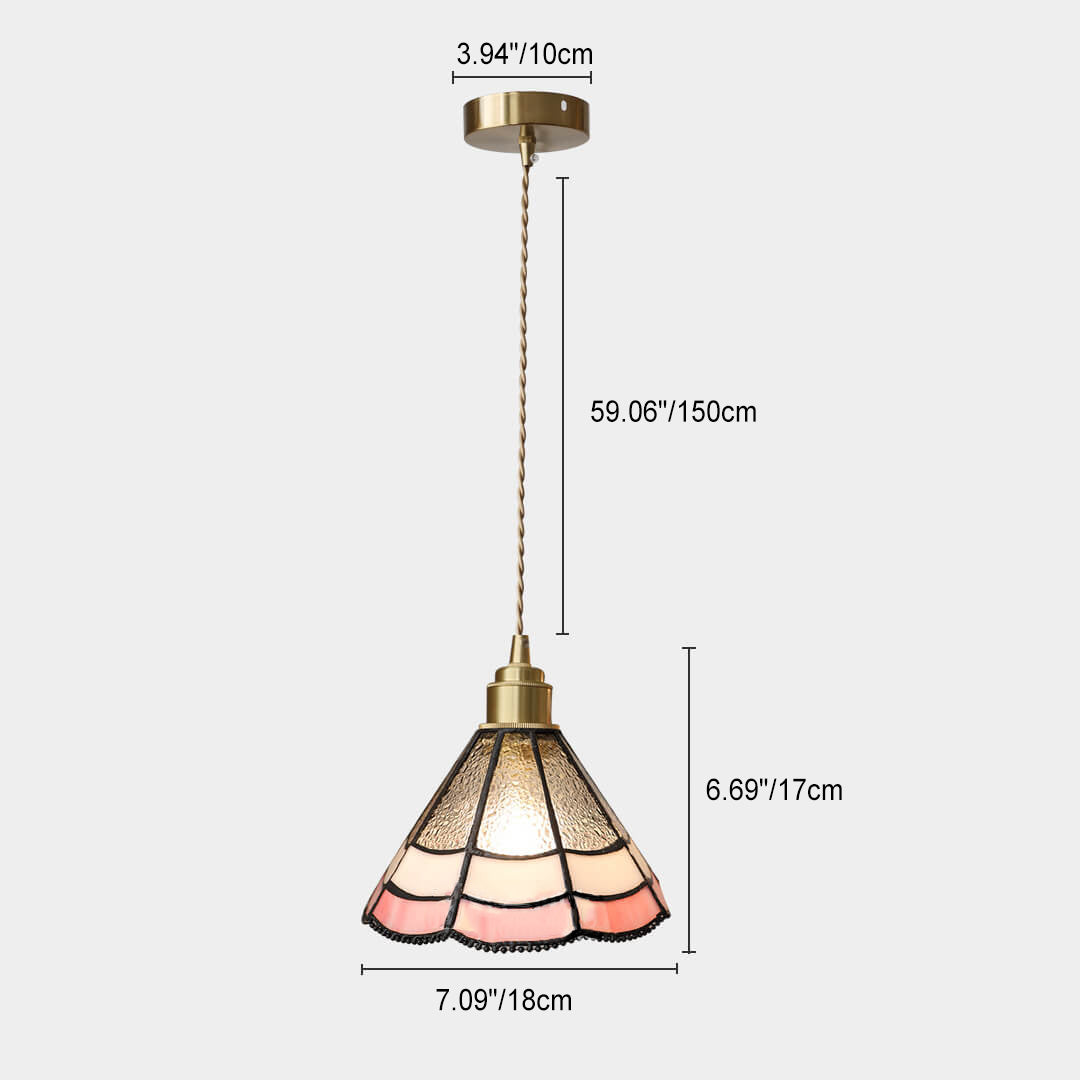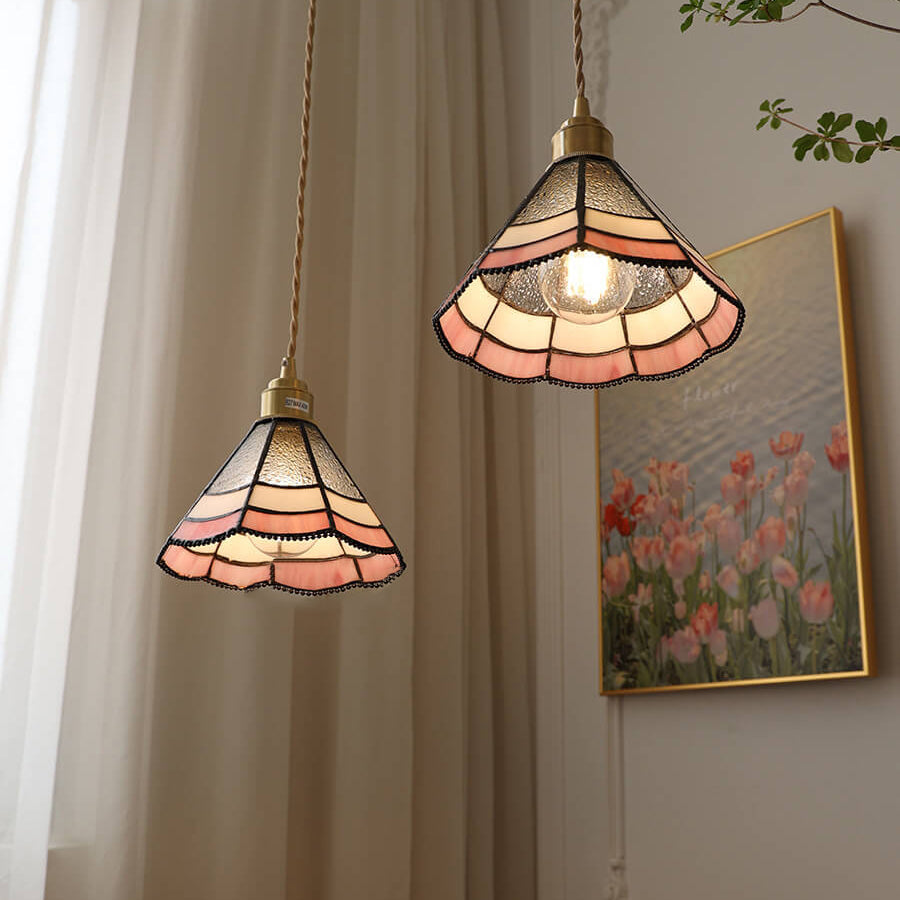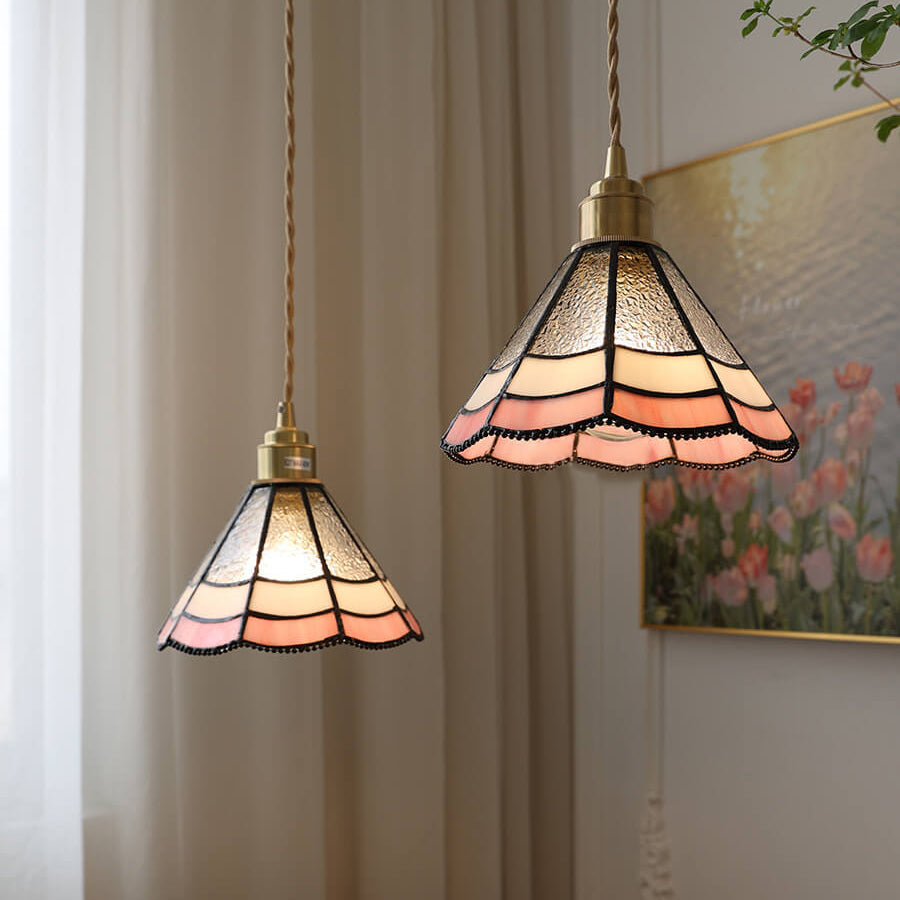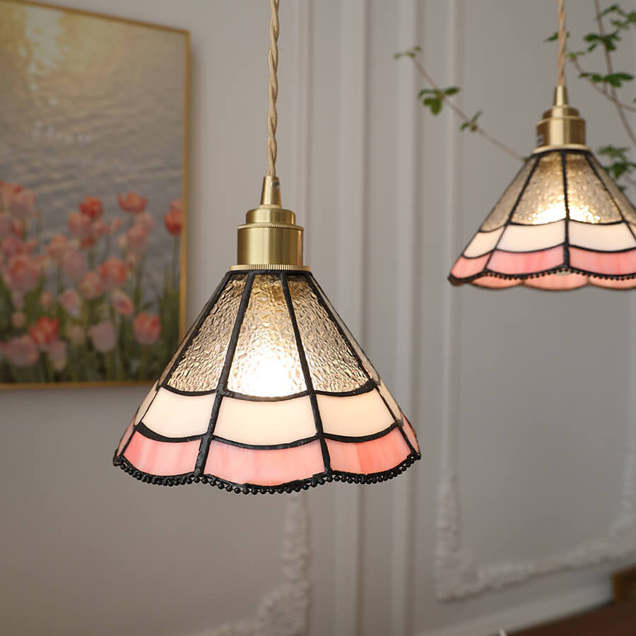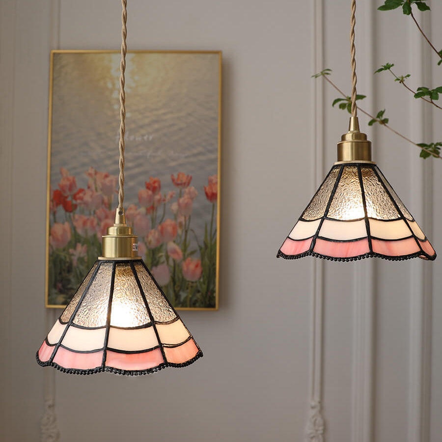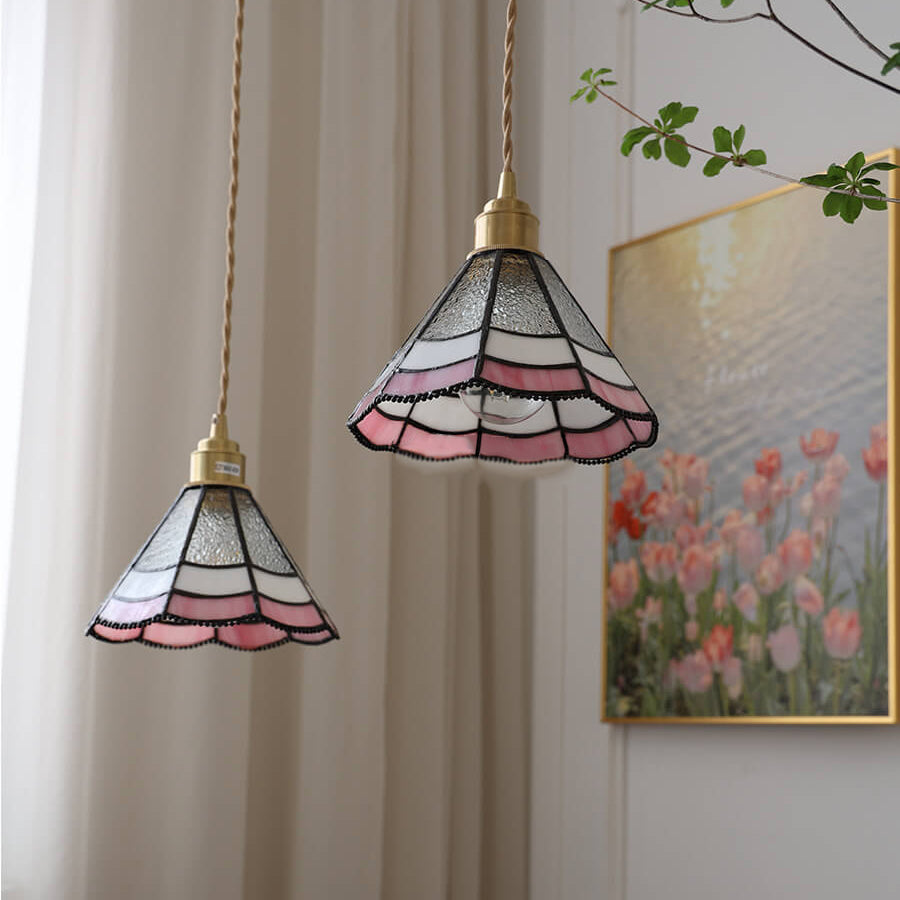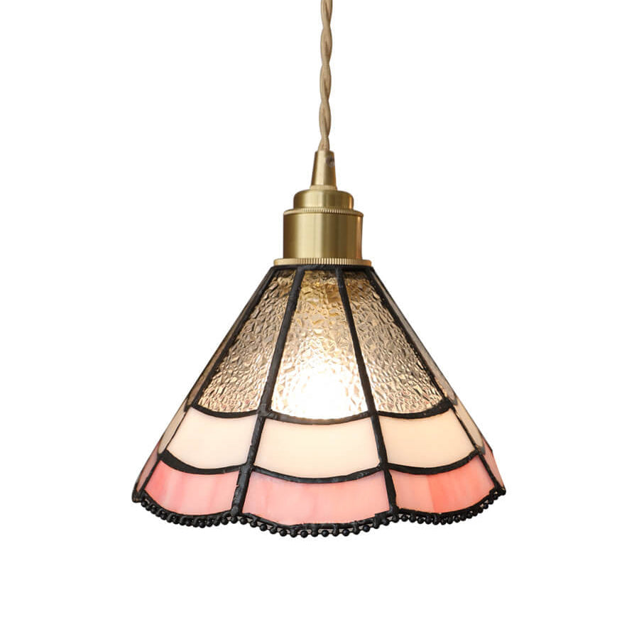 ノスタルジックな田園風真鍮ピンクレースウォーターグレインガラス1灯ペンダントライト
