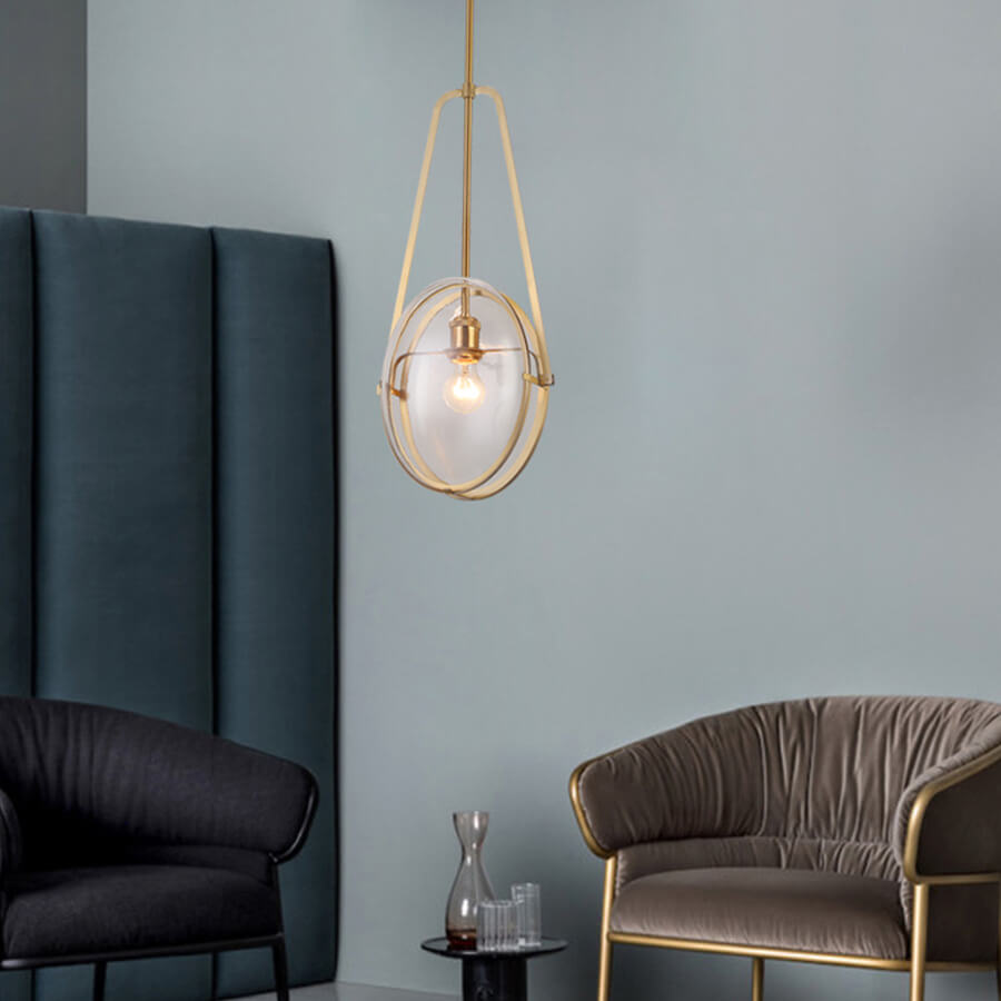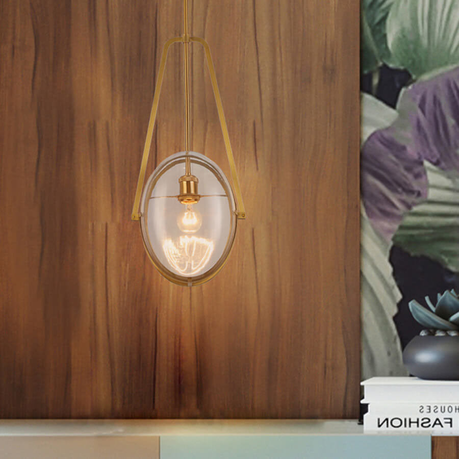 ポストモダンミニマリストクリアガラスオーバルステンレススチール1ライトペンダントライト