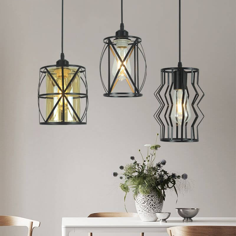 レトロなインダストリアルアイアンクリエイティブホローデザイン1灯ペンダントライト