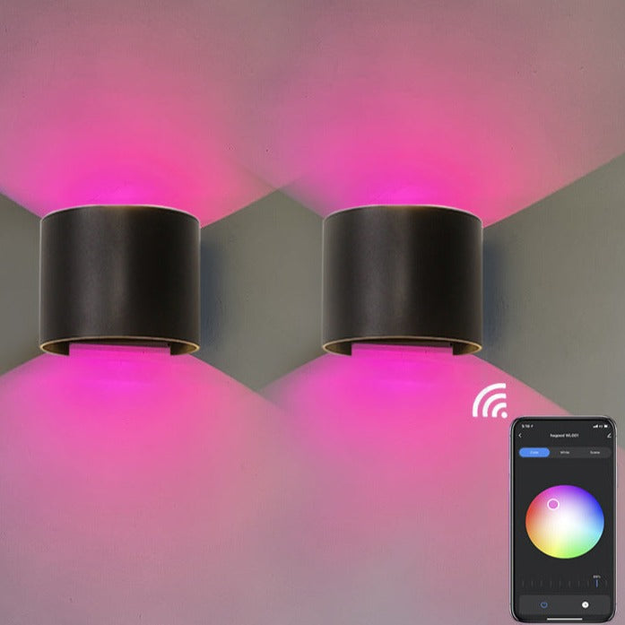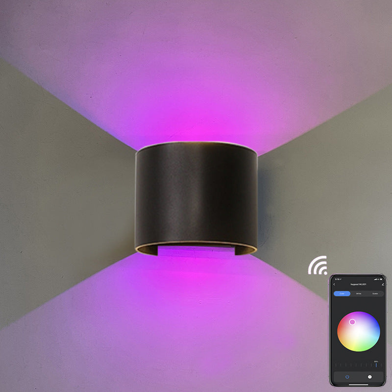 シンプルでインテリジェントな円筒形のアプリ調光防水LED壁取り付け用燭台ランプ