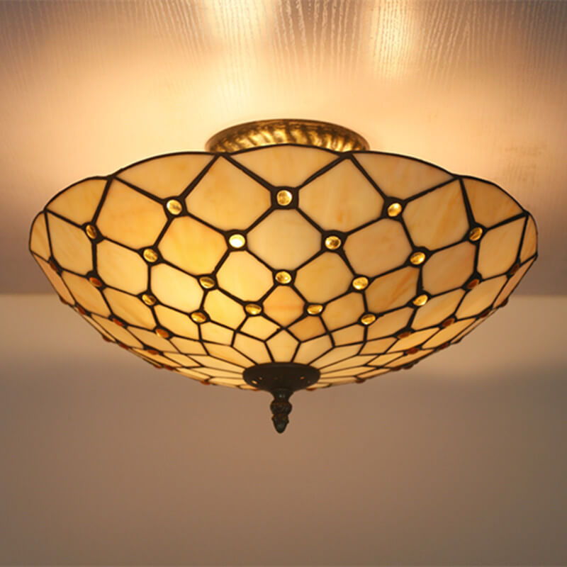 ティファニー ヨーロピアン サンフラワー ステンドグラス ボウル 3灯 フラッシュマウント シーリングライト