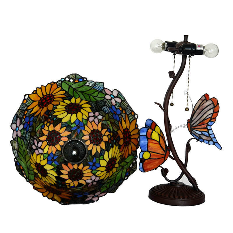 Tiffany Pastoral Double Butterfly Sunflower Stained Glass 2-Light Table Lamp