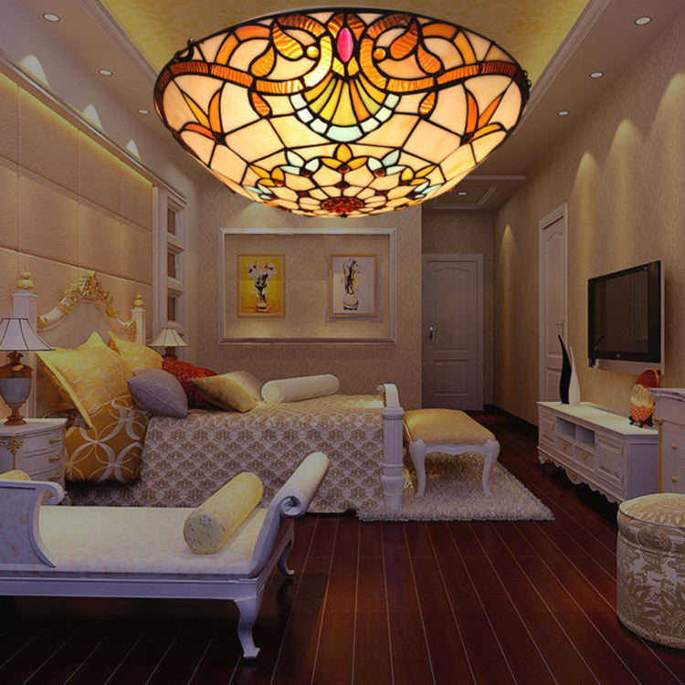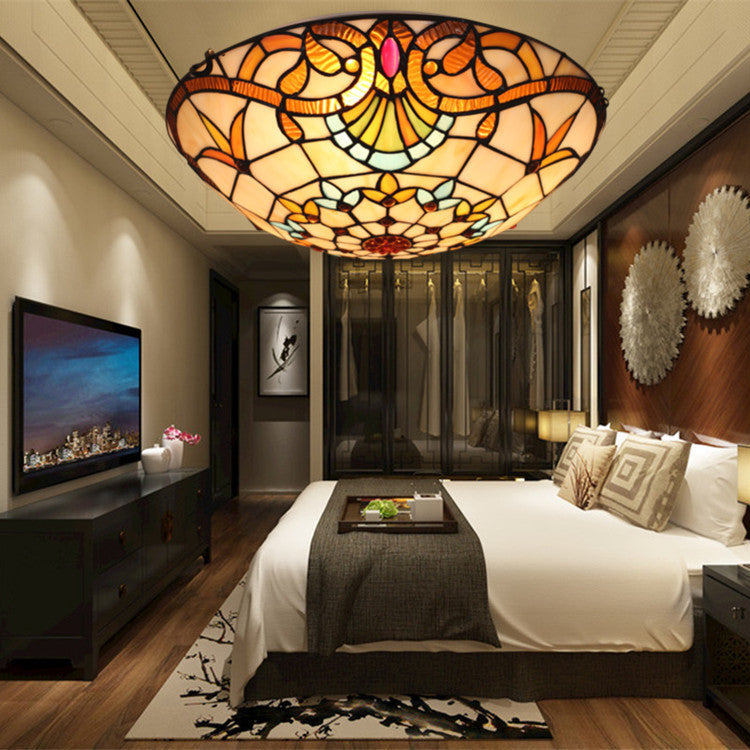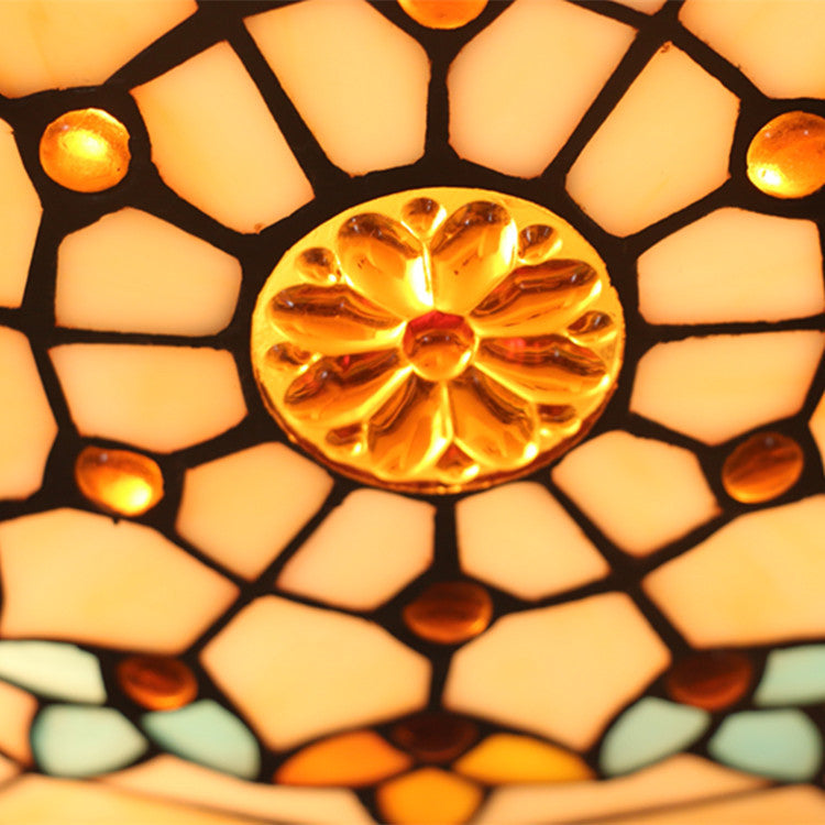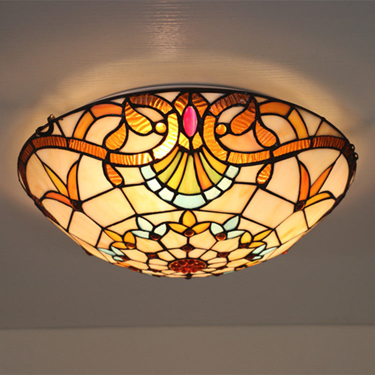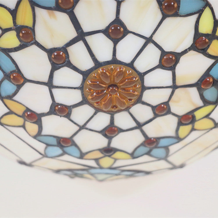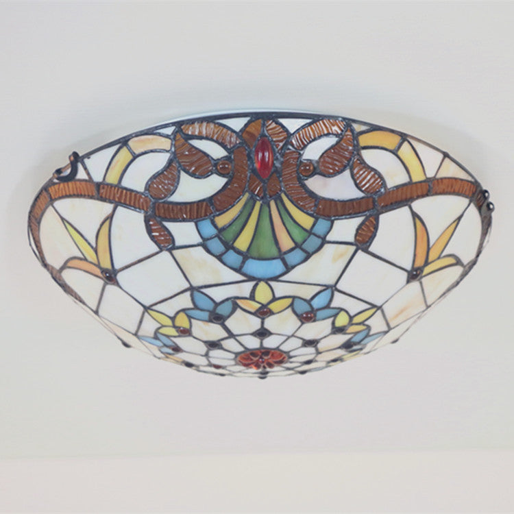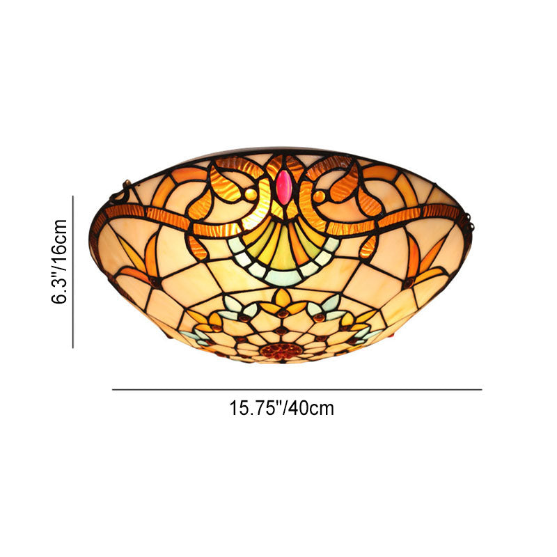 ティファニー ヴィンテージ バロック ジェムストーン ラウンド 3灯 フラッシュマウント シーリングライト