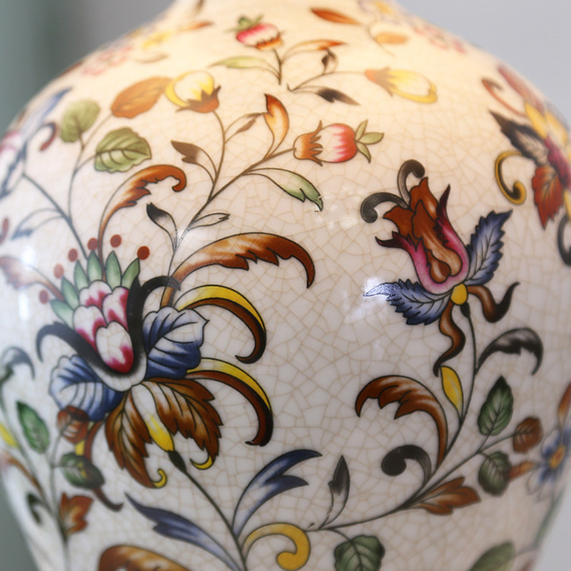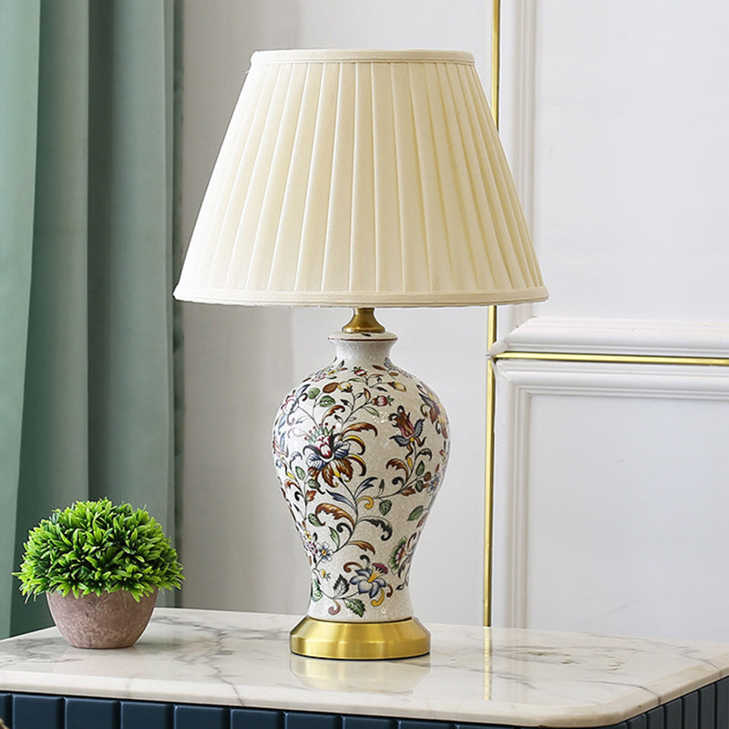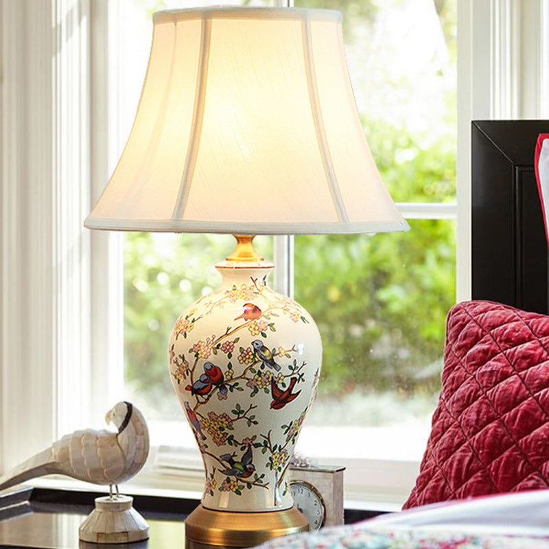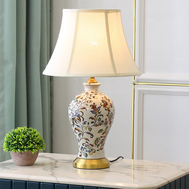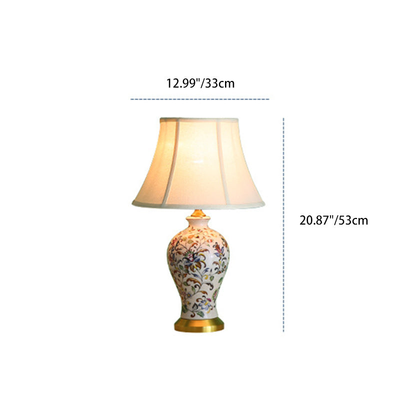 Traditional Chinese Drum Iron Ceramic Fabric 1-Light Table Lamp For Living Room