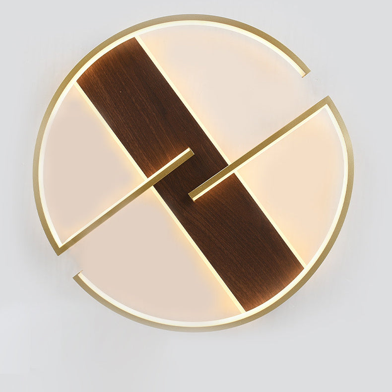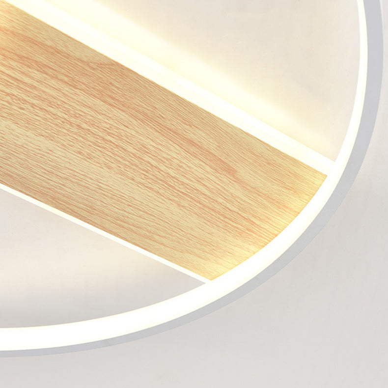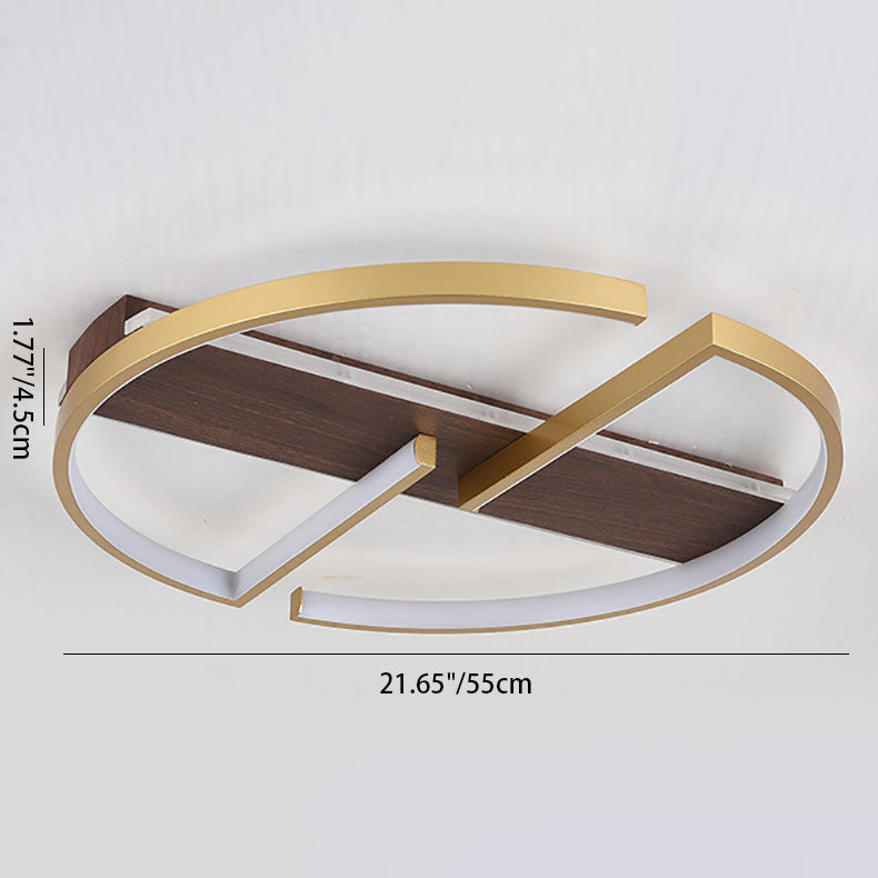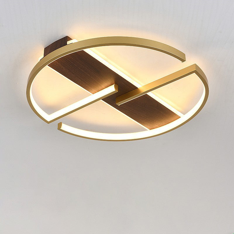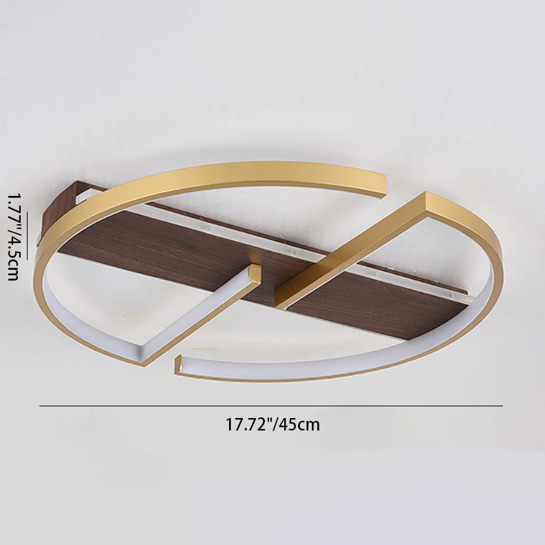 伝統的な中国風木目調幾何学模様リングLEDフラッシュマウントシーリングライト(リビングルーム用)