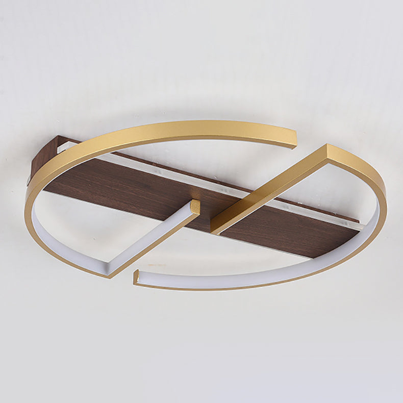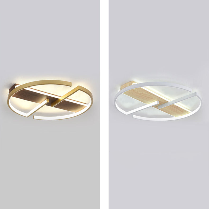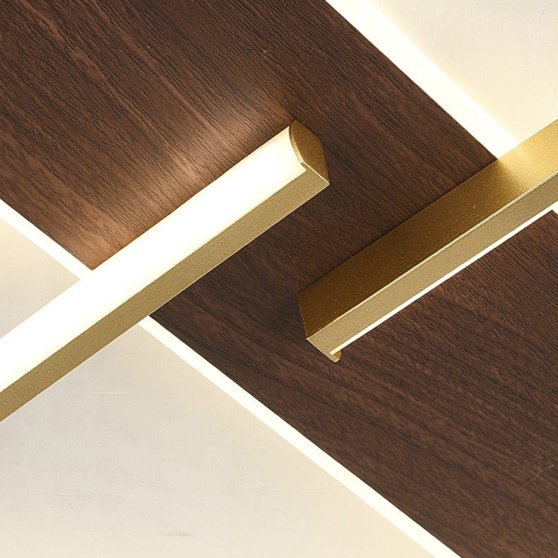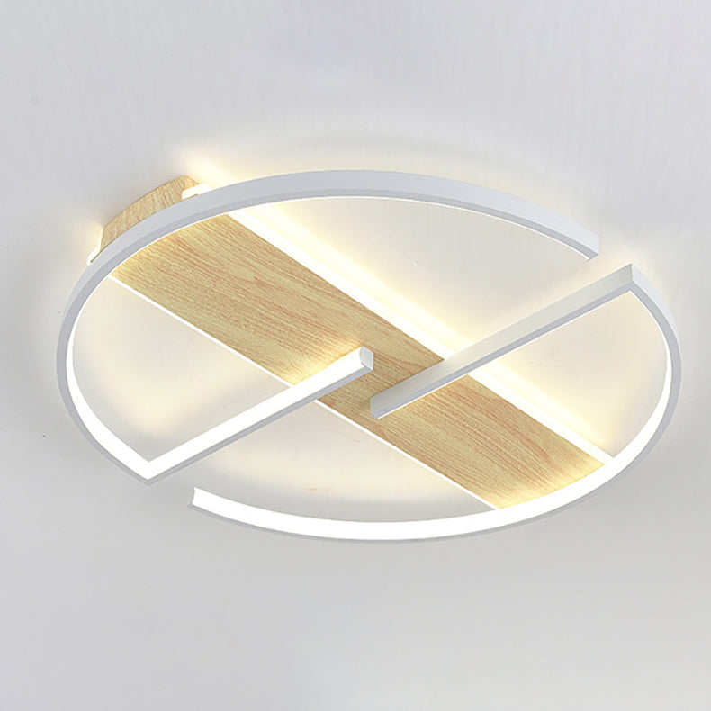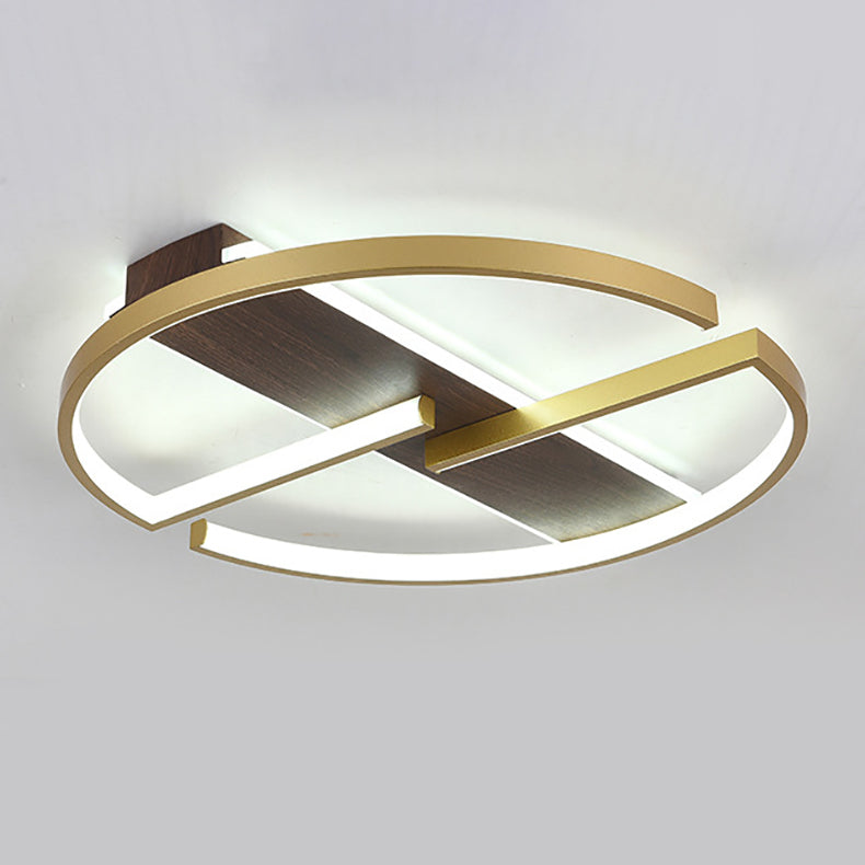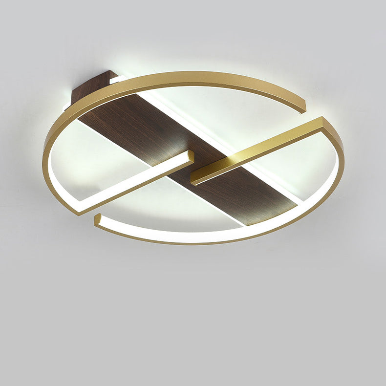 伝統的な中国風木目調幾何学模様リングLEDフラッシュマウントシーリングライト(リビングルーム用)