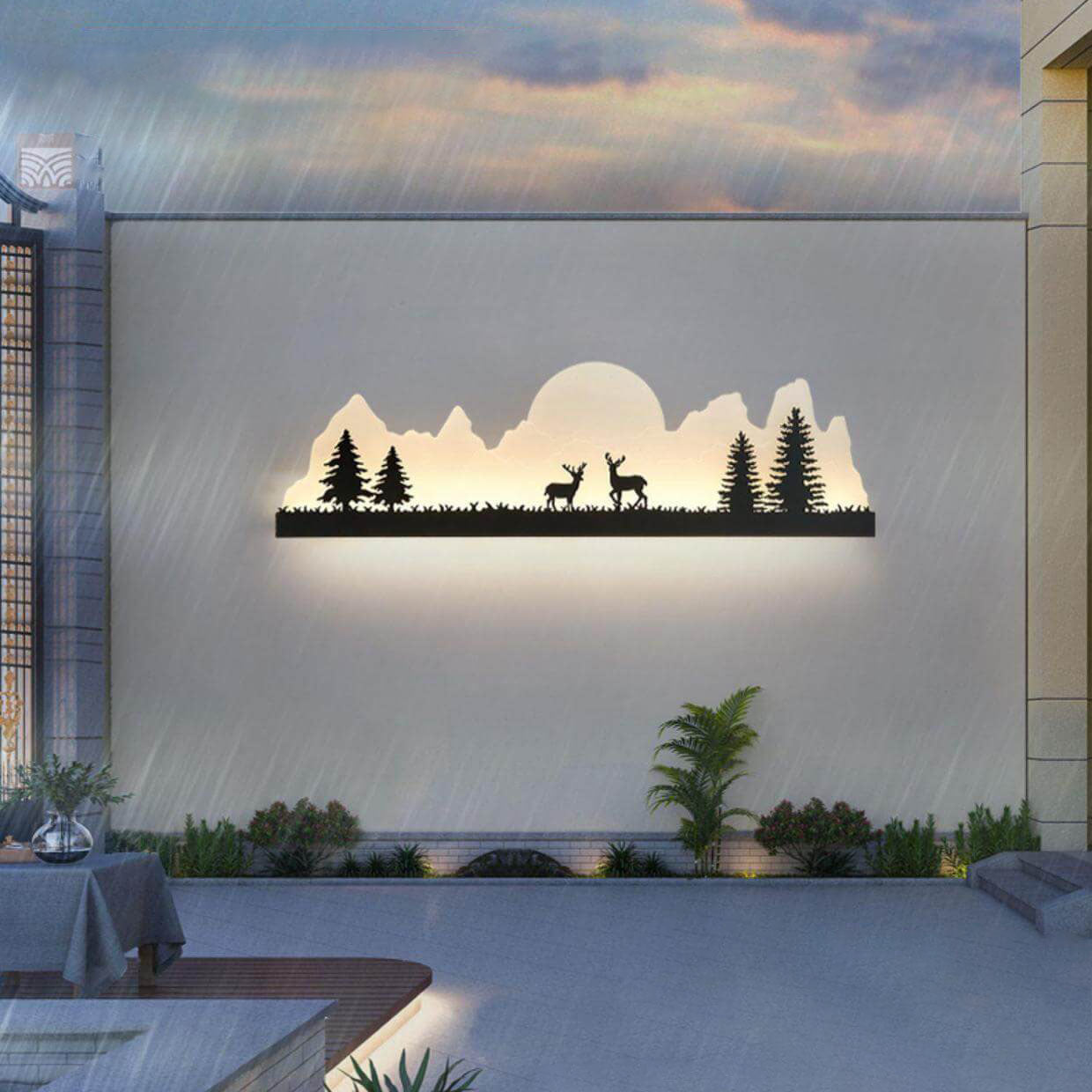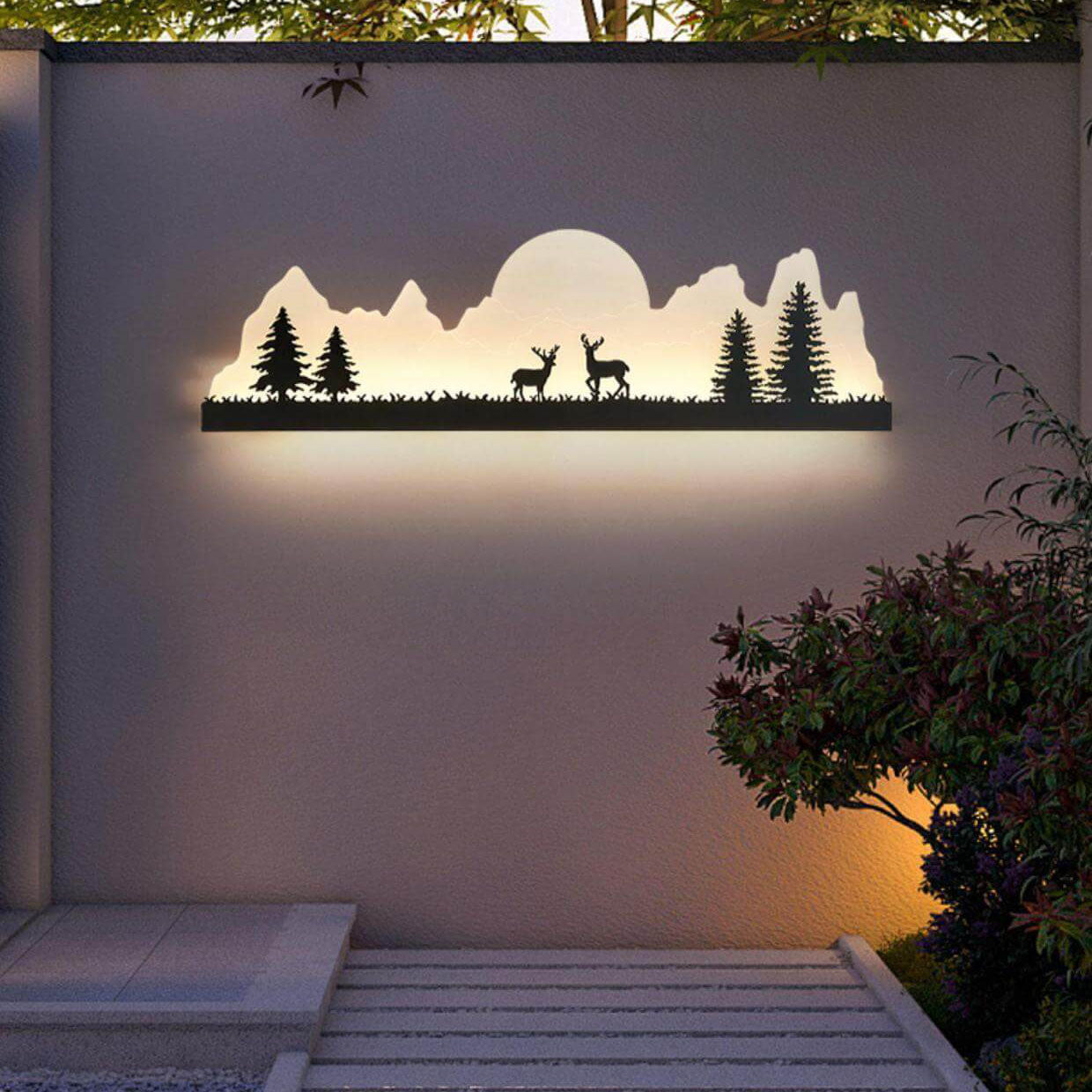 伝統的な中国風鉄製アクリル風景画 屋外用LED壁取り付け用燭台ランプ ガーデン用