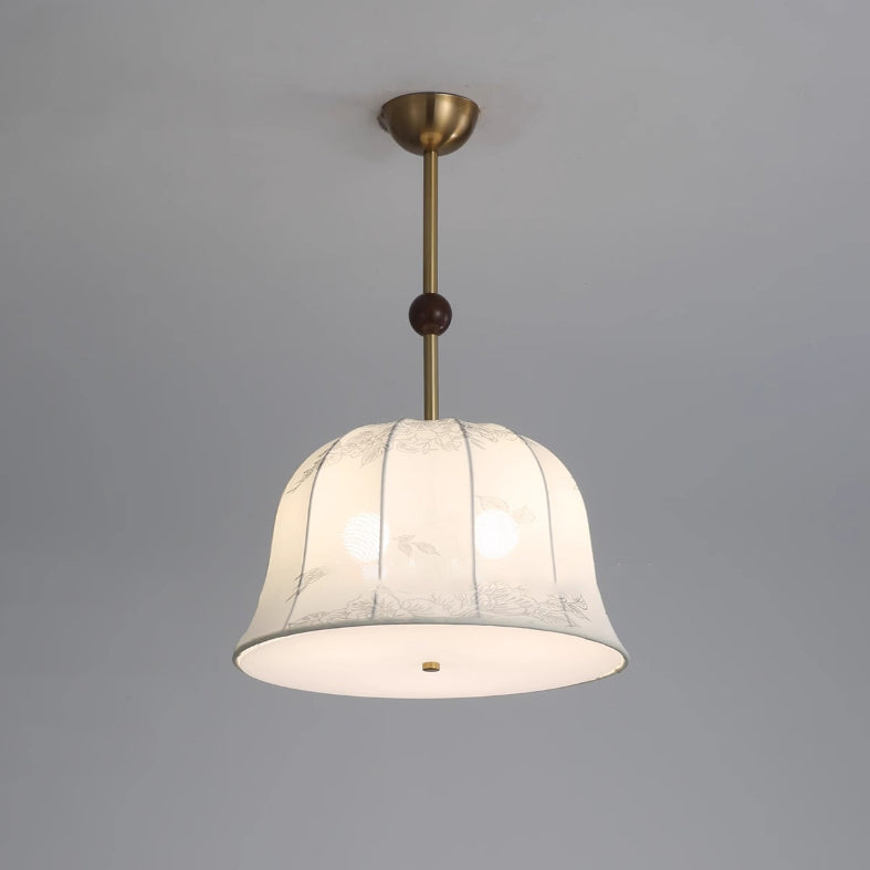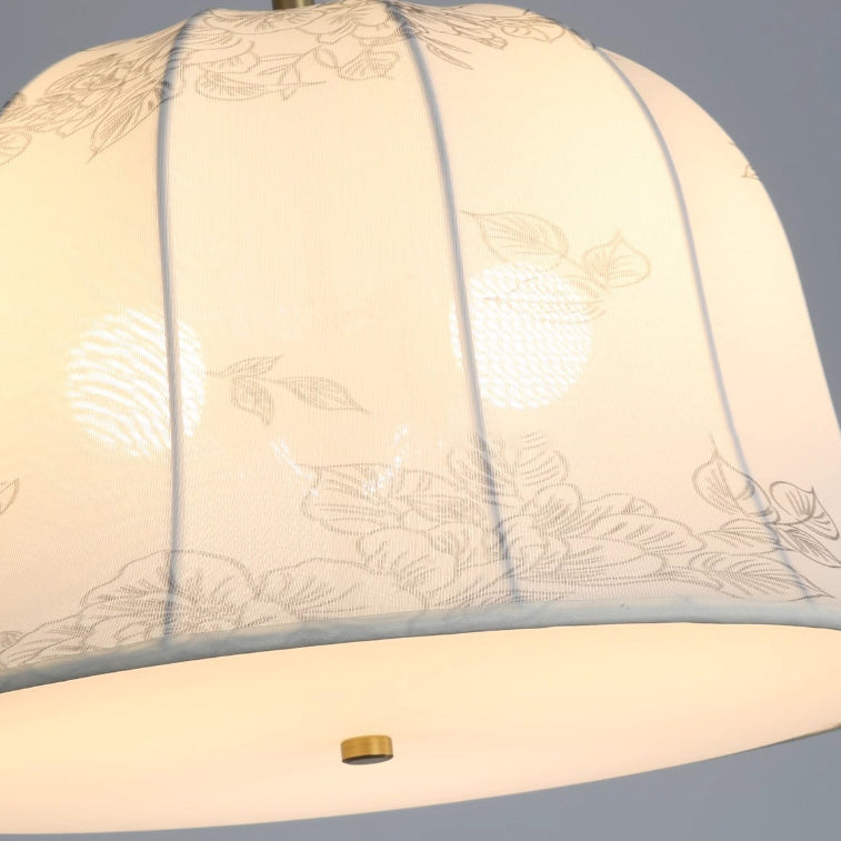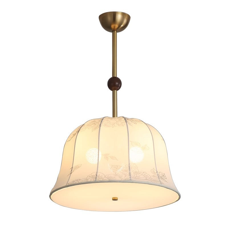伝統的な中国風のロマンチックなテクスチャストライプ模様の円形ファブリックアイアンウッド3灯シャンデリア(ダイニングルーム用)