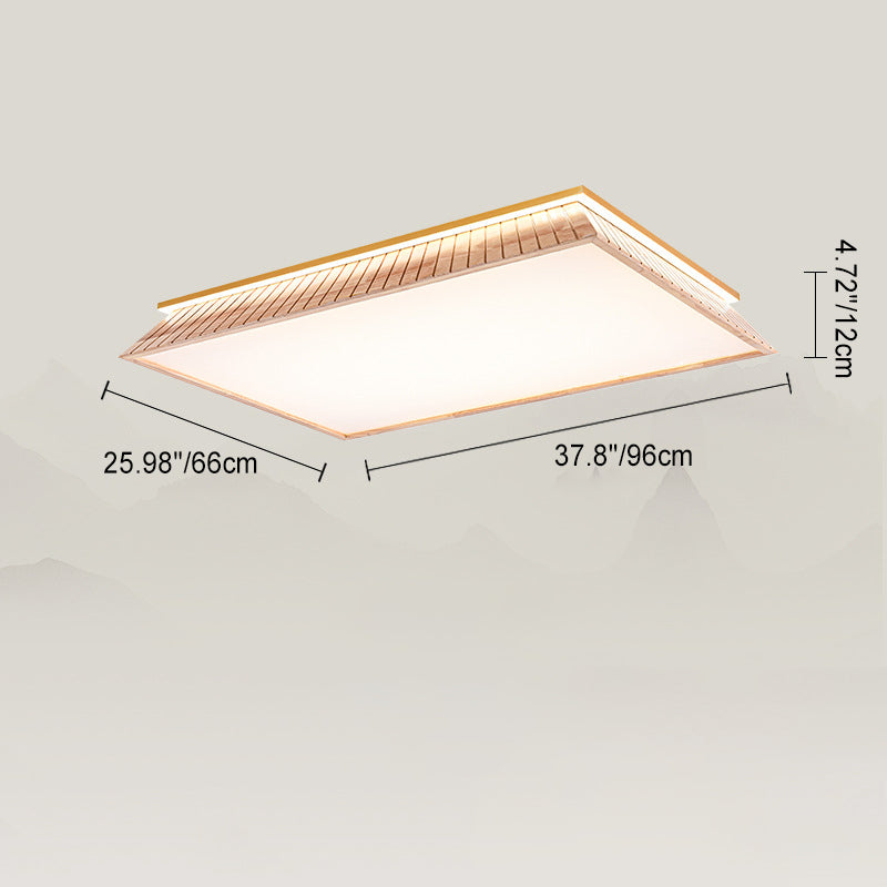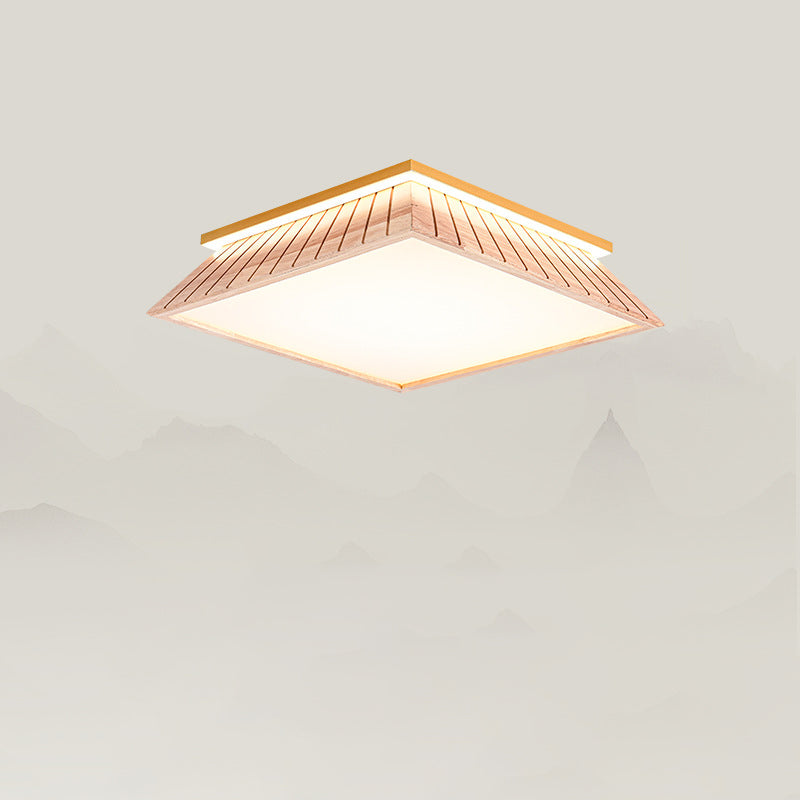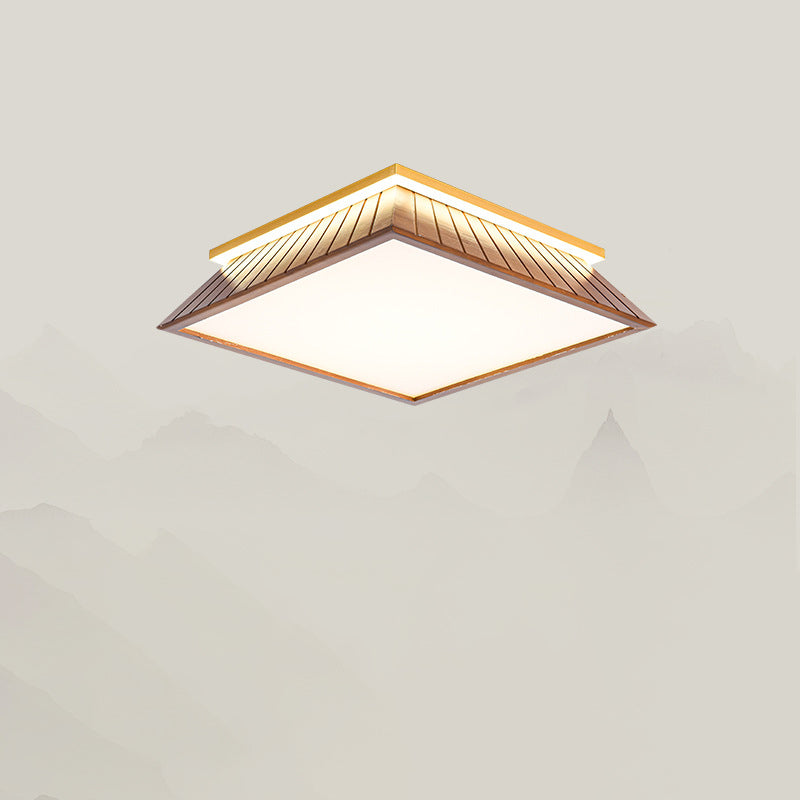伝統的な中国風屋根のスクエア型アクリル無垢材金具 LEDフラッシュマウント天井照明 寝室用