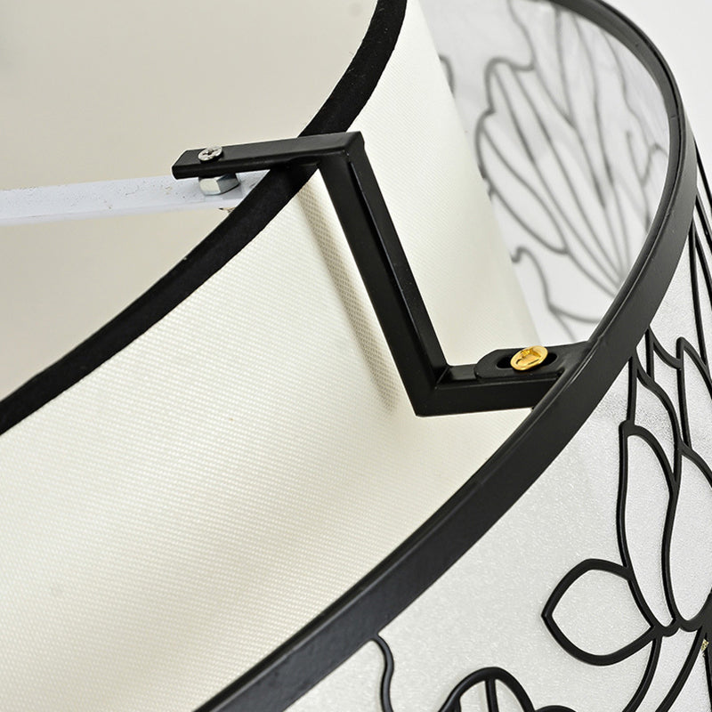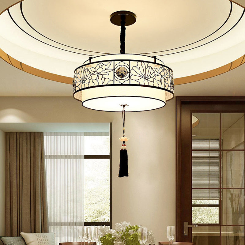 伝統的な中国製の丸い竹模様のファブリックアイアン製3灯シャンデリア(リビングルーム用)