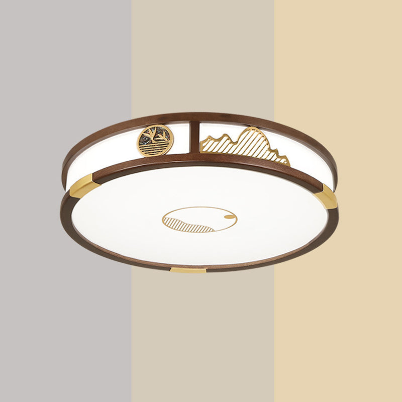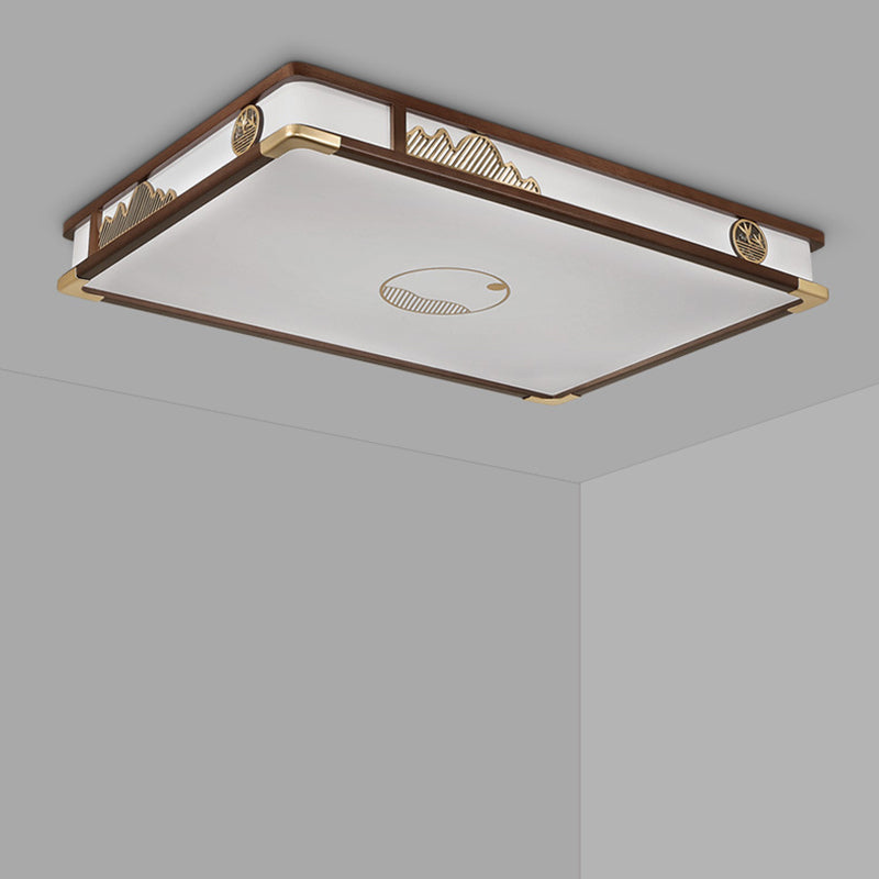 伝統的な中国風の円形、正方形、長方形の木製アクリル製LEDフラッシュマウントシーリングライト(リビングルーム用)
