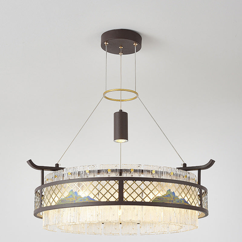 伝統的な中国製ラウンドステンレススチール製鉄製アクリルランプシェード 12/16 - リビングルーム用ライトシャンデリア