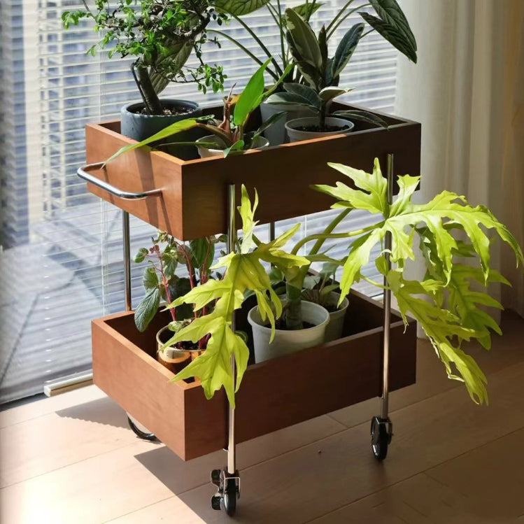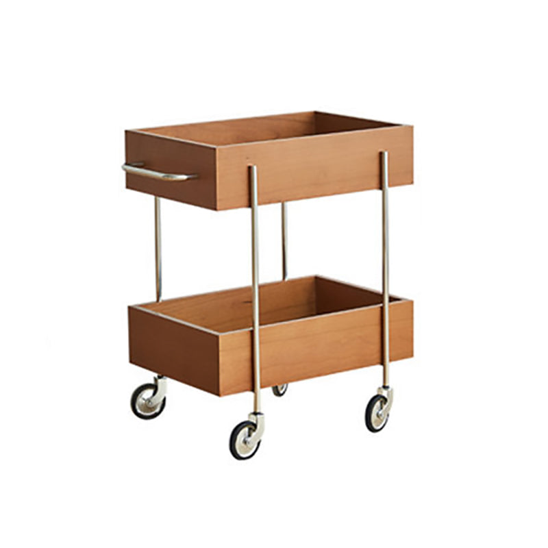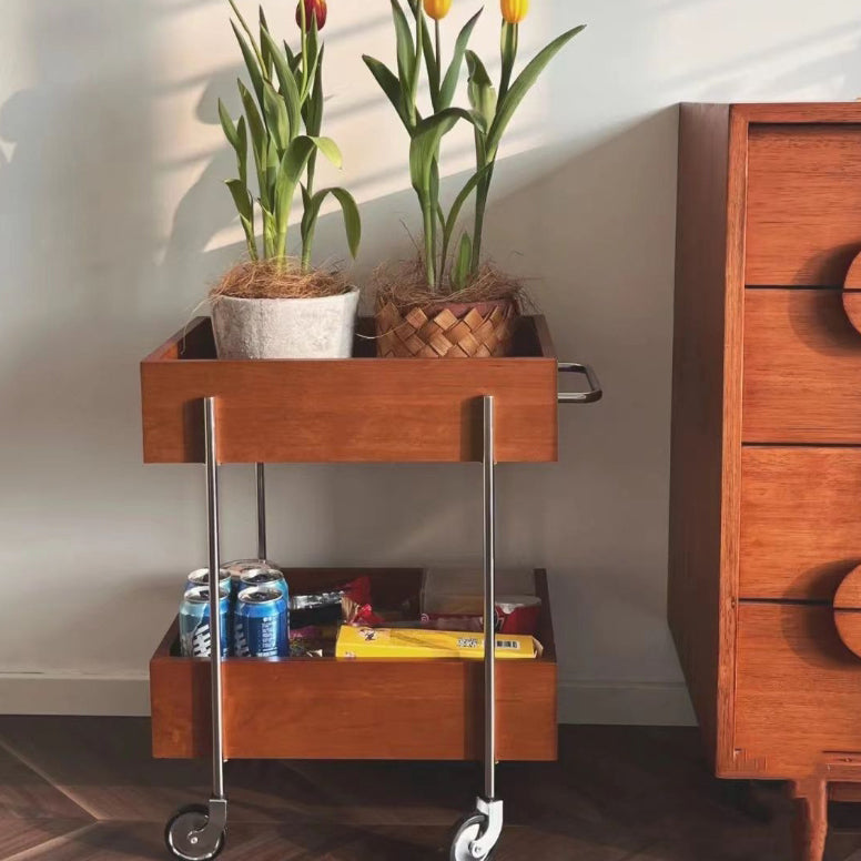 Traditional Chinese Solid Wood Metal Rectangular Movable End Table 2-Tier For Bedroom & Living Room