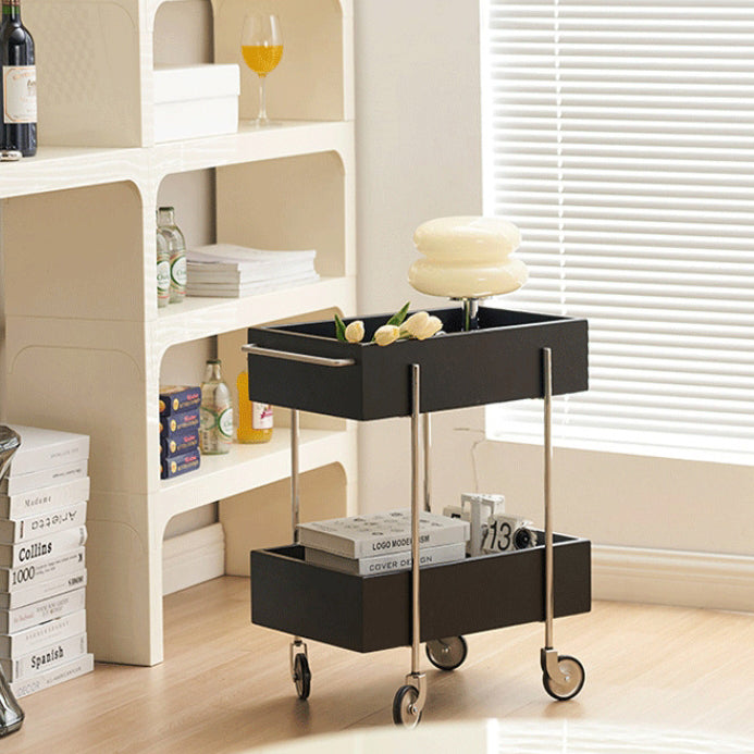 This traditional Chinese-style movable side table features a rectangular silhouette with a smooth, eco-friendly surface, crafted from solid wood and metal. Available in cherry, walnut, and black finishes, its 2-tier design offers versatile storage for snacks, books, or bedside essentials in any living room or bedroom.