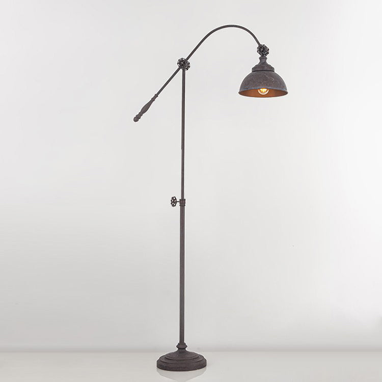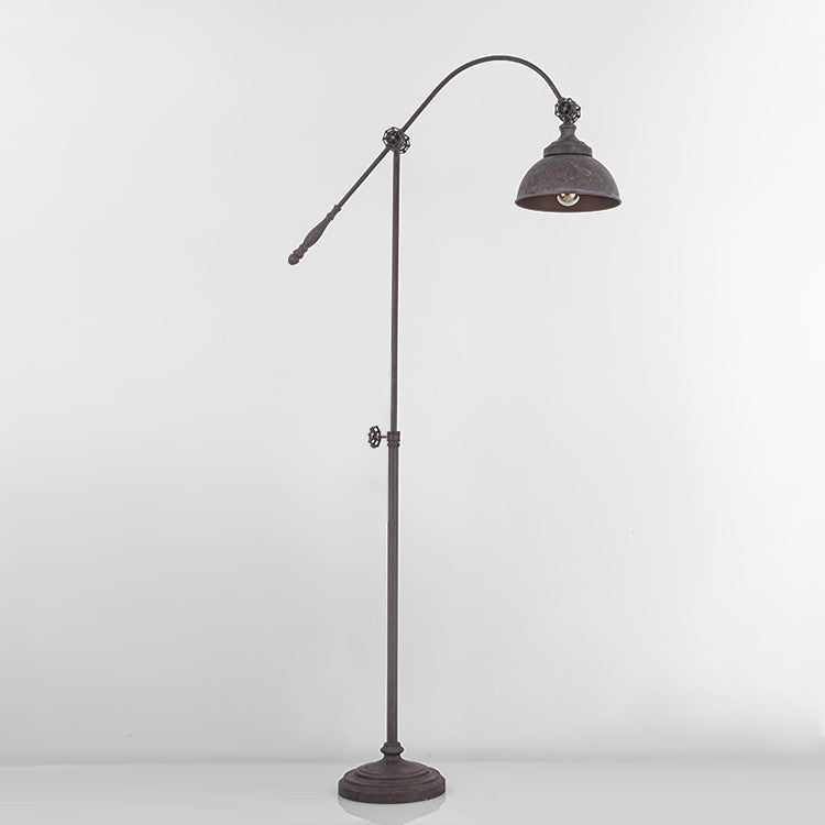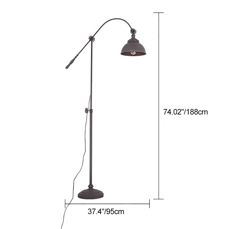 Traditional Colonial Distressed Iron Rotatable Semicircle Shade Adjustable Rod 1-Light Standing Floor Lamp For Bedroom