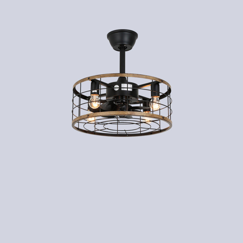 伝統的な農家風鉄製シリンダーフレーム ABS製ファン 4灯ダウンロッド付き 寝室用シーリングファンライト