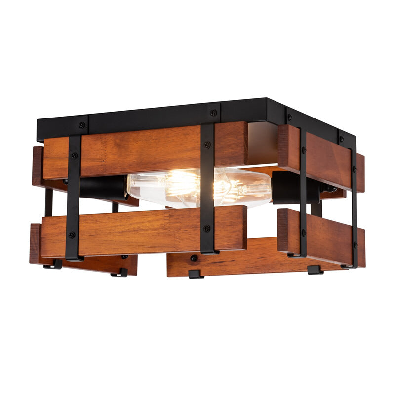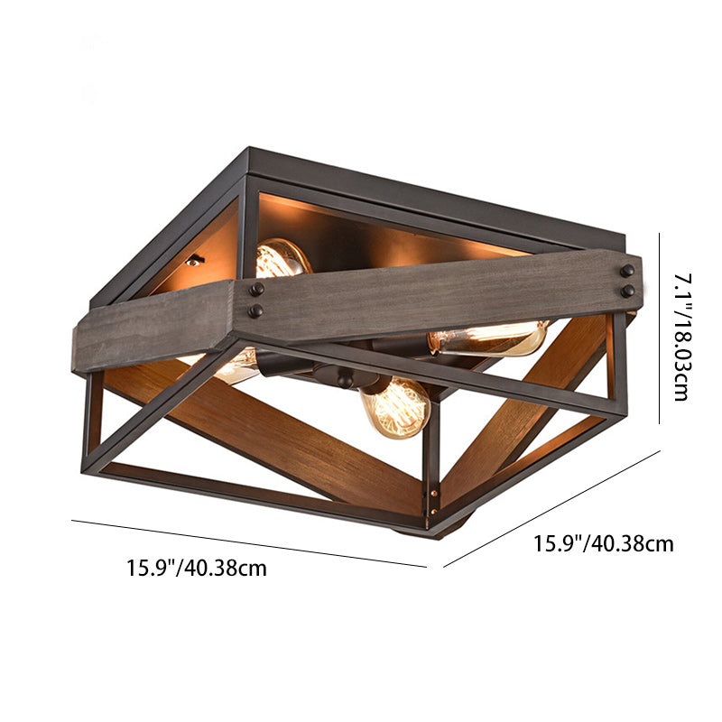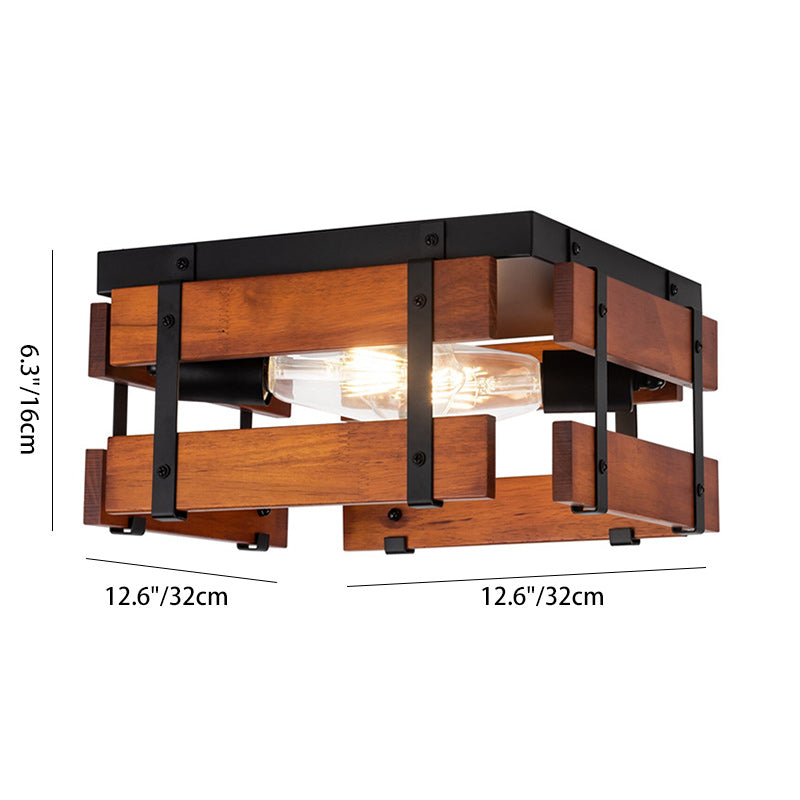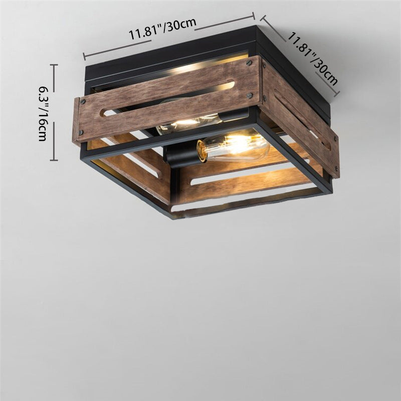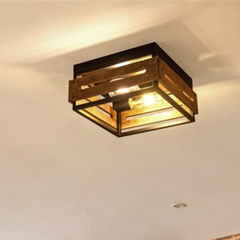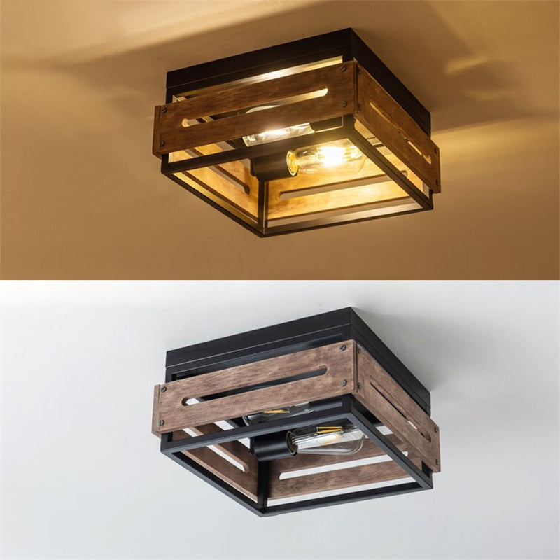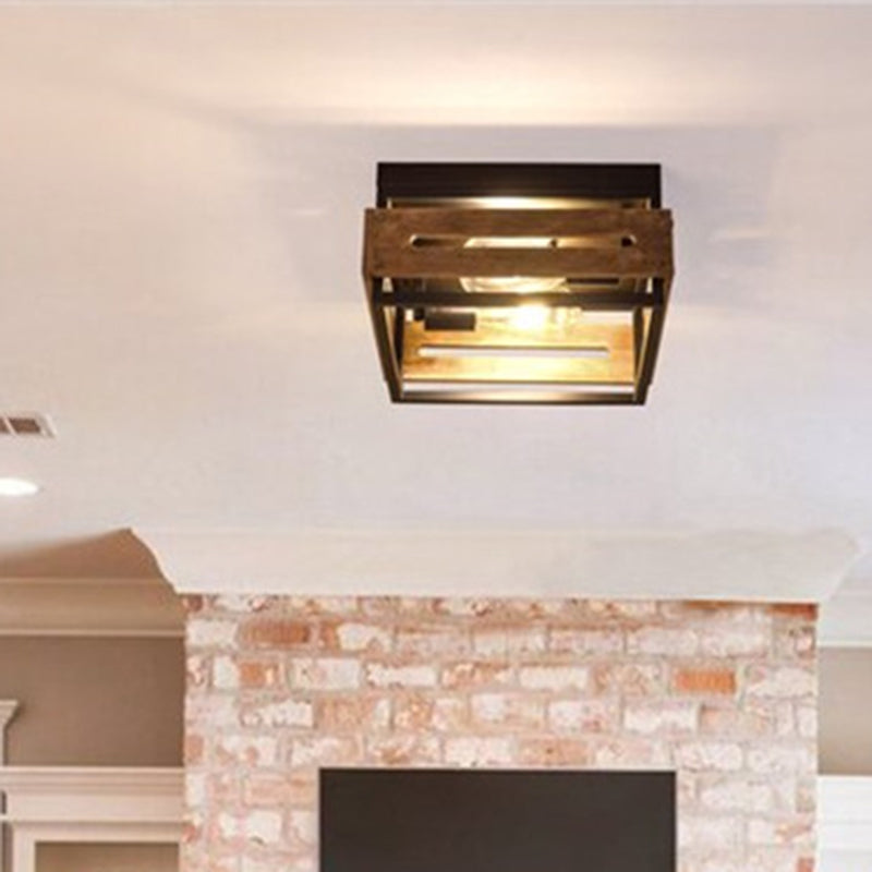 伝統的な農家風アイアンウッドスクエアフェンス 2/4灯 フラッシュマウント 廊下用シーリングライト