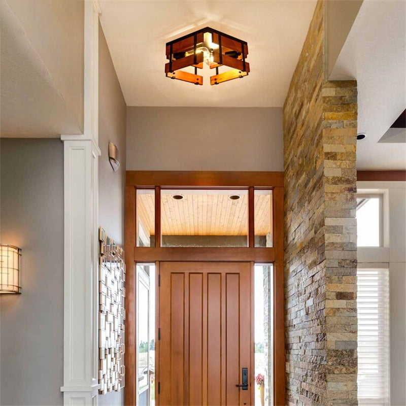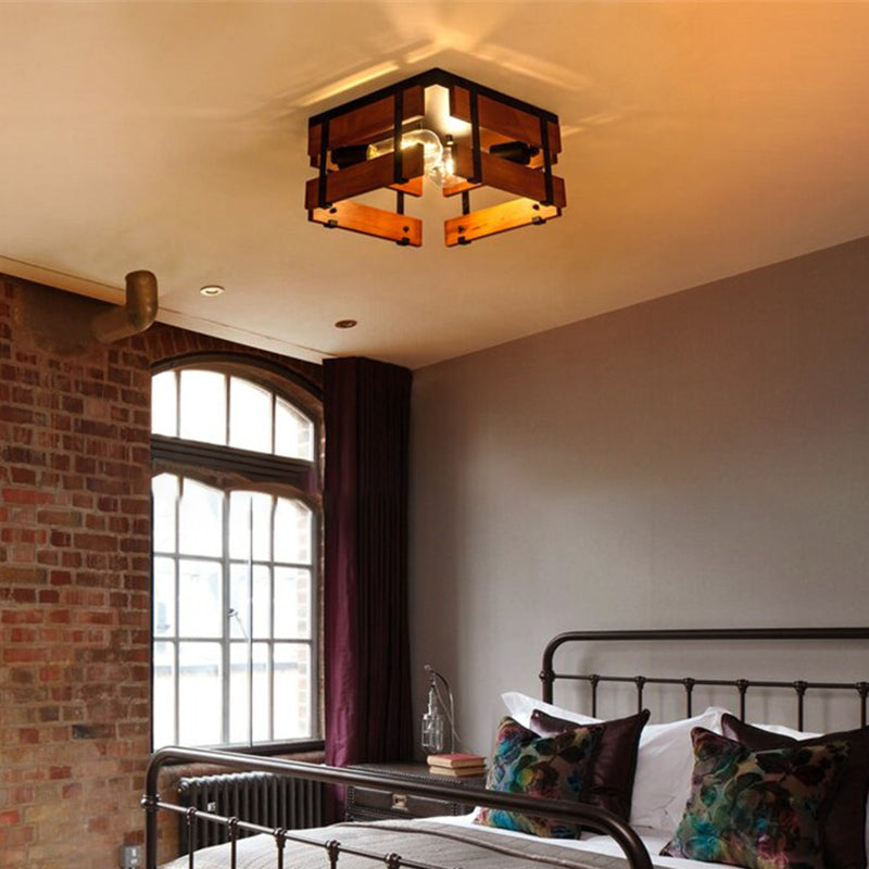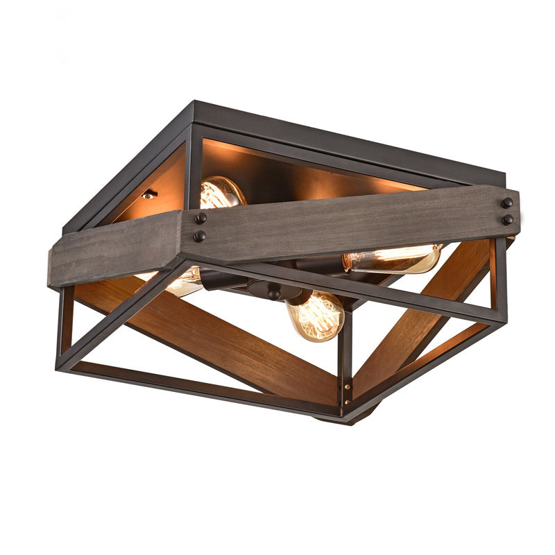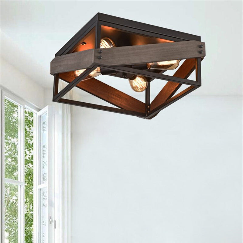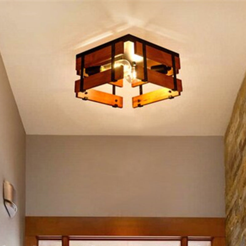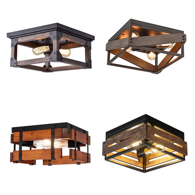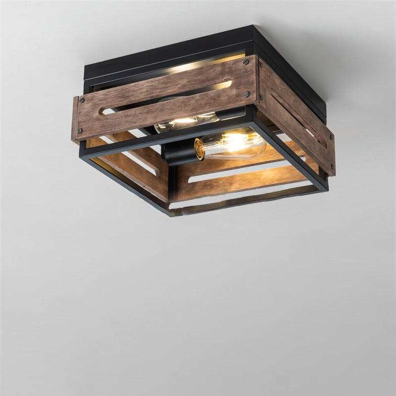 伝統的な農家風アイアンウッドスクエアフェンス 2/4灯 フラッシュマウント 廊下用シーリングライト