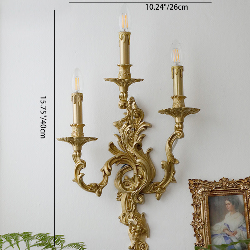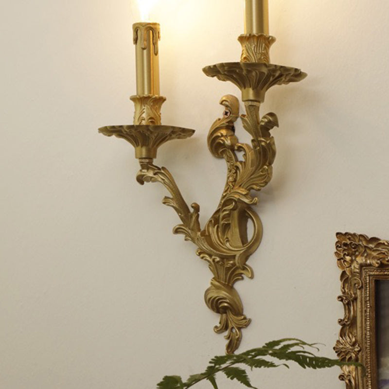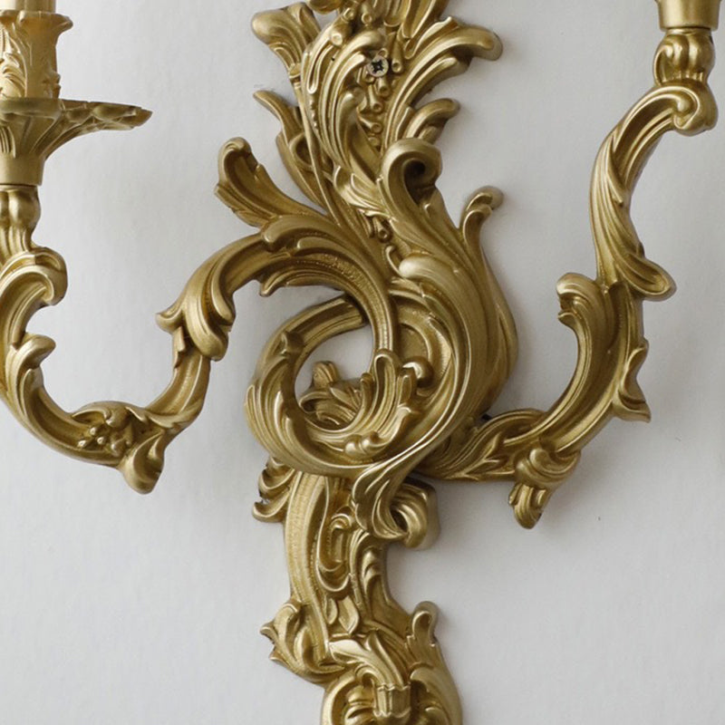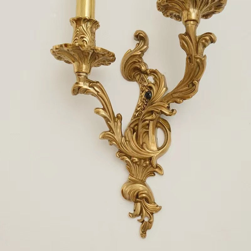 伝統的なフランスの枝付き燭台ランプ、彫刻された銅製2/3ライト壁燭台ランプ、寝室用