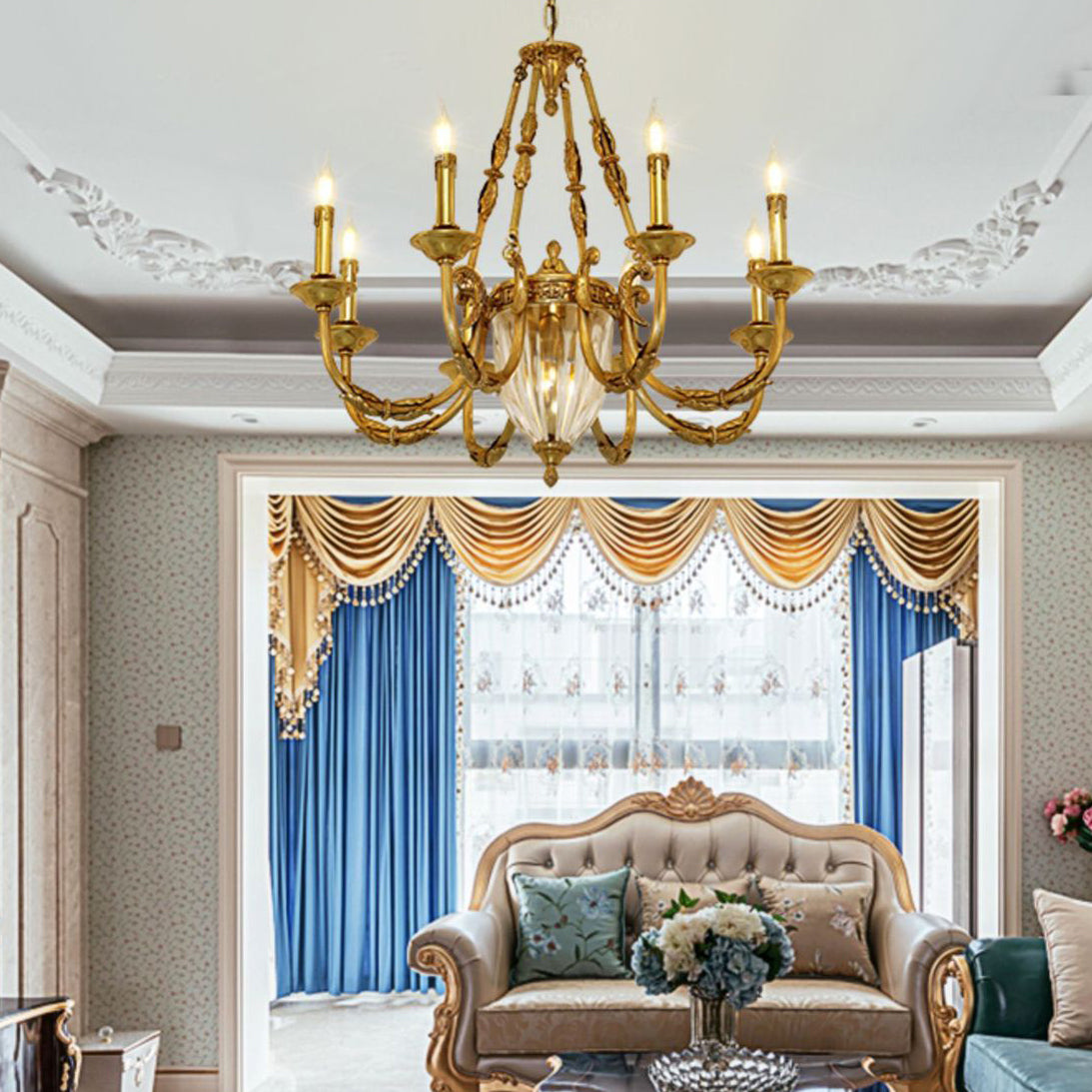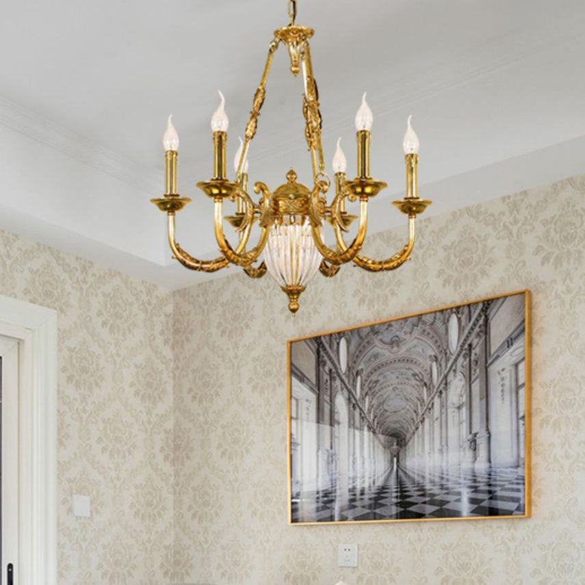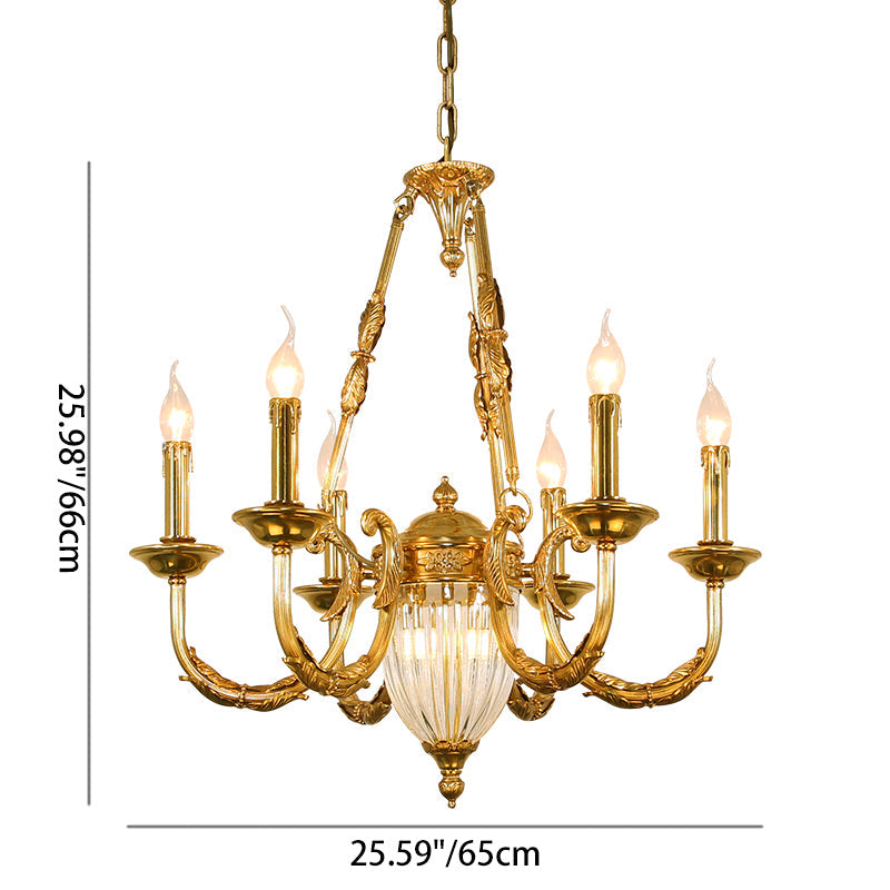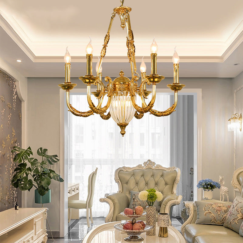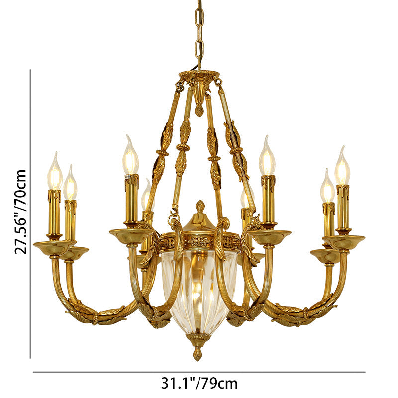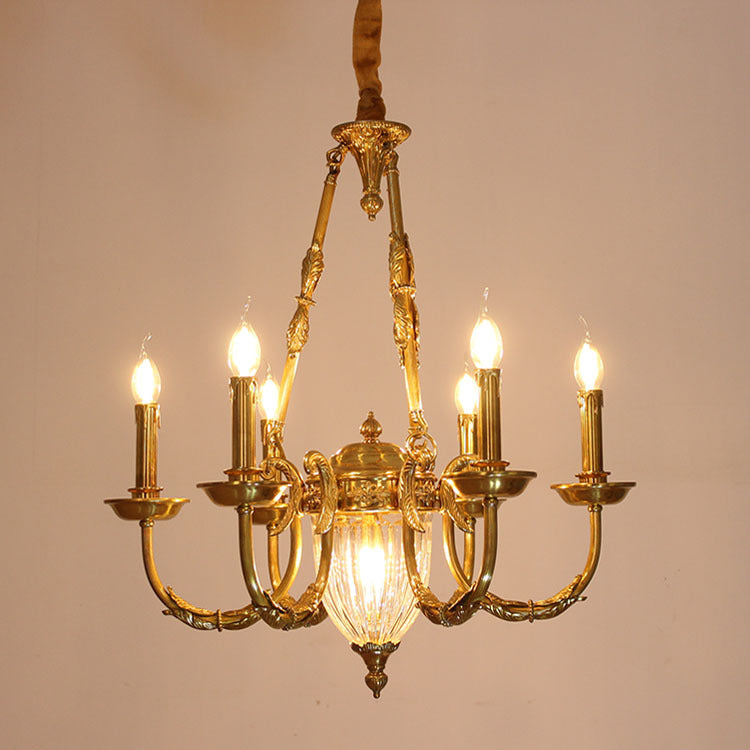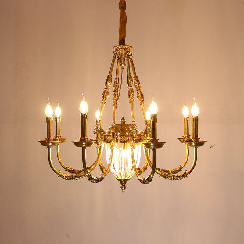 伝統的なフレンチキャンドル型の楕円形銅ガラス7/9ライトシャンデリア(リビングルーム用)