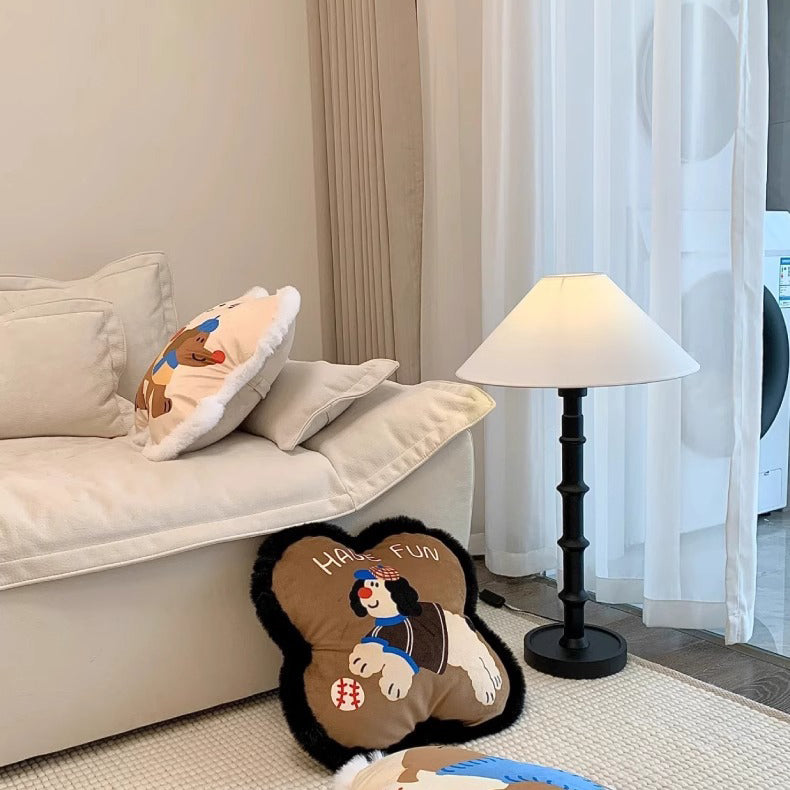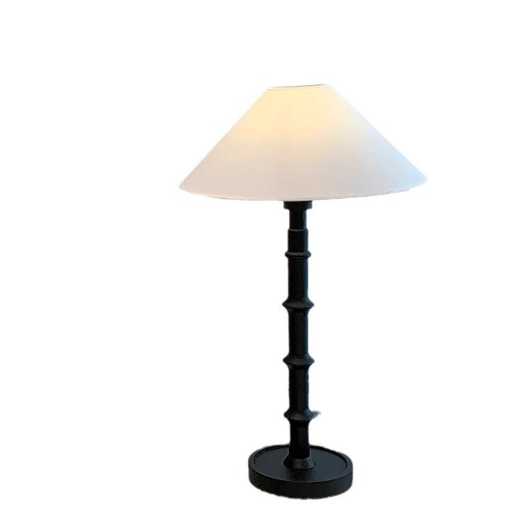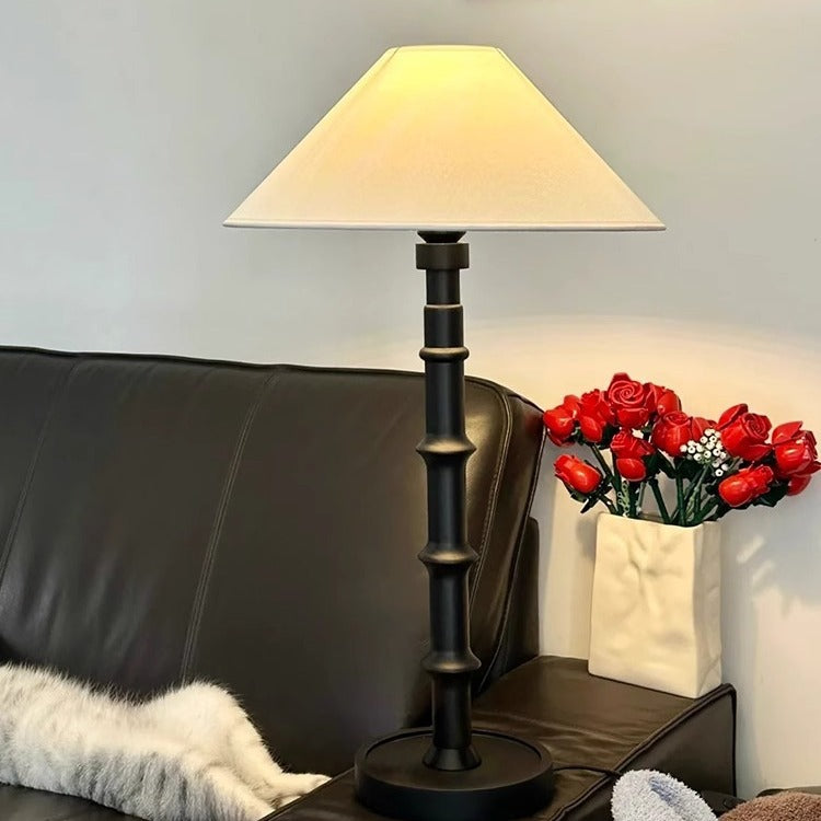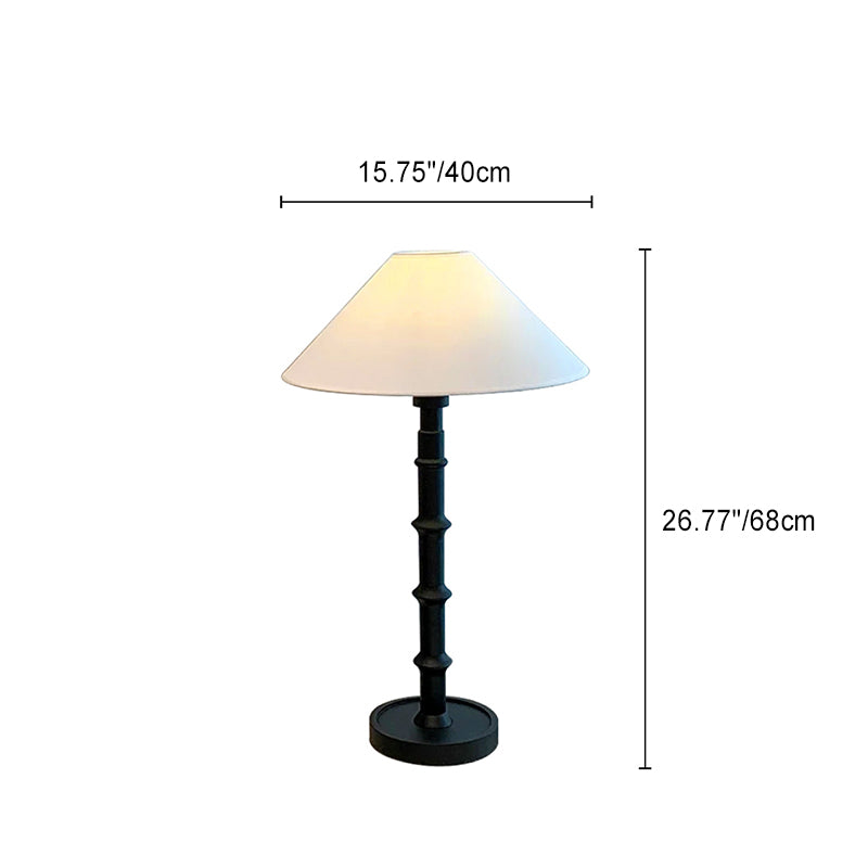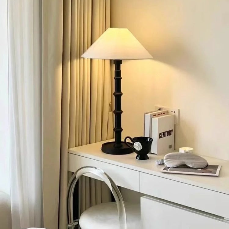 Traditional French Cone Imitation Bamboo Joint Base Wood Fabric 1-Light Table Lamp For Bedroom