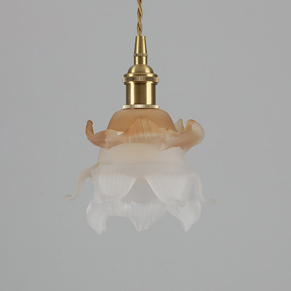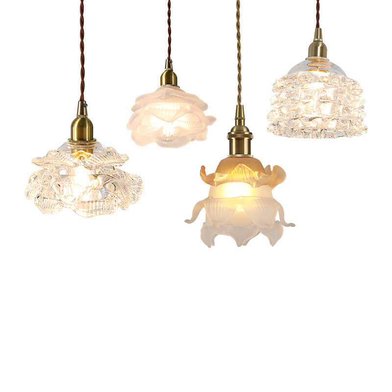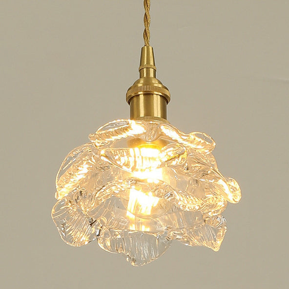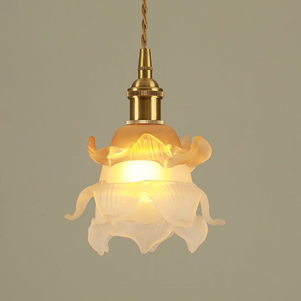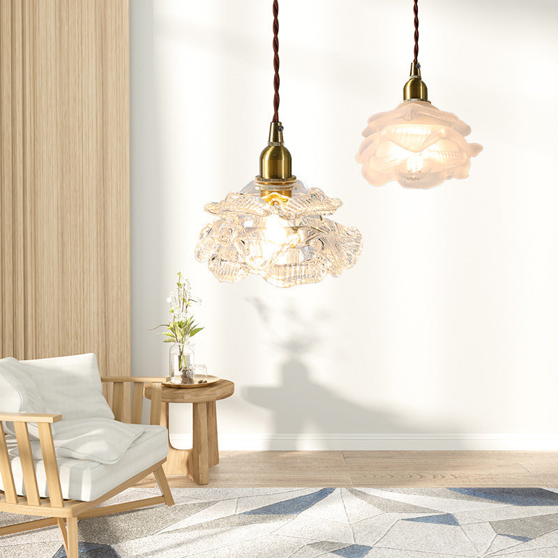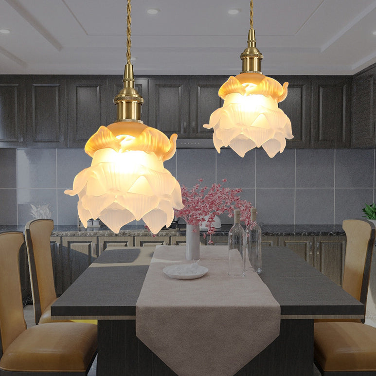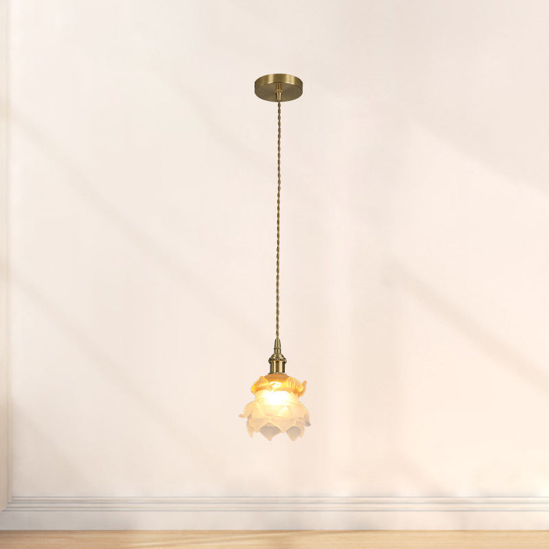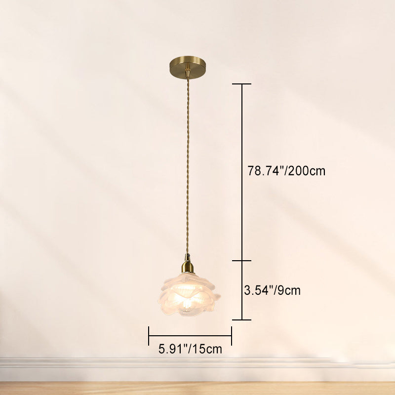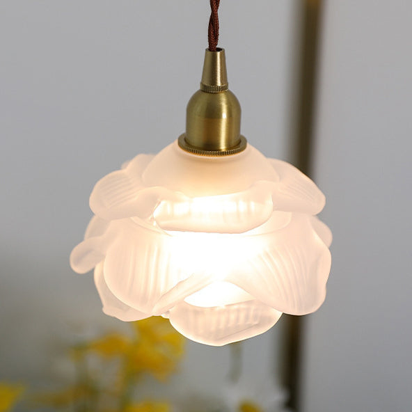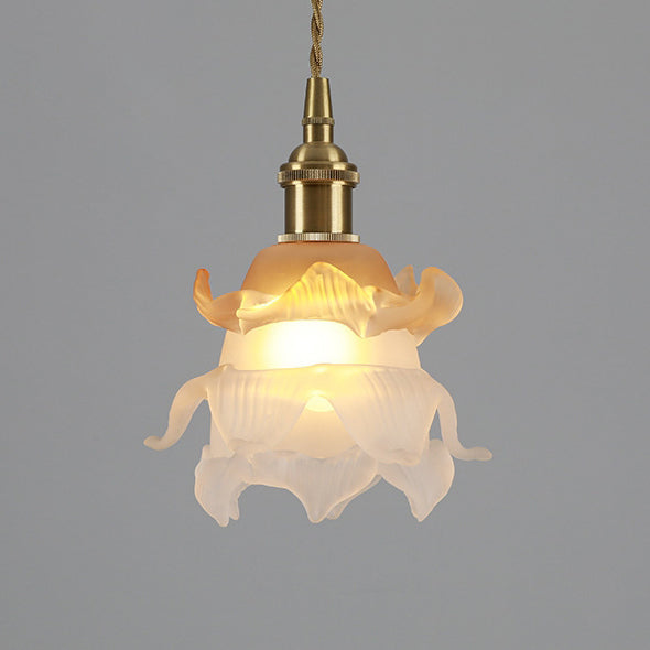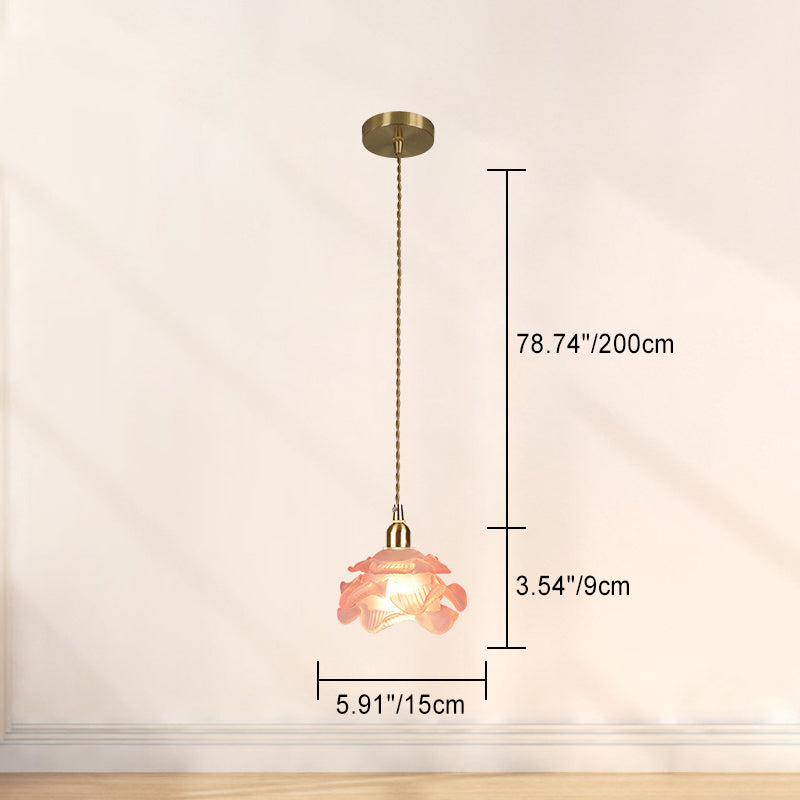 伝統的なフランスの銅ガラスの花柄ローズペタルペンダントライト(ダイニングルーム用)1灯