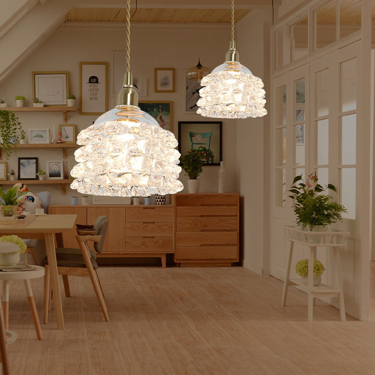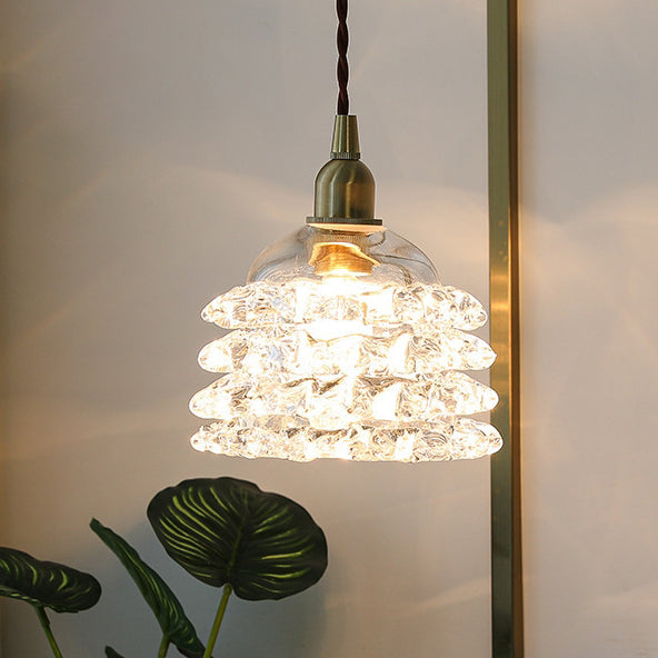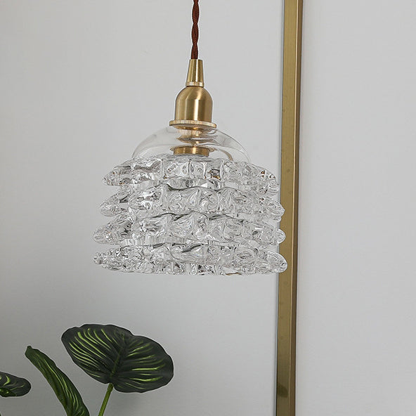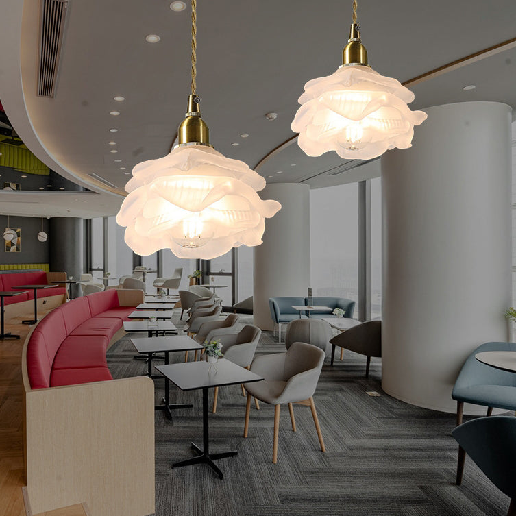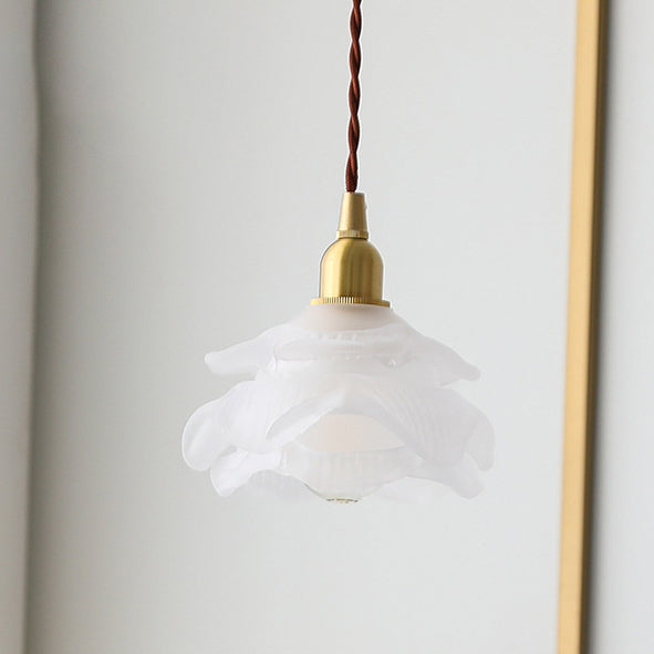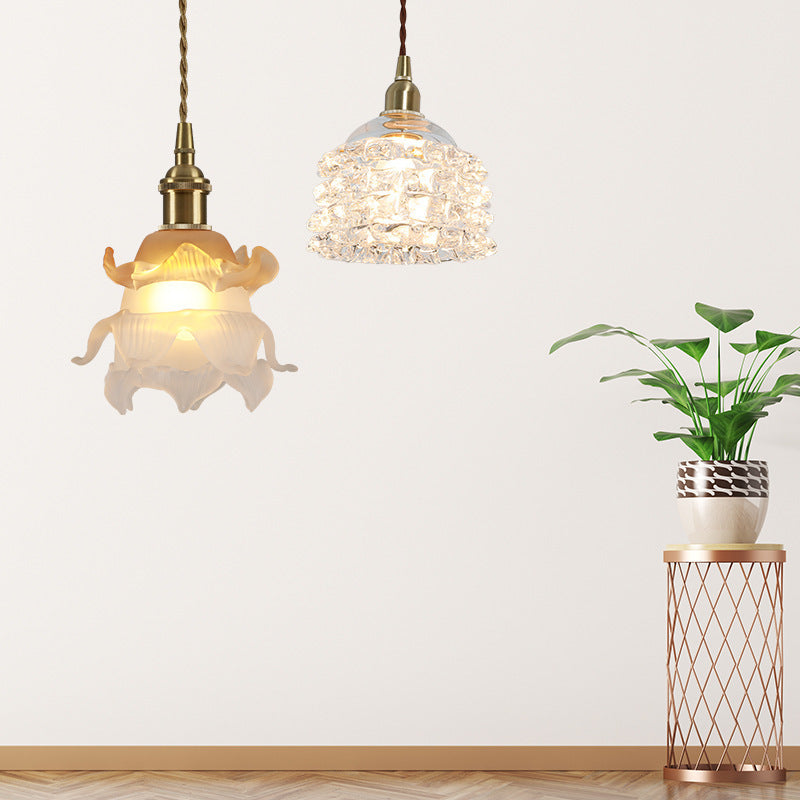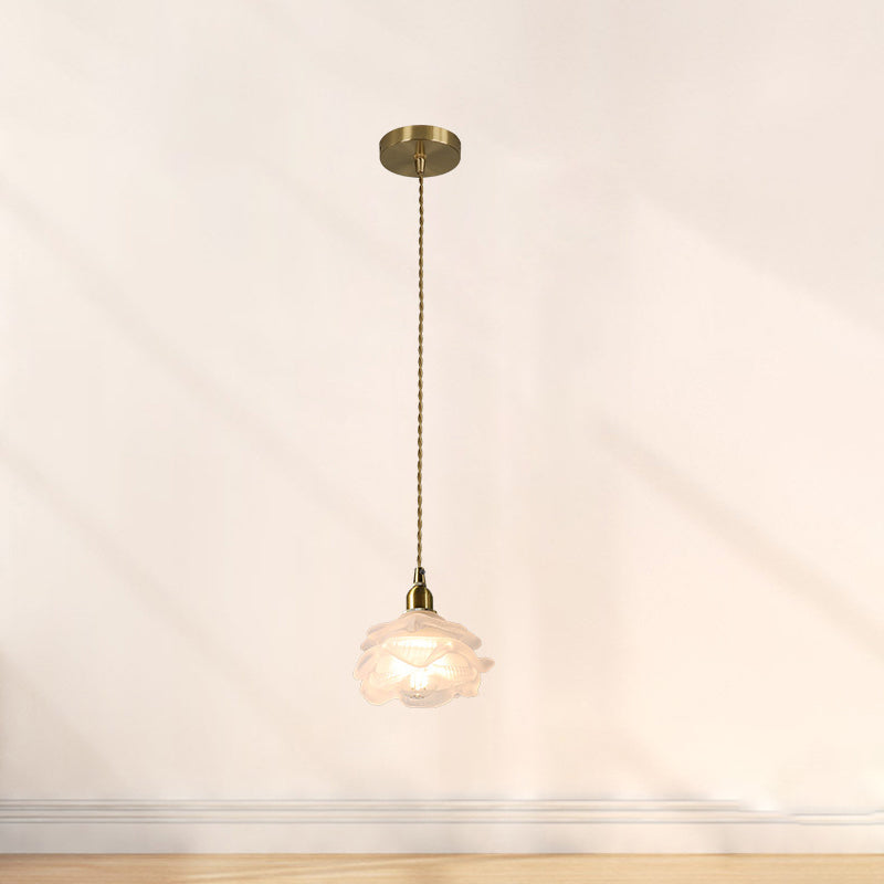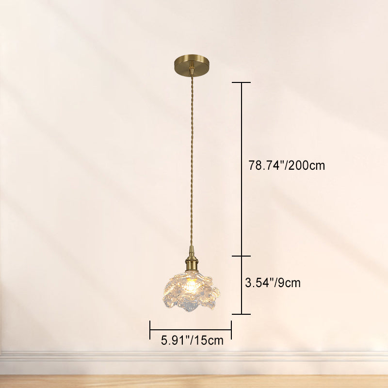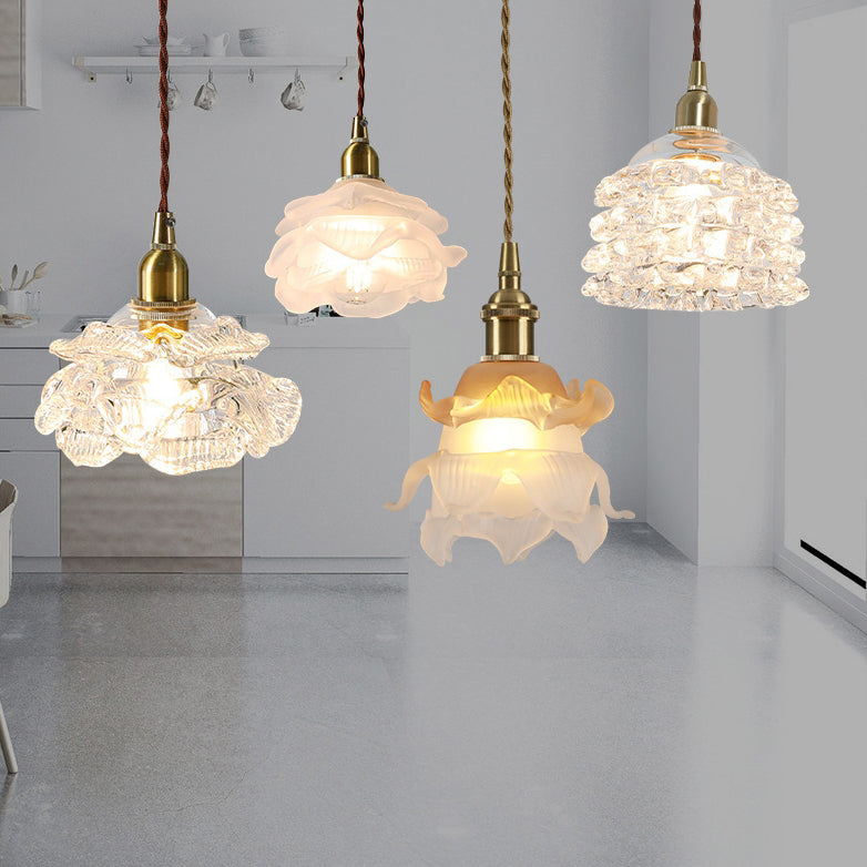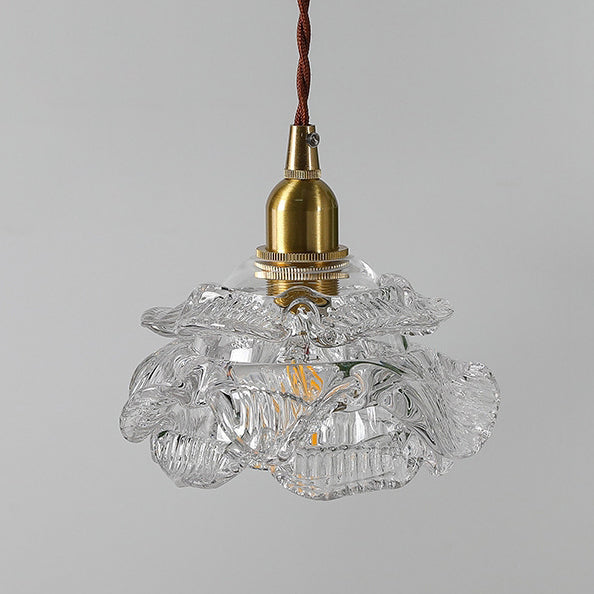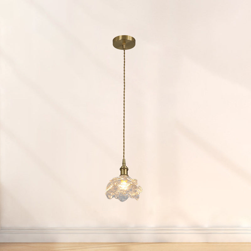 伝統的なフランスの銅ガラスの花柄ローズペタルペンダントライト(ダイニングルーム用)1灯