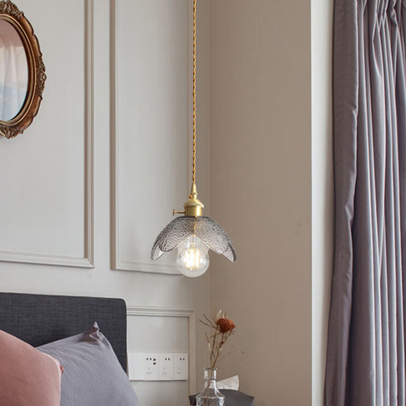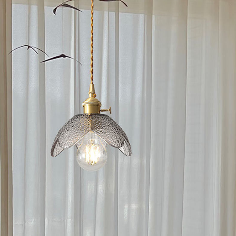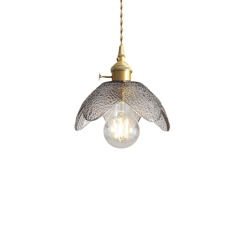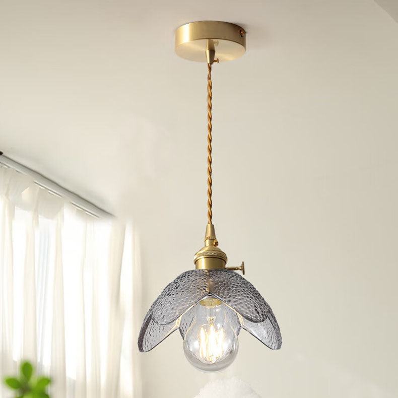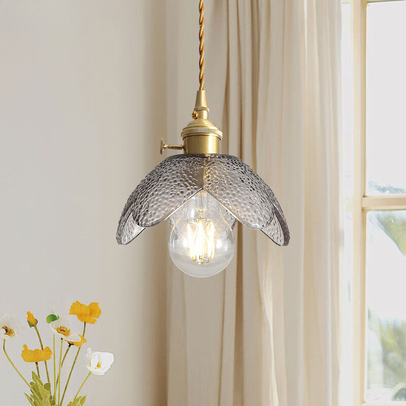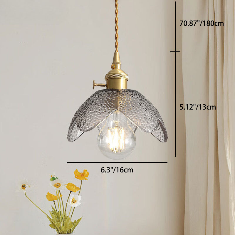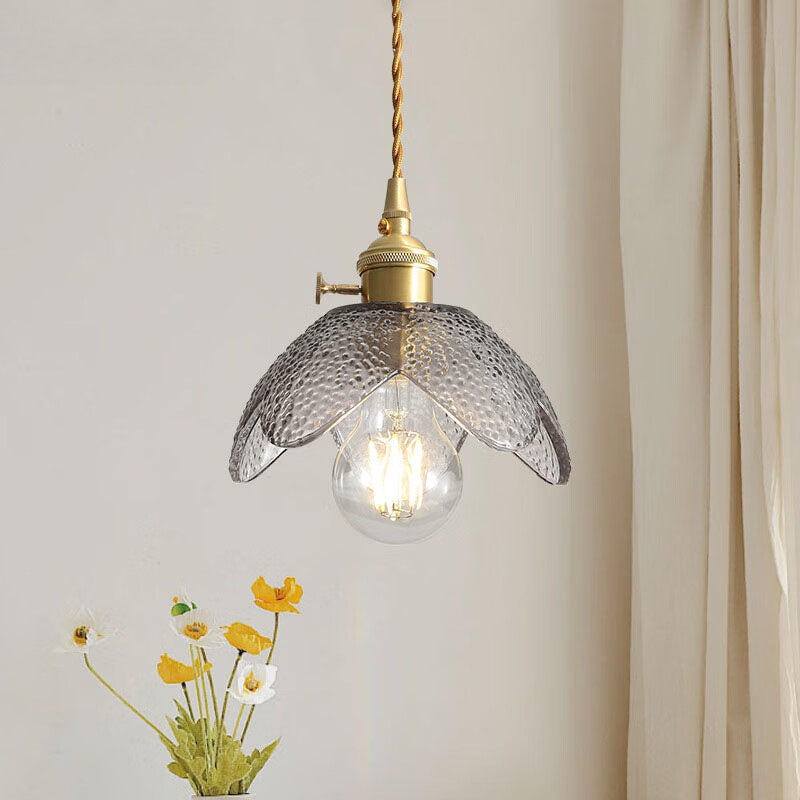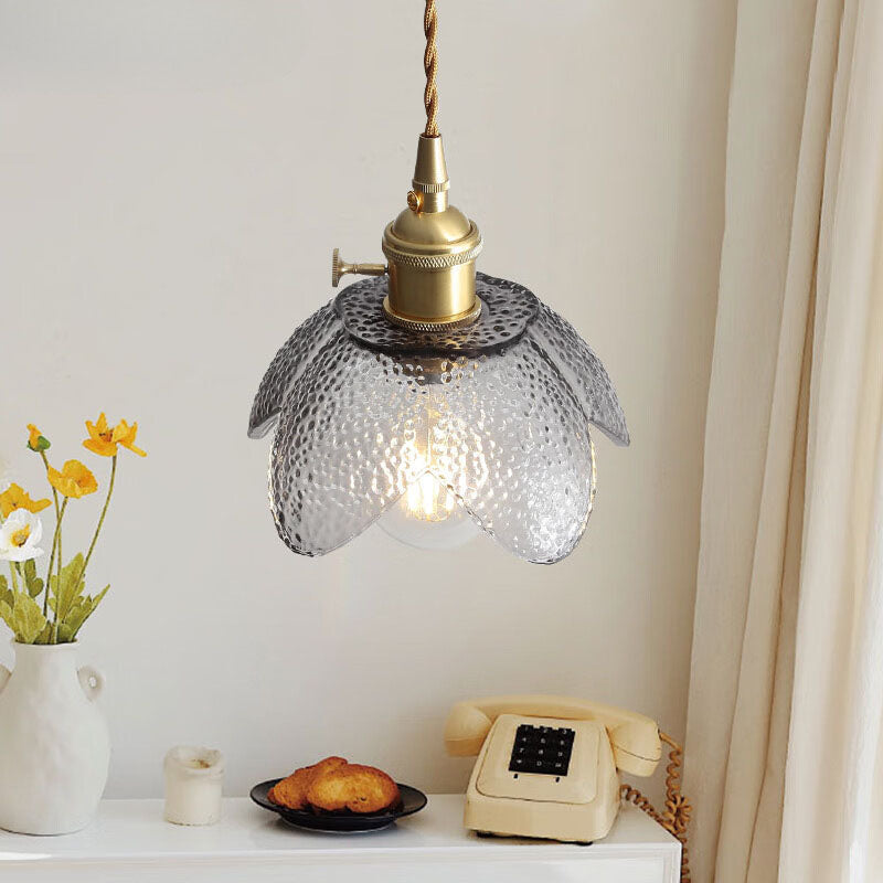 伝統的なフランス製銅ガラスフラワーペンダントライト(ダイニングルーム用)1灯