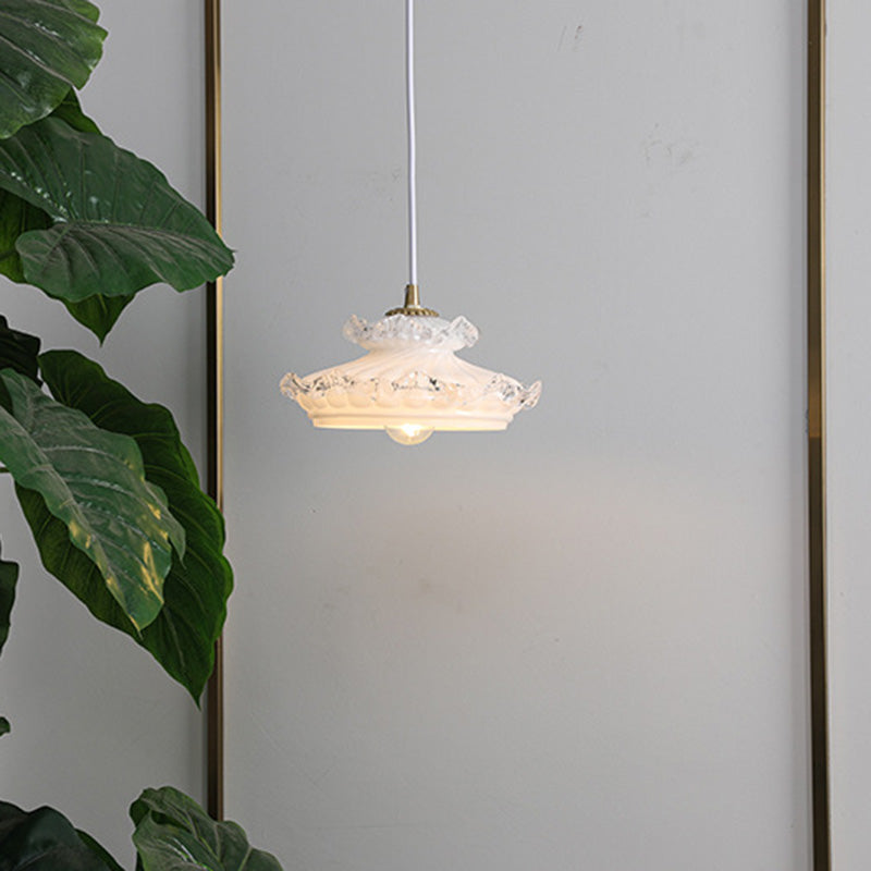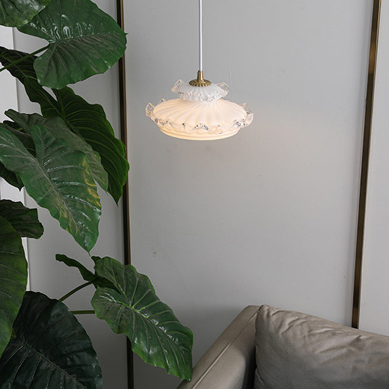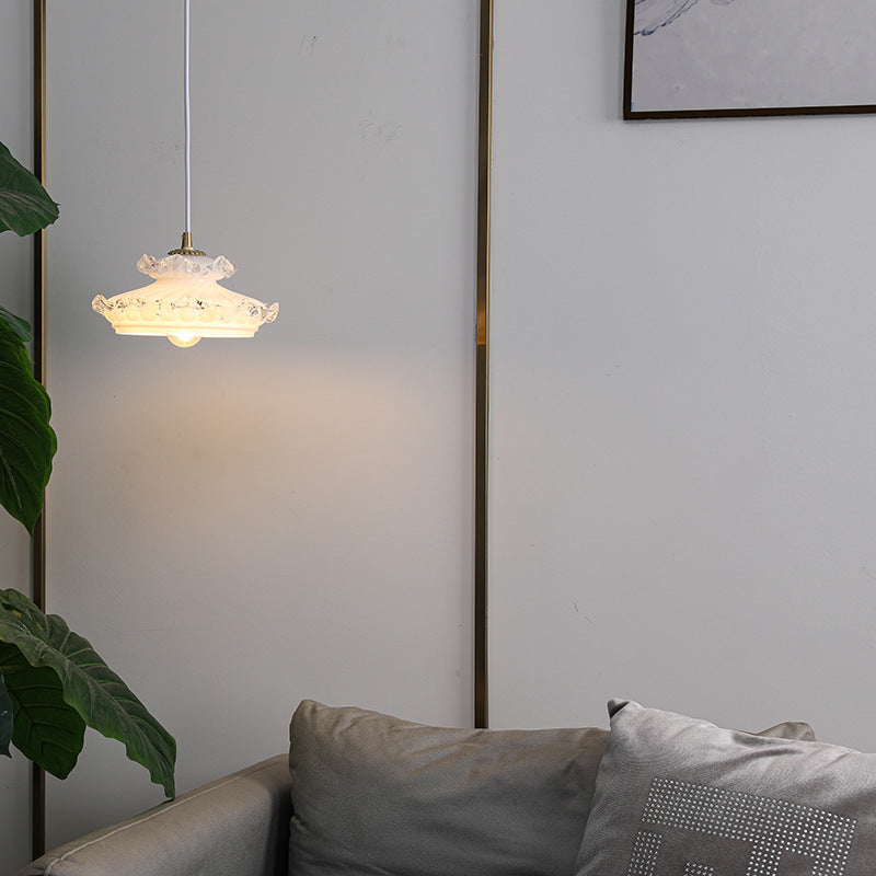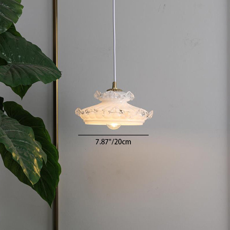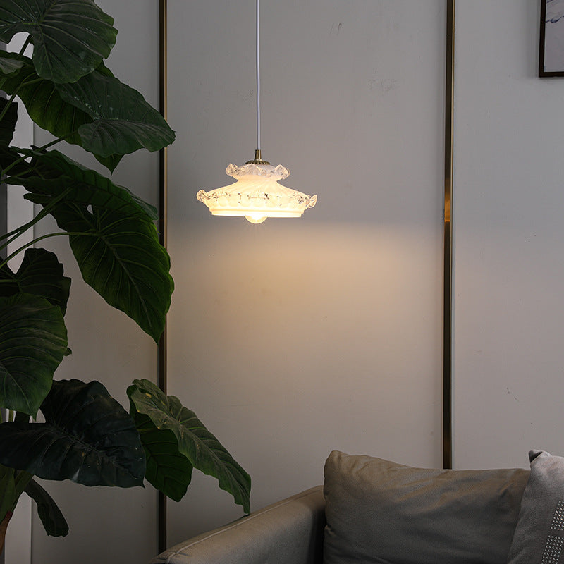伝統的なフランス製銅ガラス製ラウンドフローラルペンダントライト(寝室用)1灯