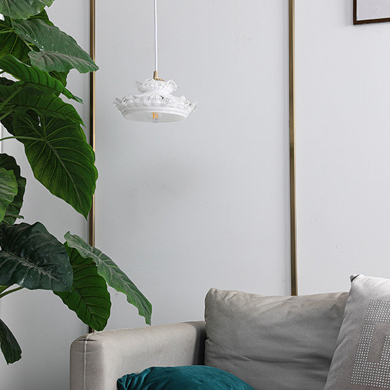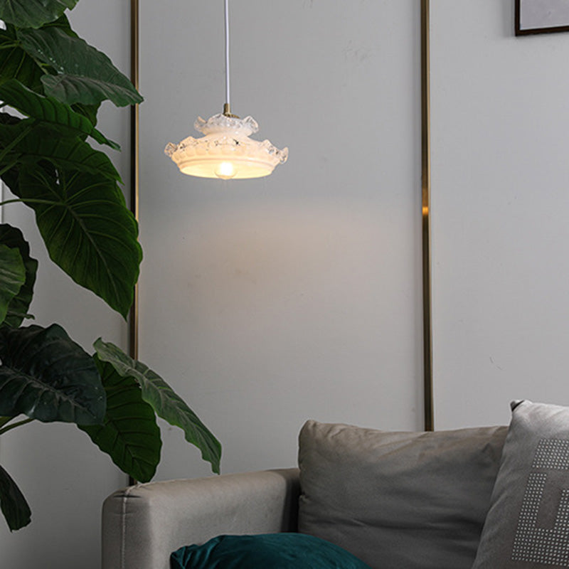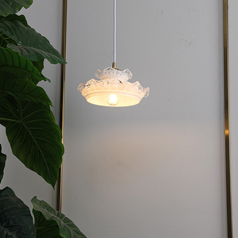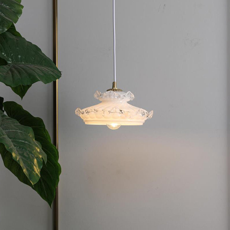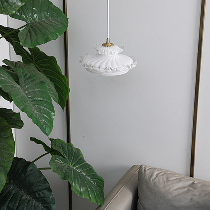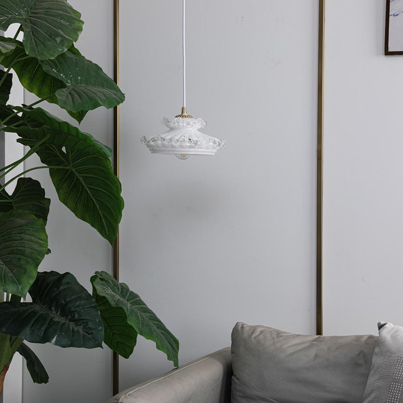 伝統的なフランス製銅ガラス製ラウンドフローラルペンダントライト(寝室用)1灯