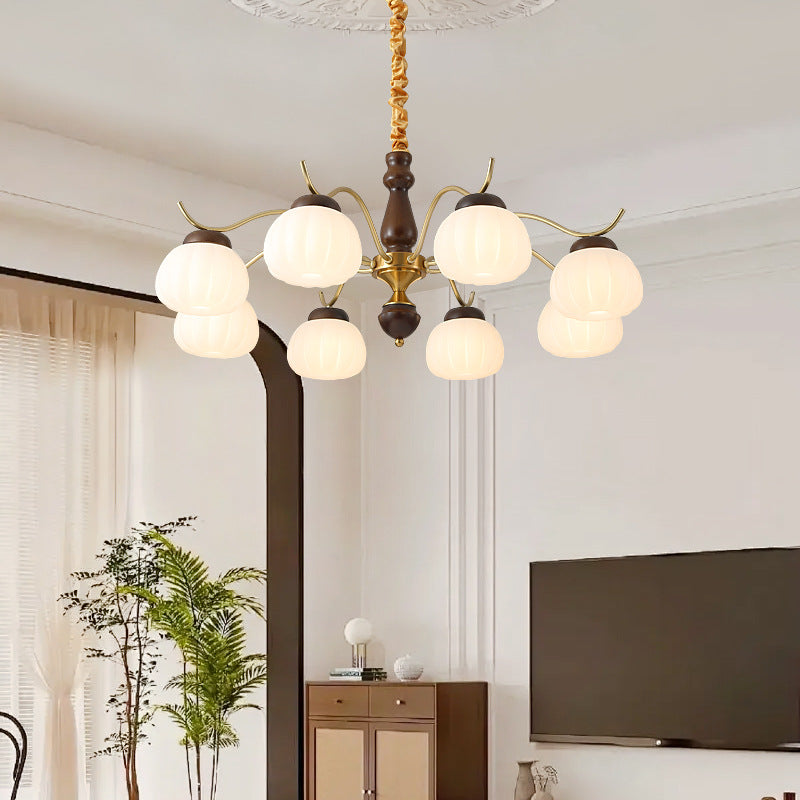 伝統的なフランス製コットン素材の丸型曲げ枝、PEラバーウッド、金属製3/6/8灯シャンデリア(リビングルーム用)
