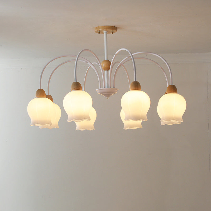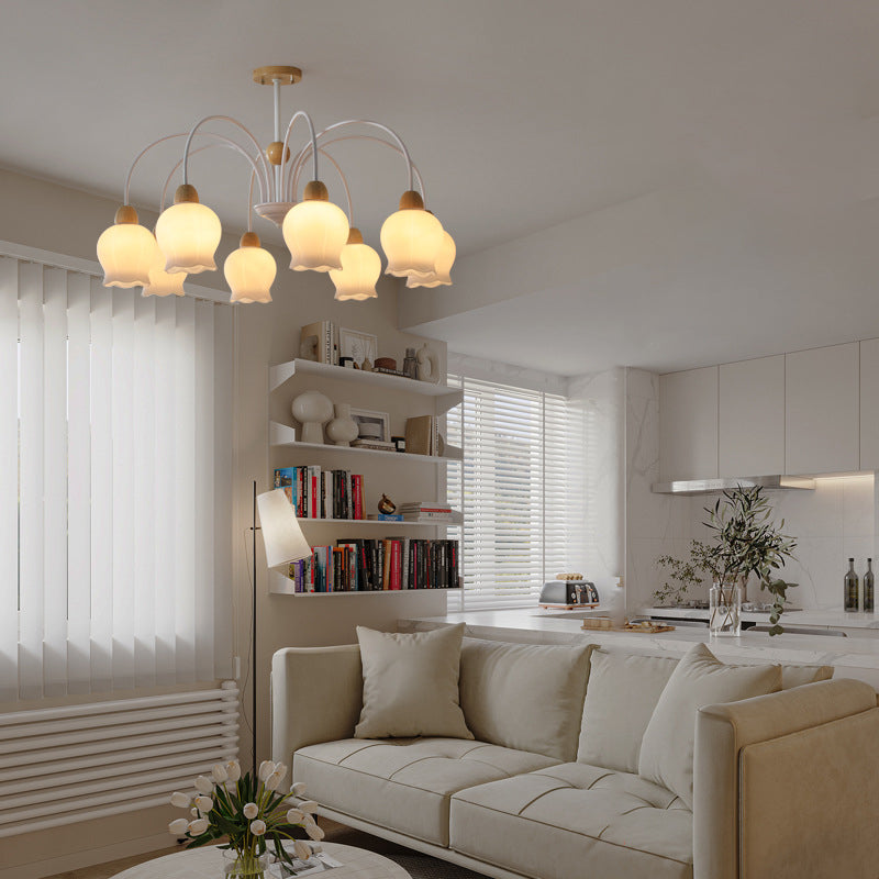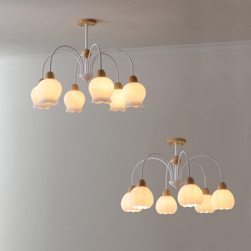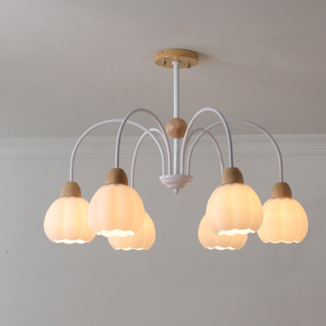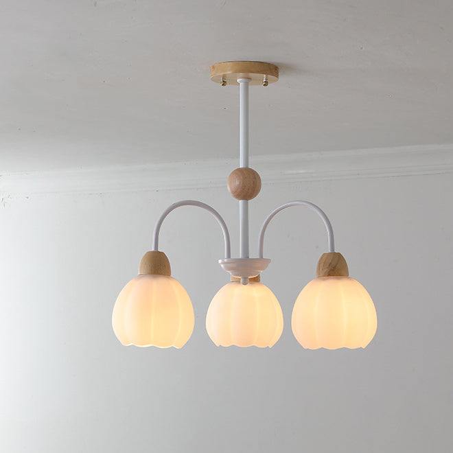 伝統的なフレンチクリームベラドンナパンプキンラウンドガラスアイアン3/6/8ライトシャンデリアリビングルーム用