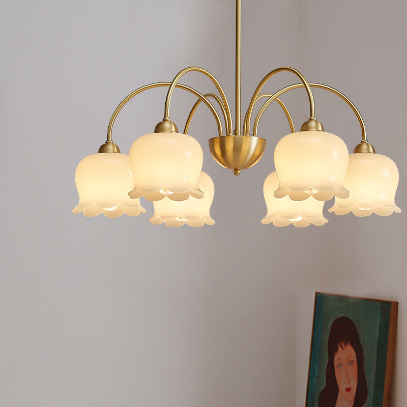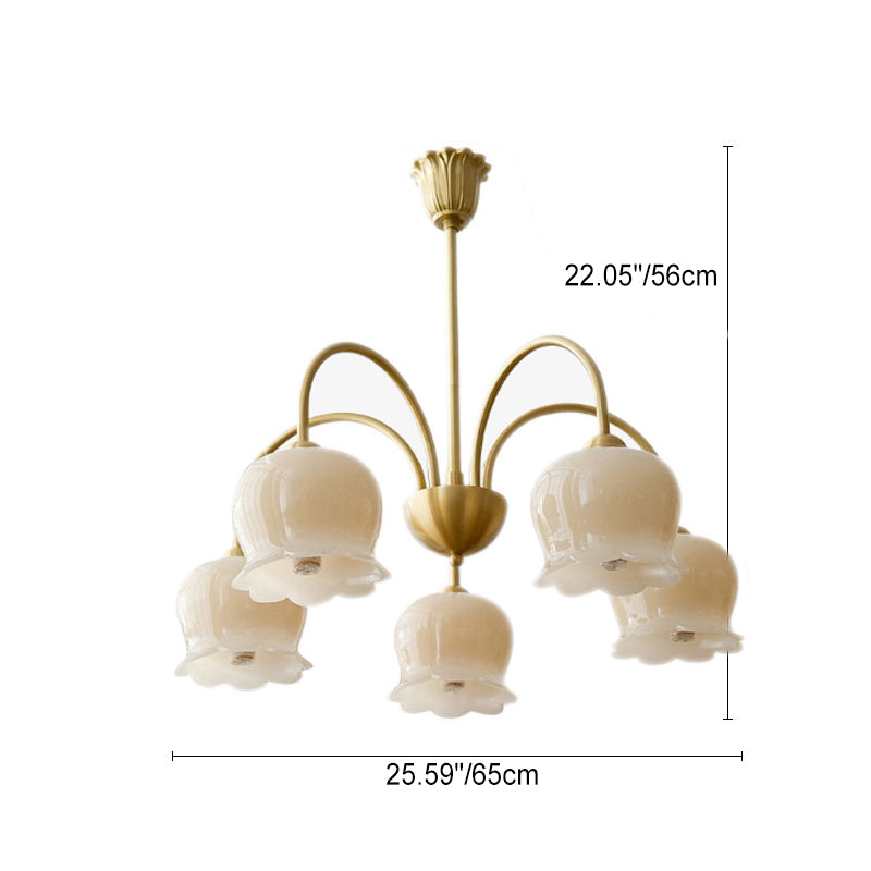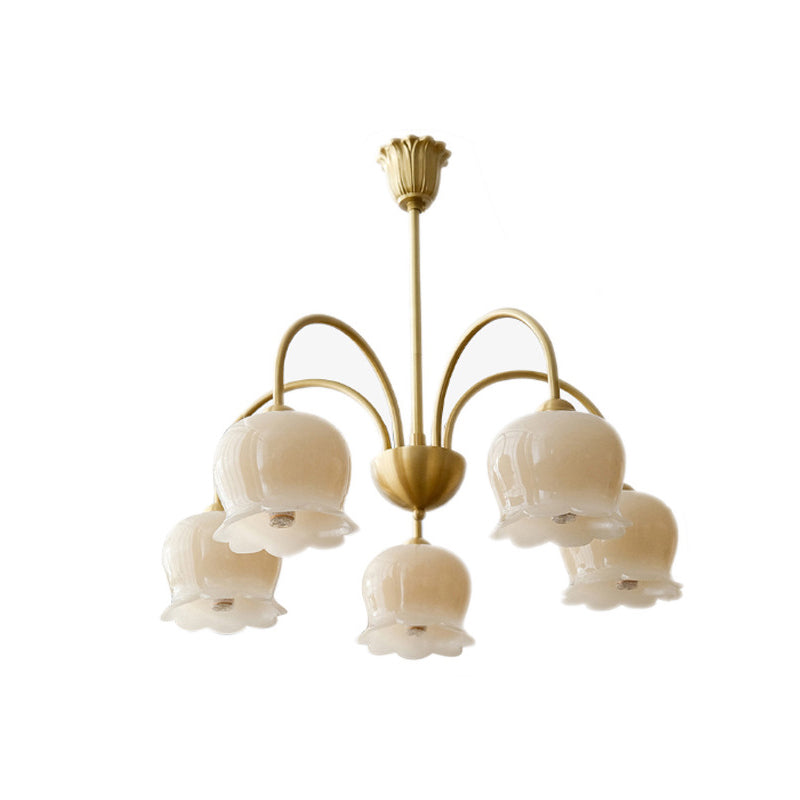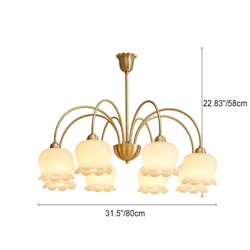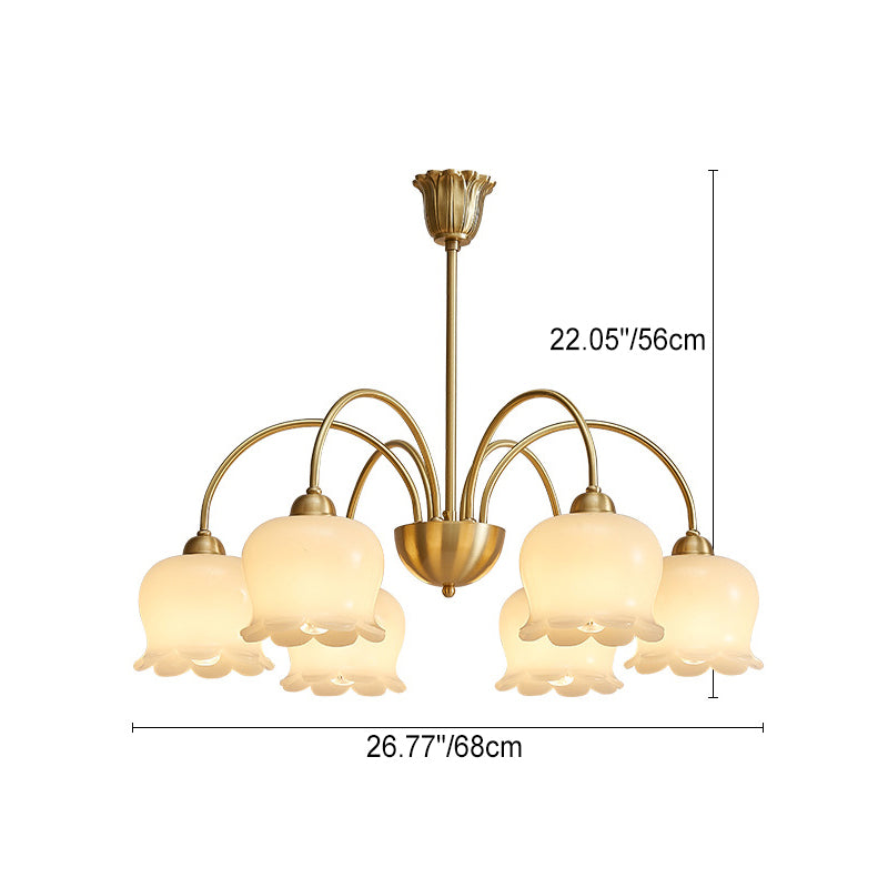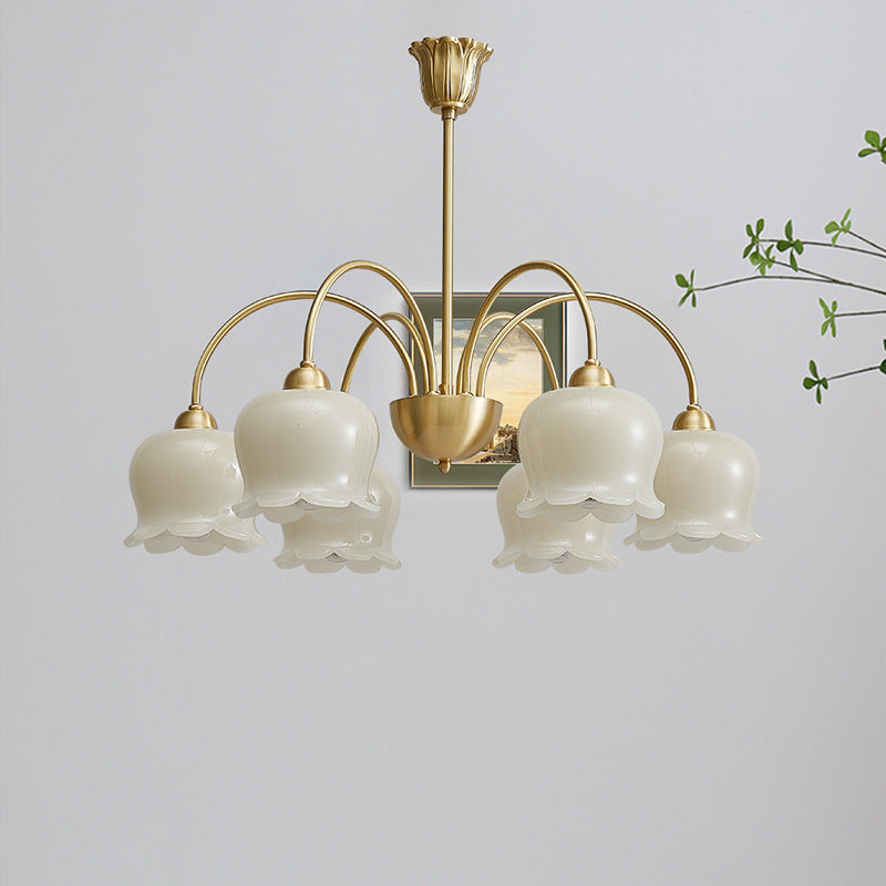 伝統的なフレンチクリーム色の花柄銅ガラス5/6/8灯シャンデリア(リビングルーム用)