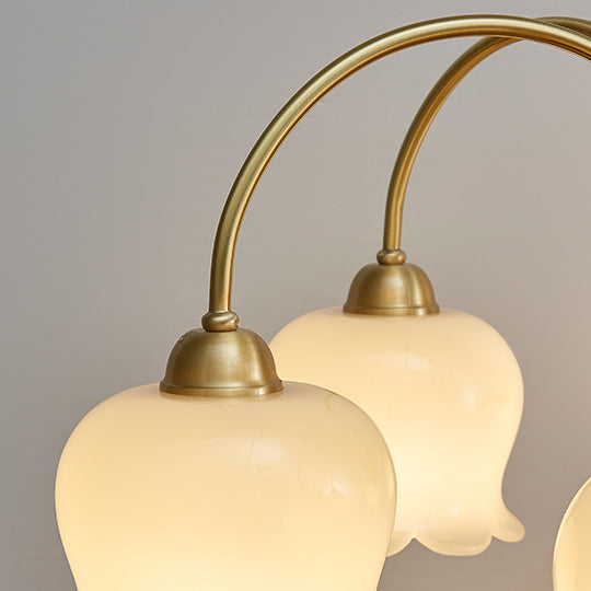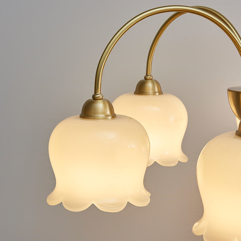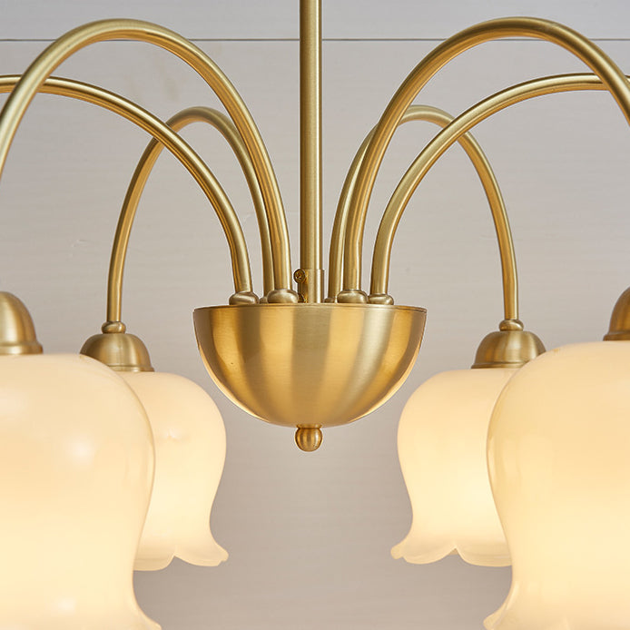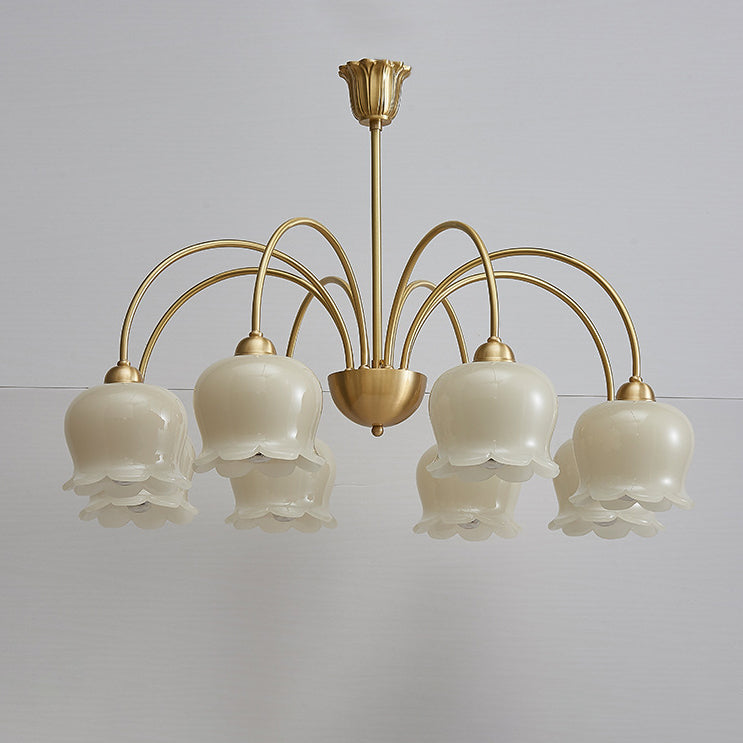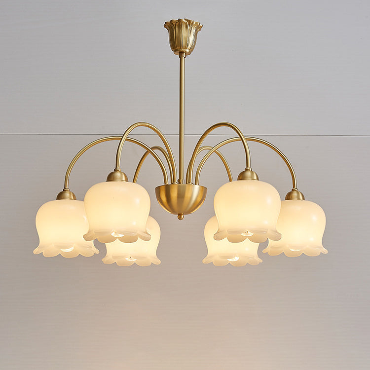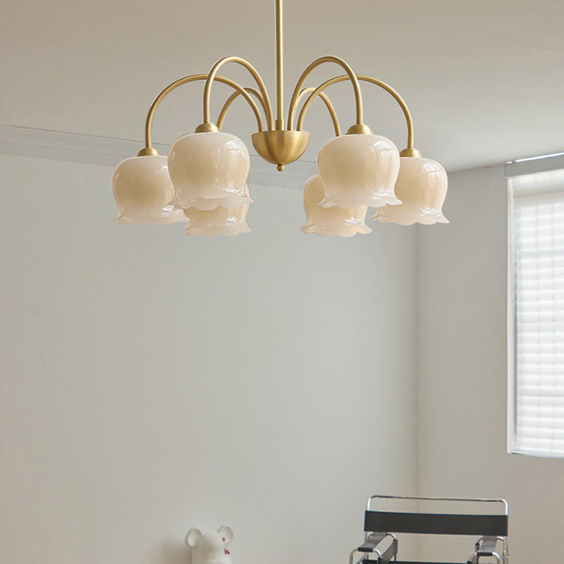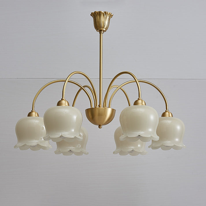 伝統的なフレンチクリーム色の花柄銅ガラス5/6/8灯シャンデリア(リビングルーム用)