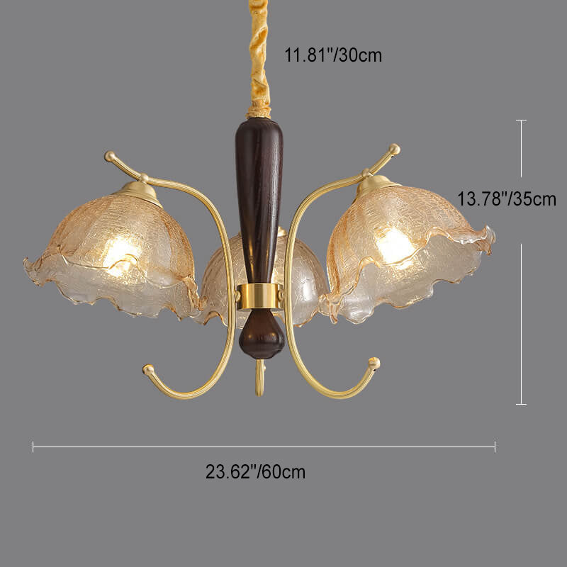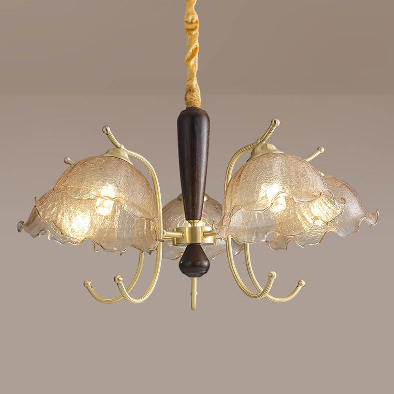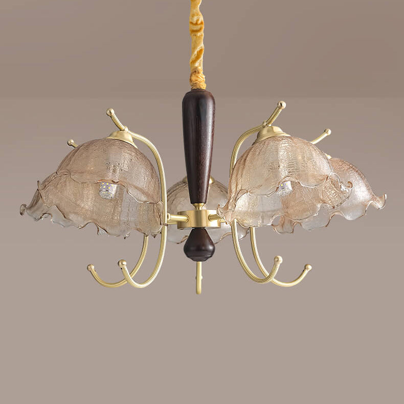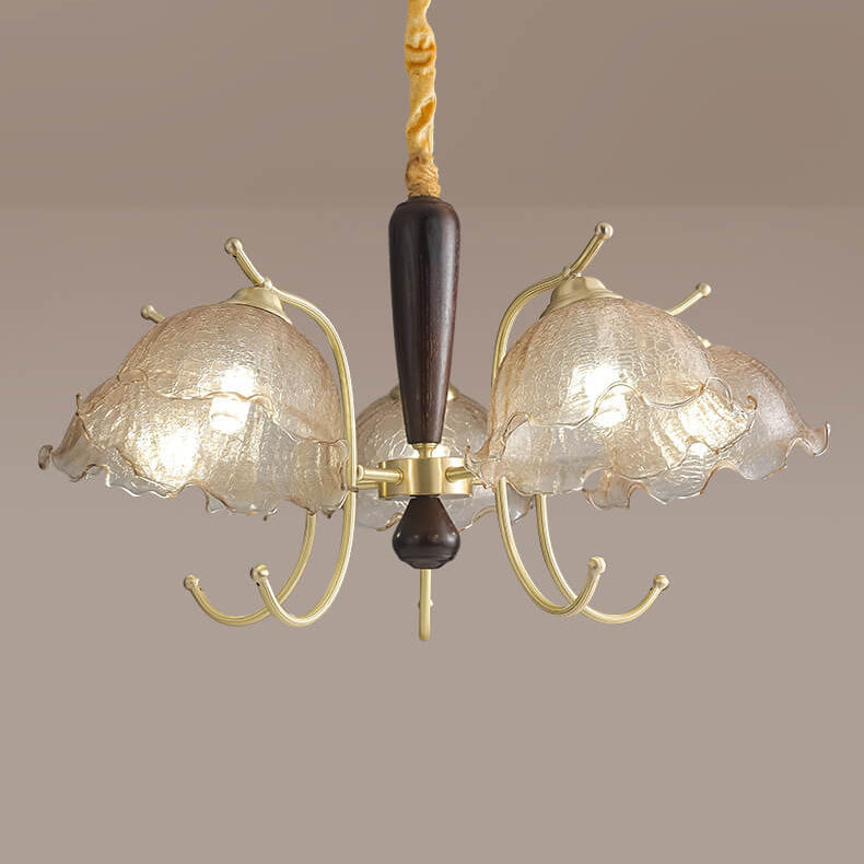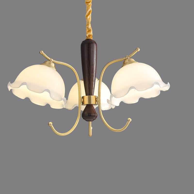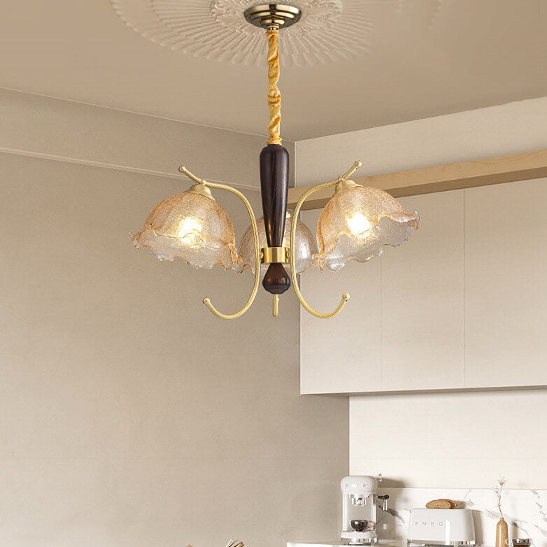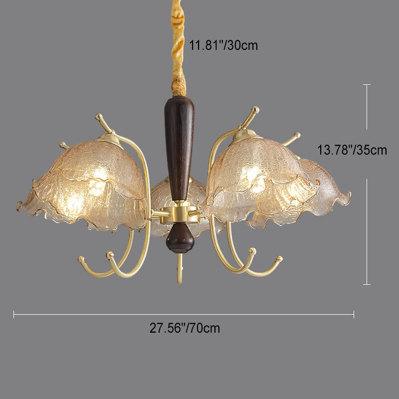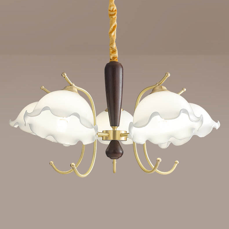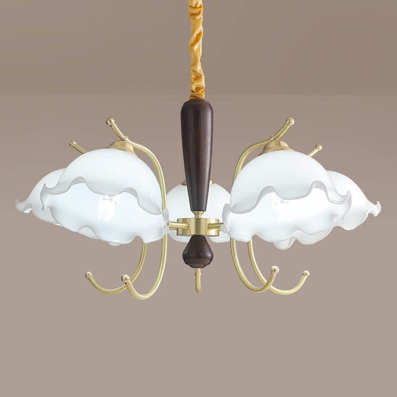 伝統的なフレンチクリームフラワー、アイアン、無垢材、ガラス、3/5ライトシャンデリア、リビングルーム用