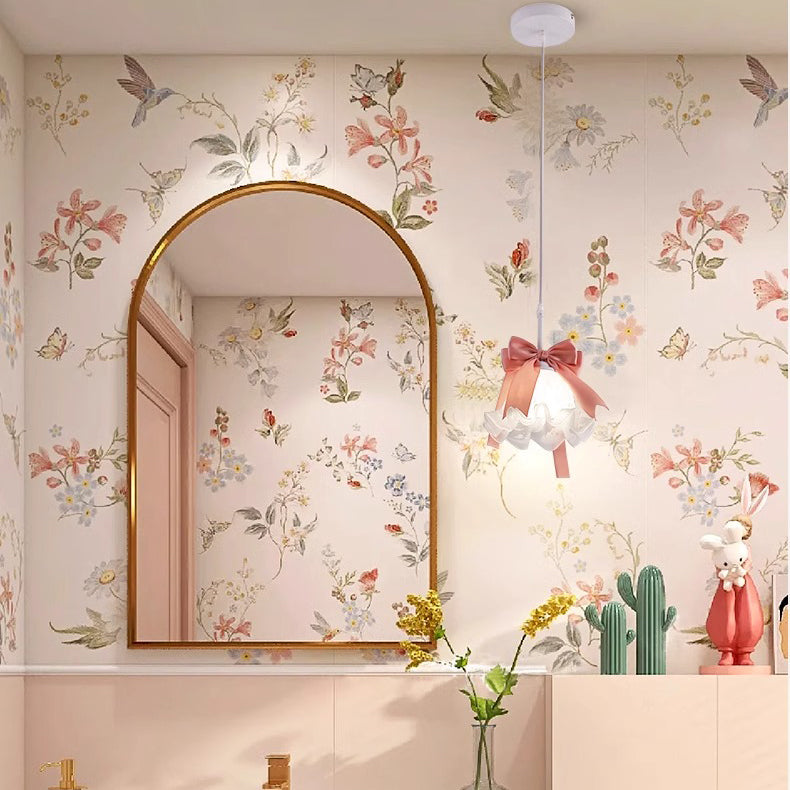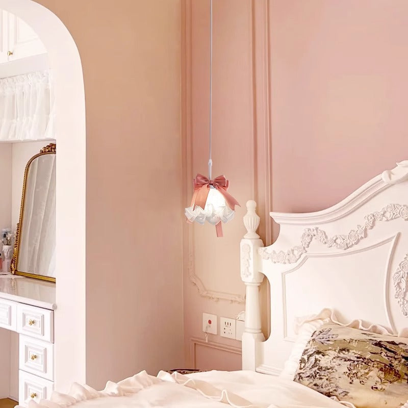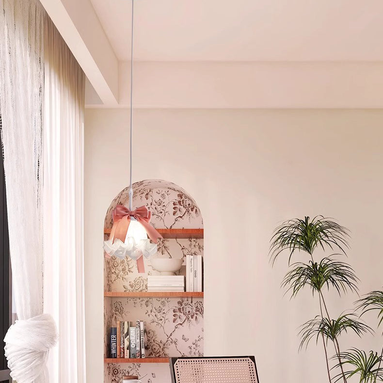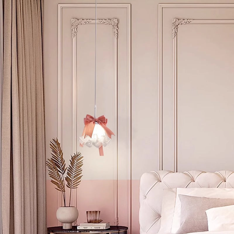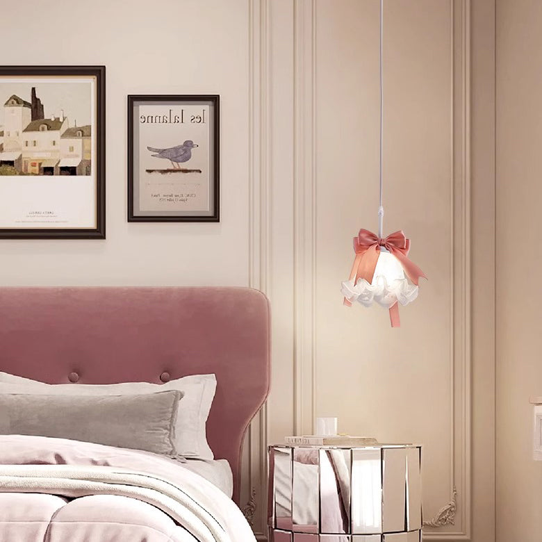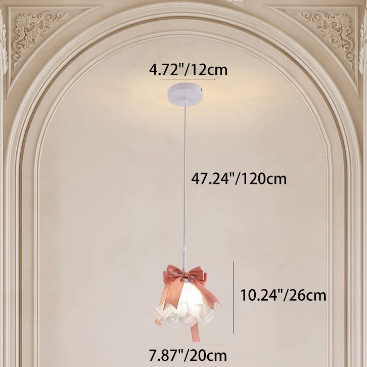 伝統的なフレンチクリームガールボウラウンドアイアンガラス1ライトペンダントライト寝室用