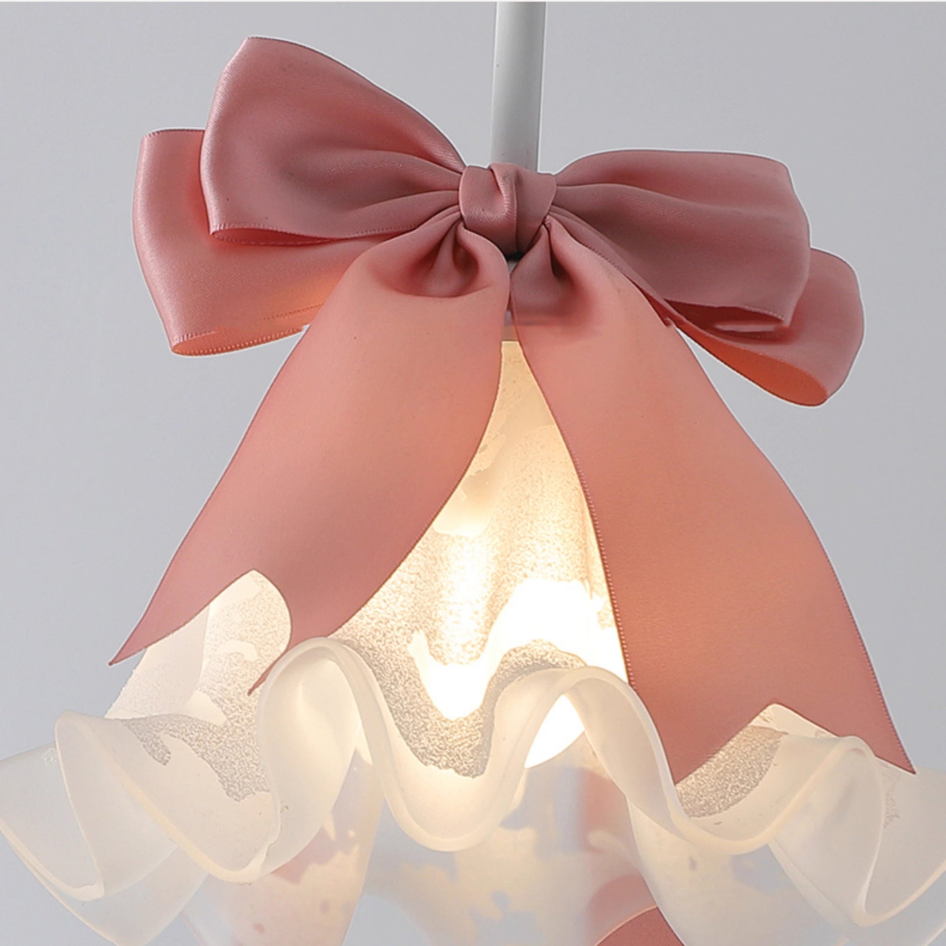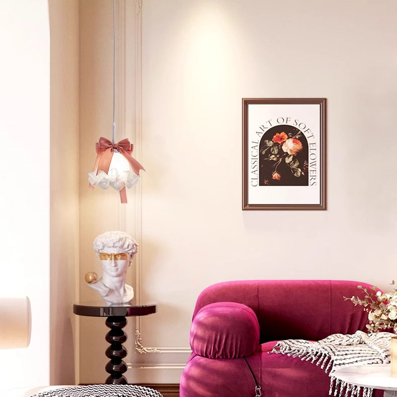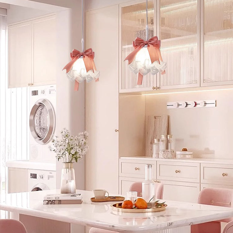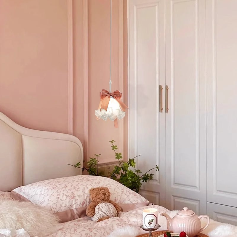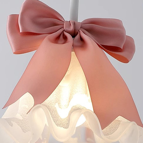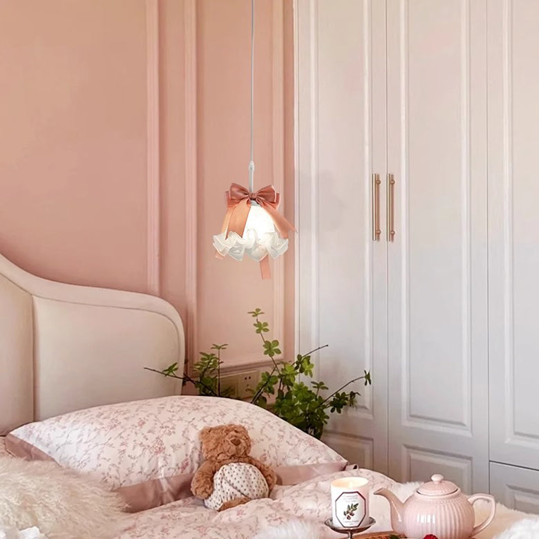 伝統的なフレンチクリームガールボウラウンドアイアンガラス1ライトペンダントライト寝室用