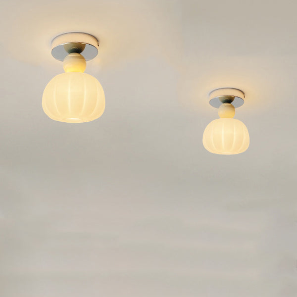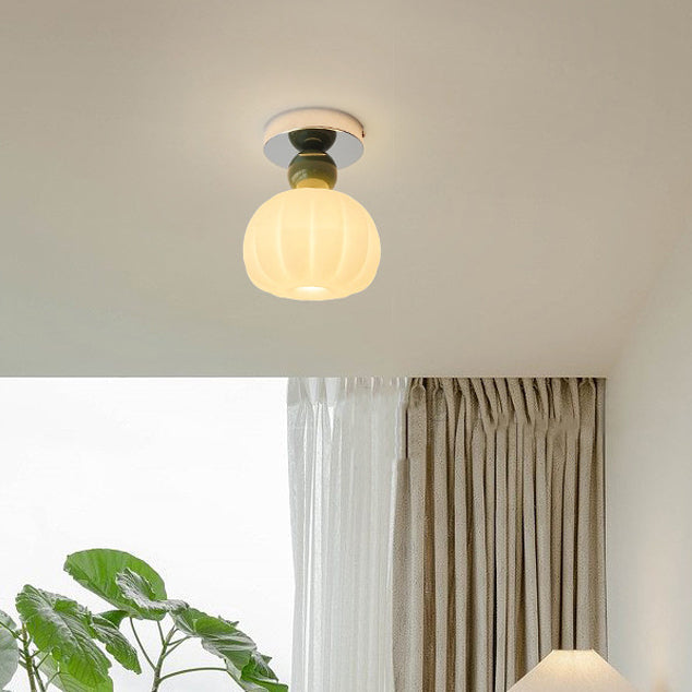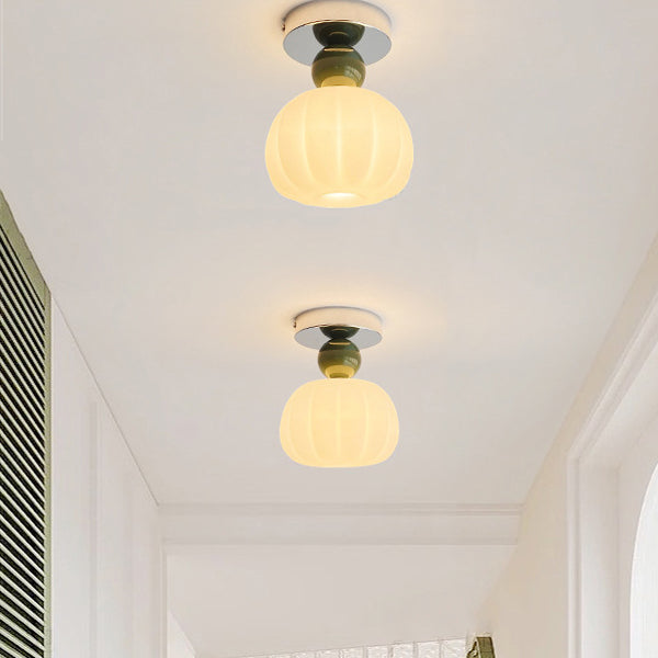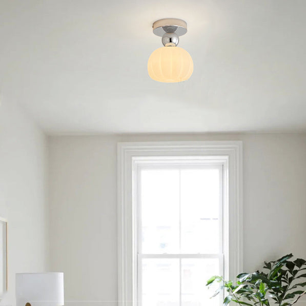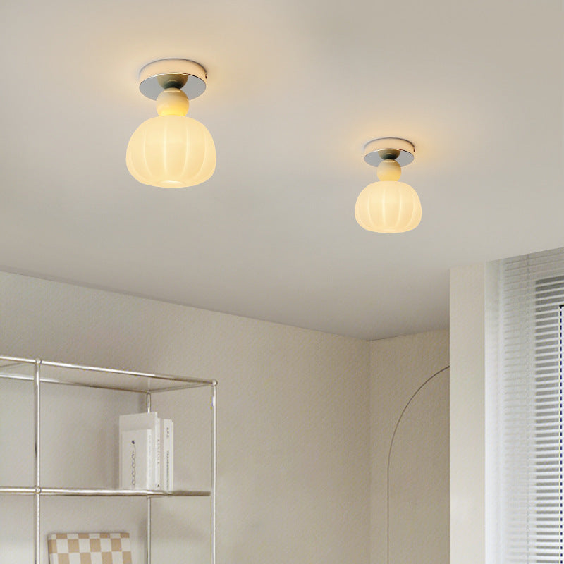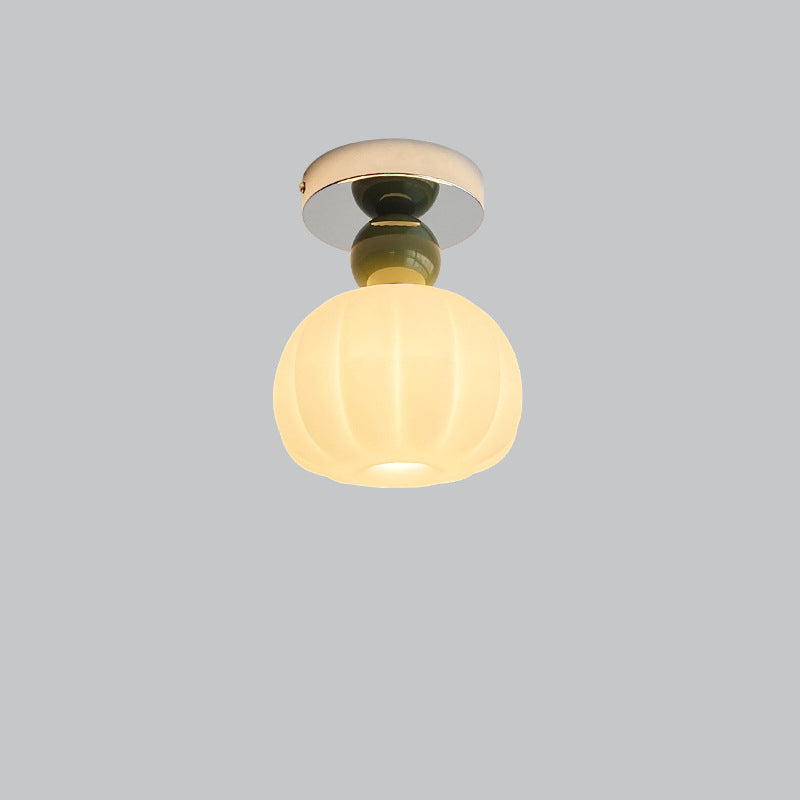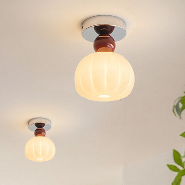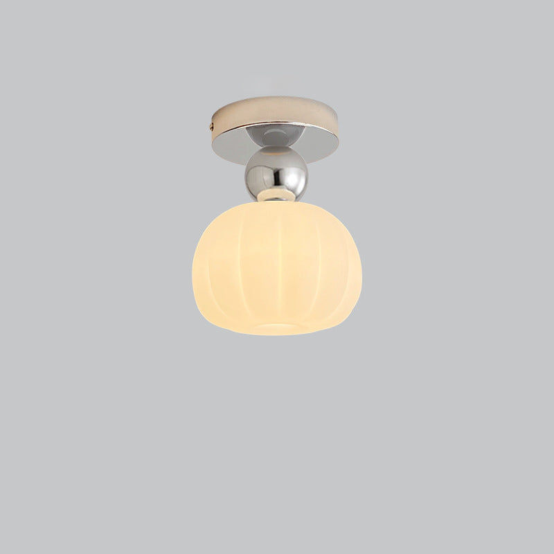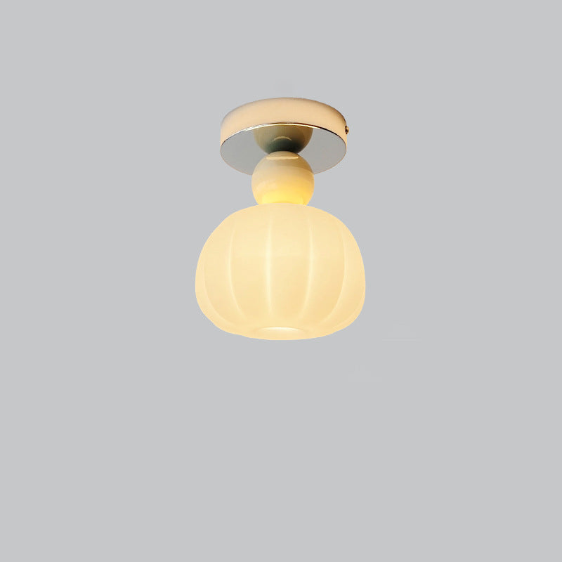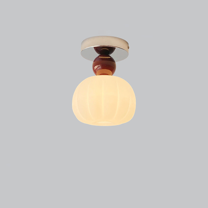 伝統的なフレンチクリームパンプキンラウンドアクリルアイアン1ライトセミフラッシュマウントシーリングライトリビングルーム用