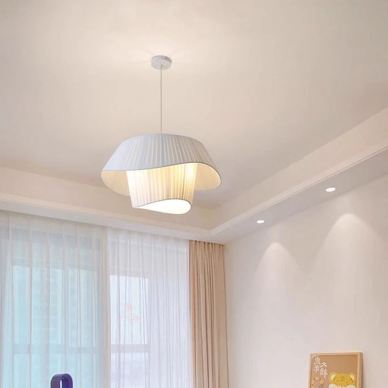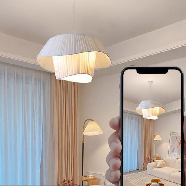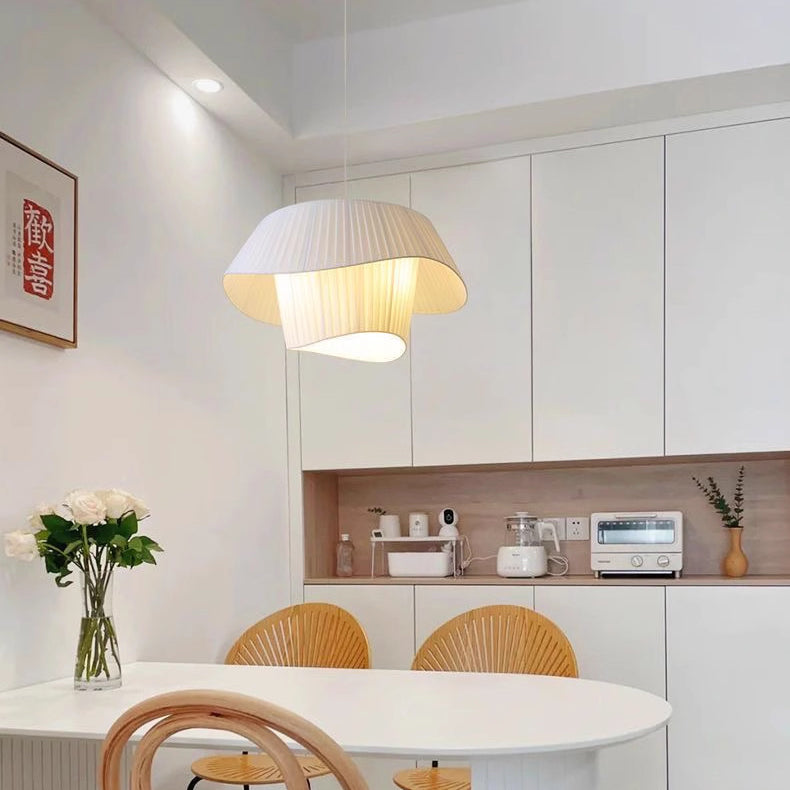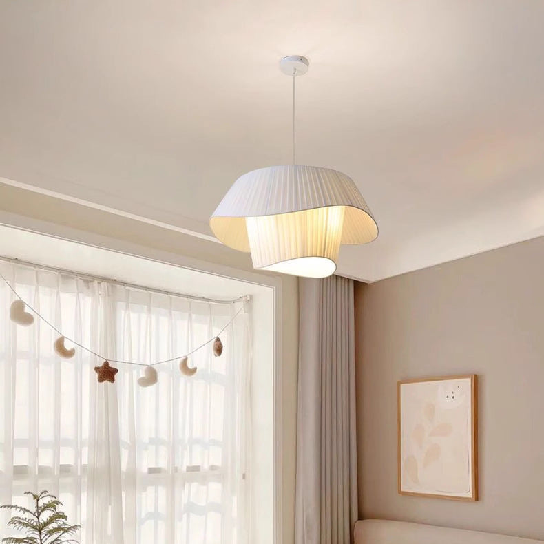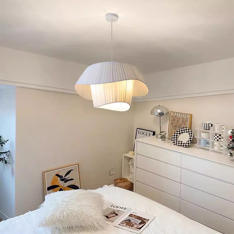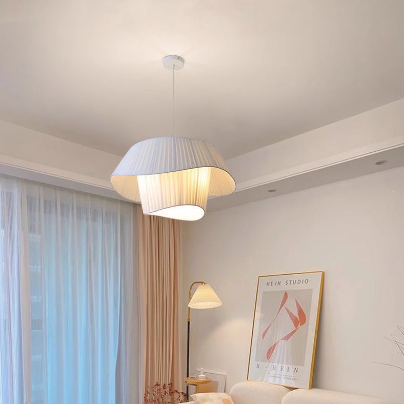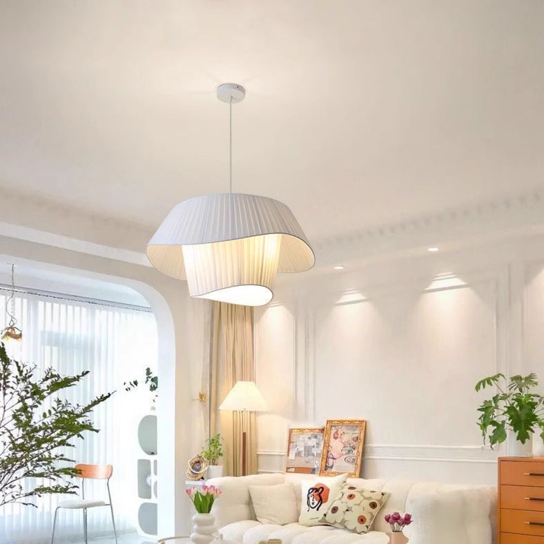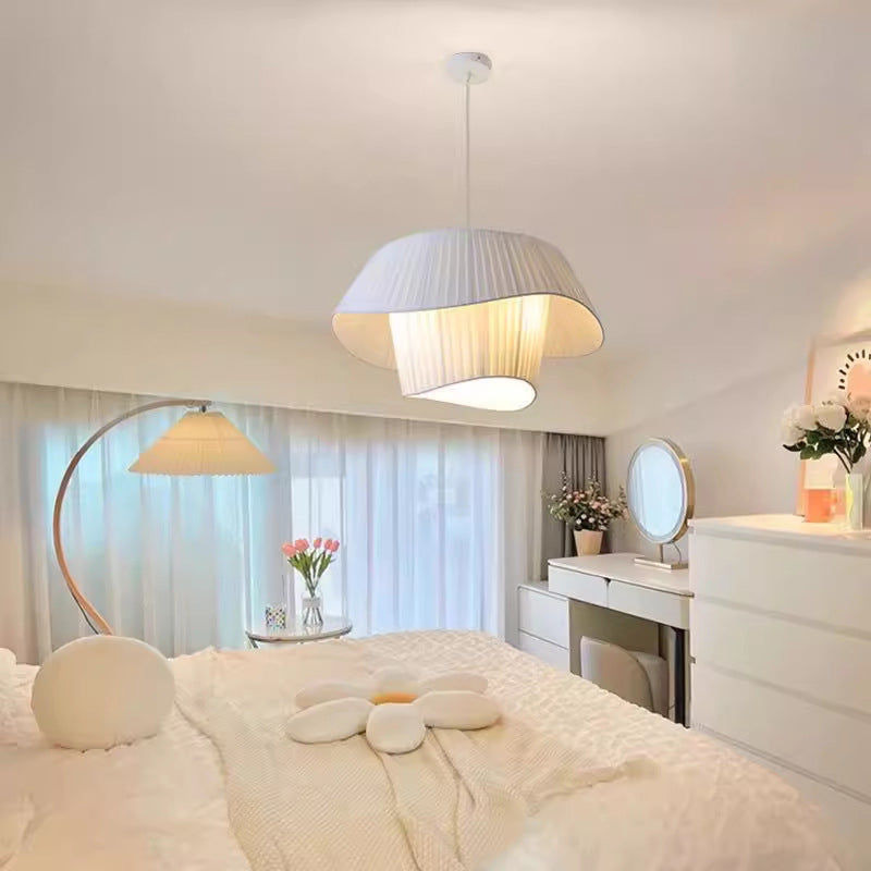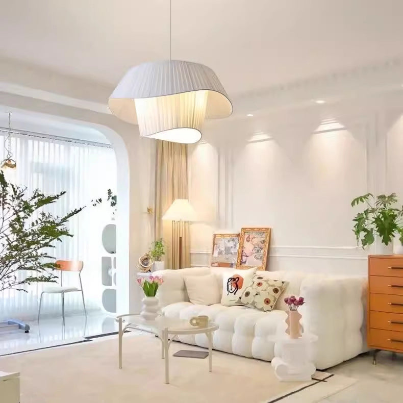 伝統的なフレンチクリームラウンドウェーブファブリックアイアン3ライトシャンデリア(リビングルーム用)