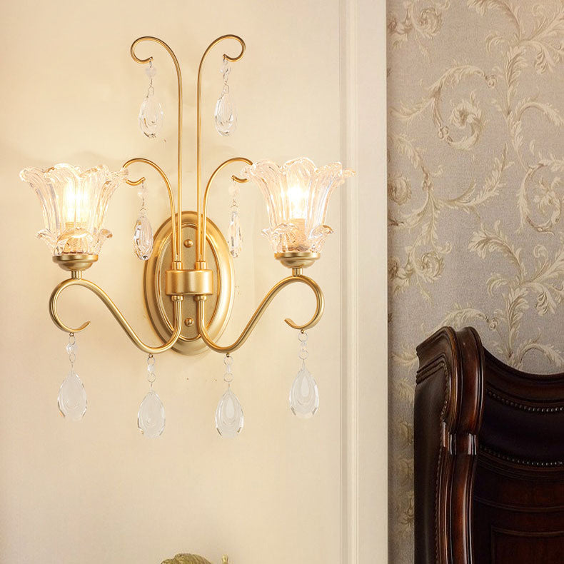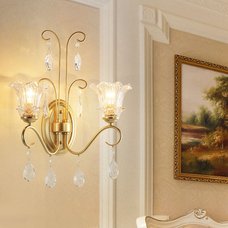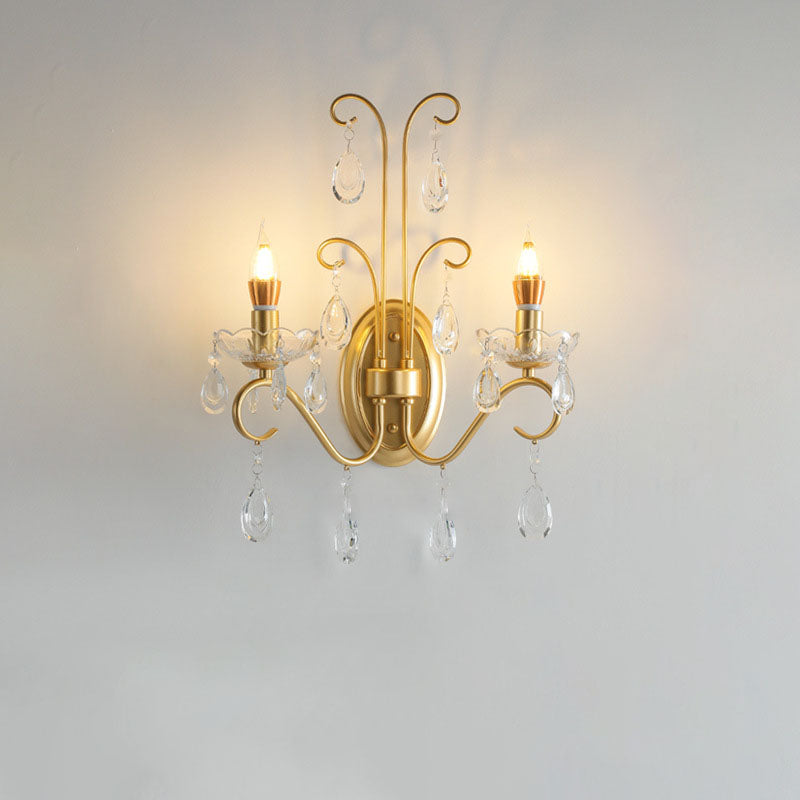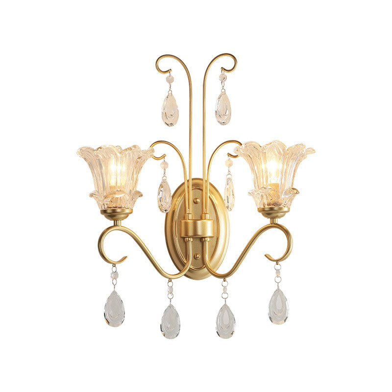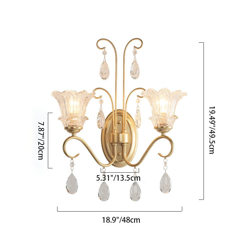 伝統的なフランス製クリスタルブランチ2灯壁取り付け用燭台ランプ(リビングルーム用)
