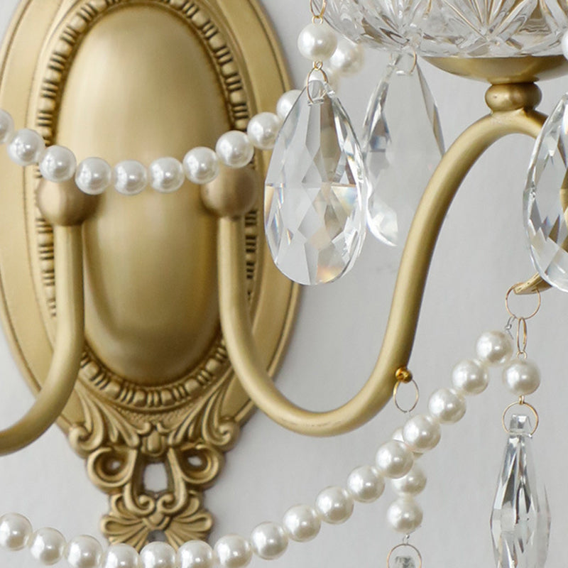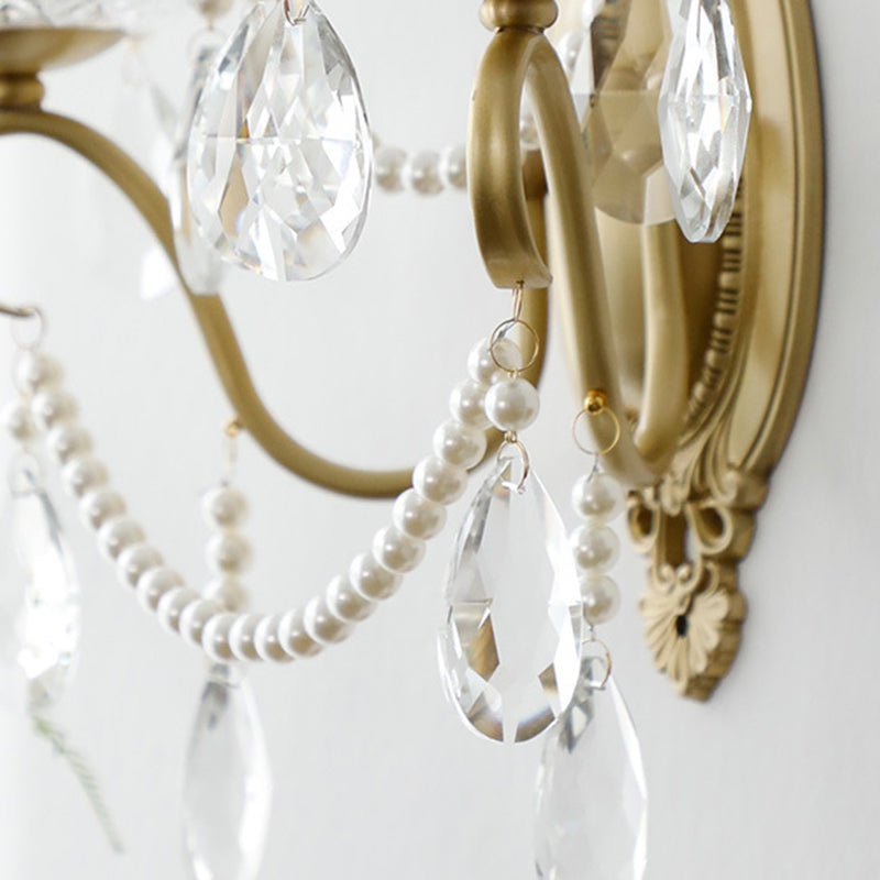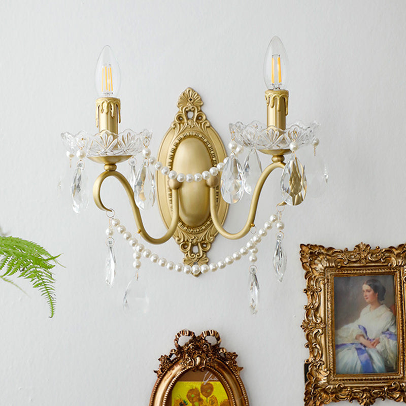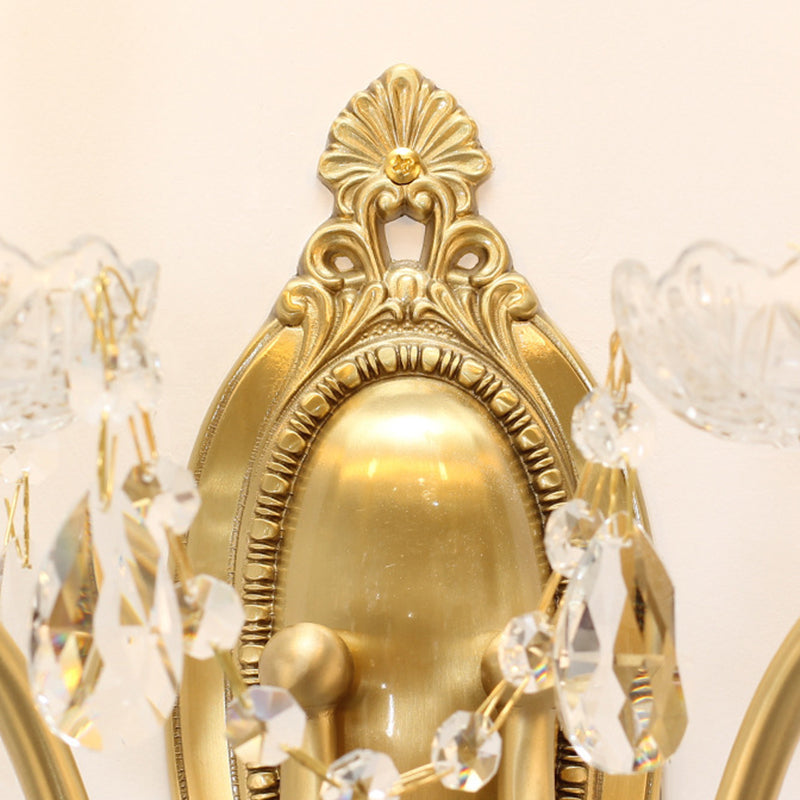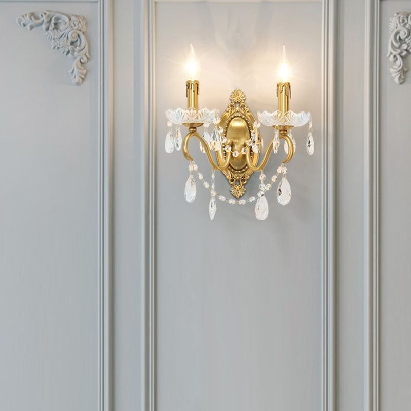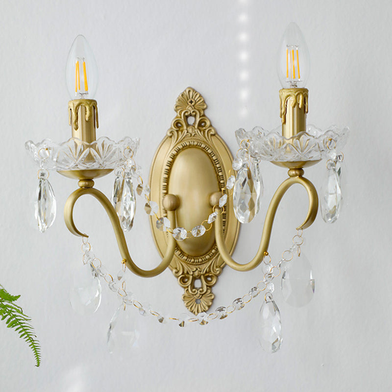 伝統的なフランスの曲線ポール燭台、彫刻された真鍮クリスタル2灯壁取り付け用燭台、リビングルーム用