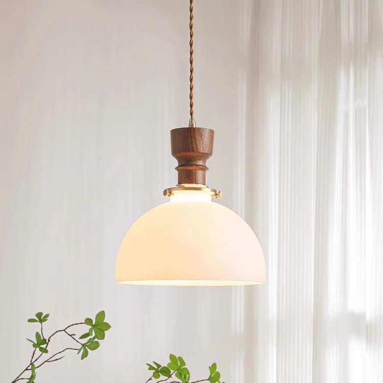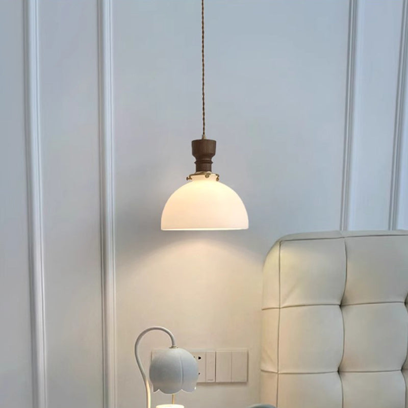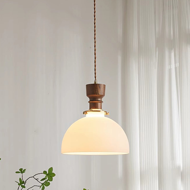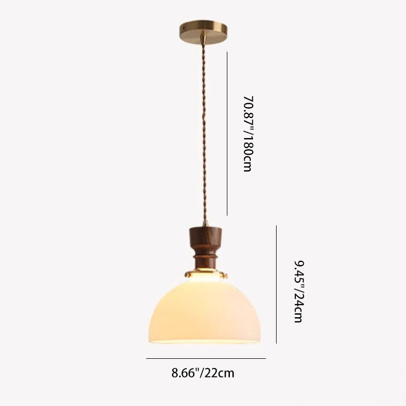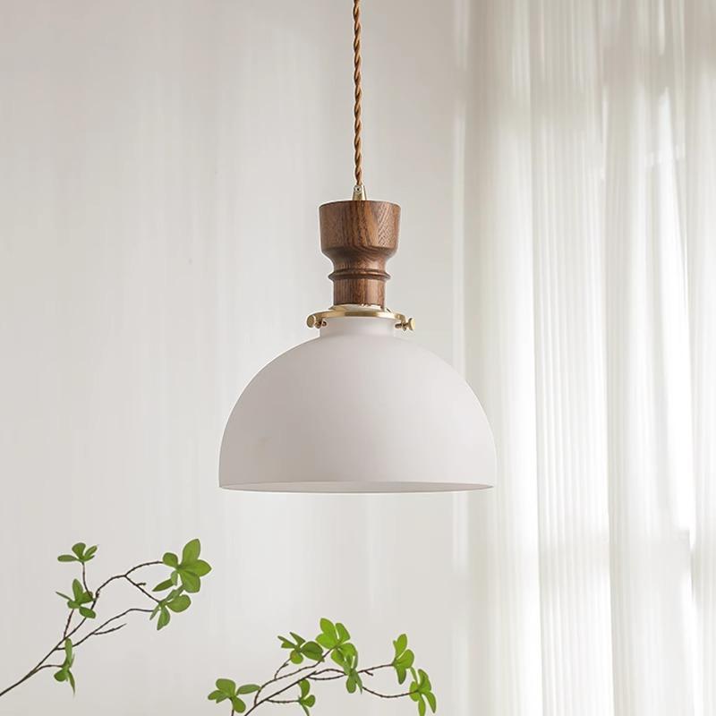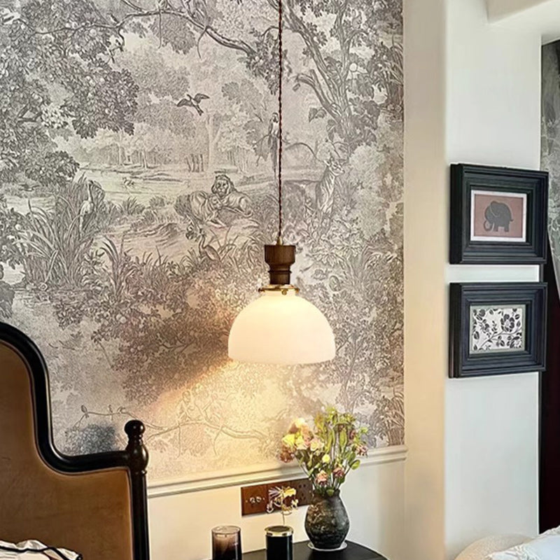 伝統的なフレンチドーム型銅・木製・ガラス製1灯ペンダントライト(リビングルーム用)