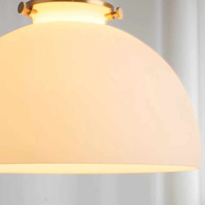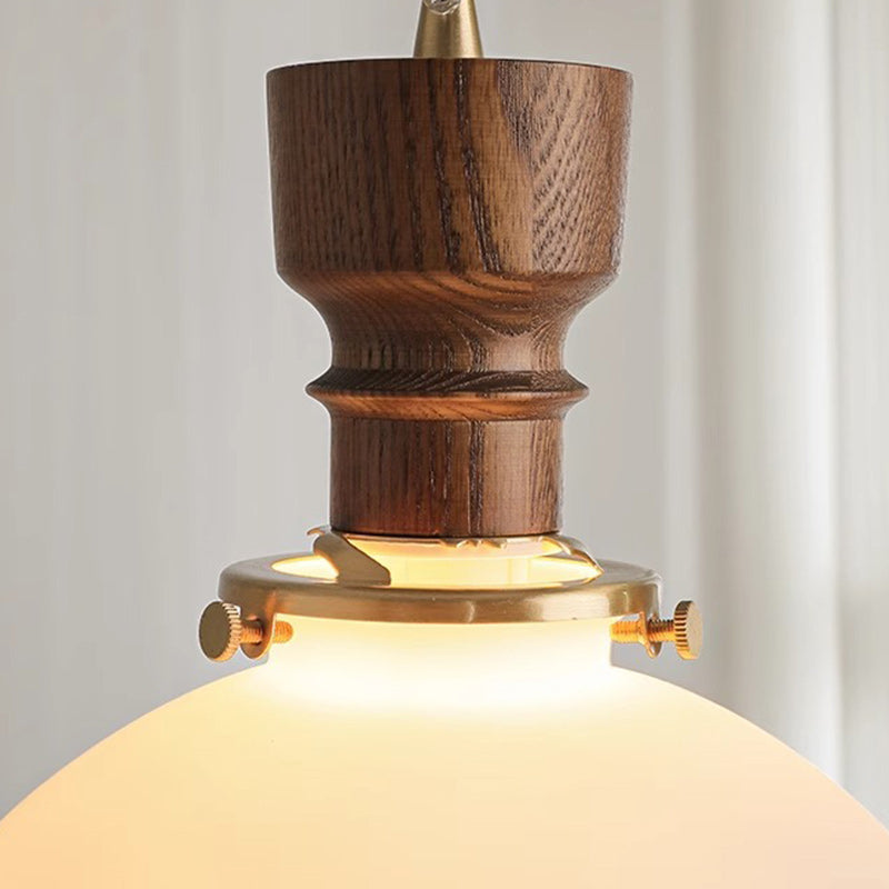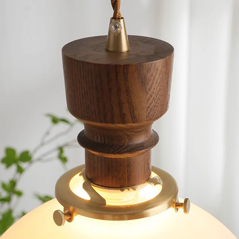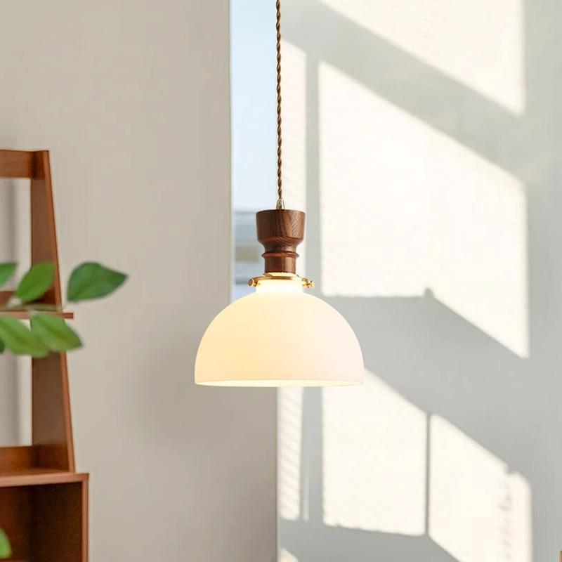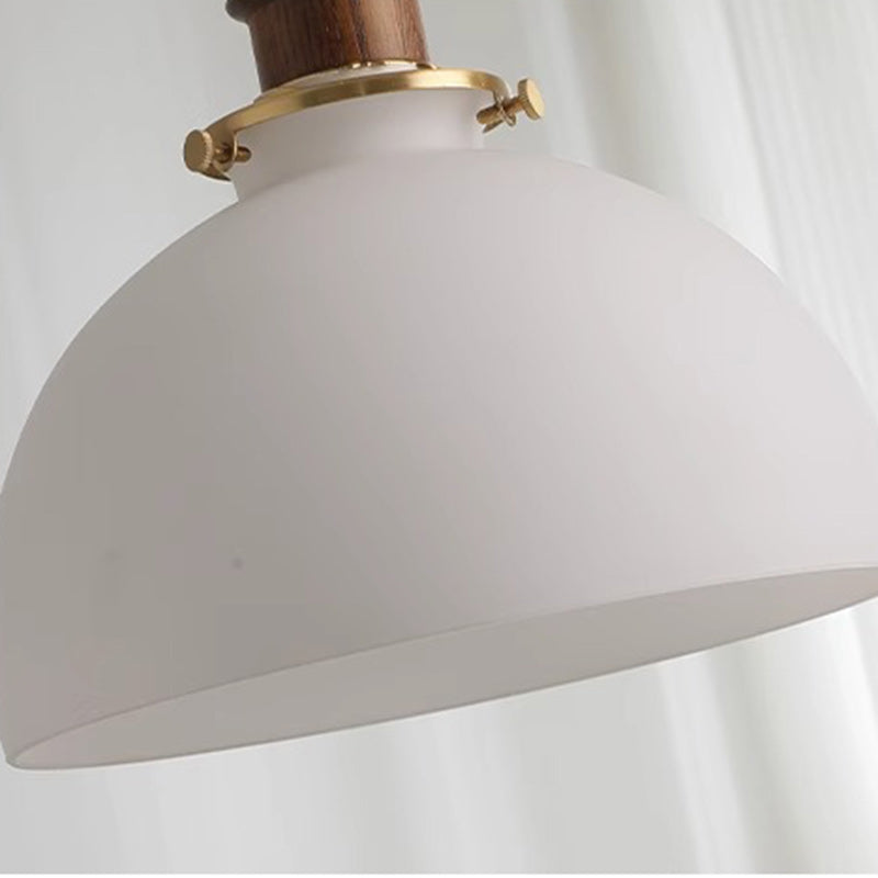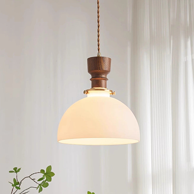 伝統的なフレンチドーム型銅・木製・ガラス製1灯ペンダントライト(リビングルーム用)