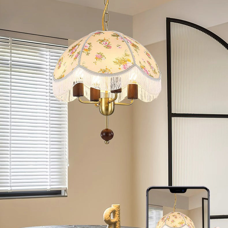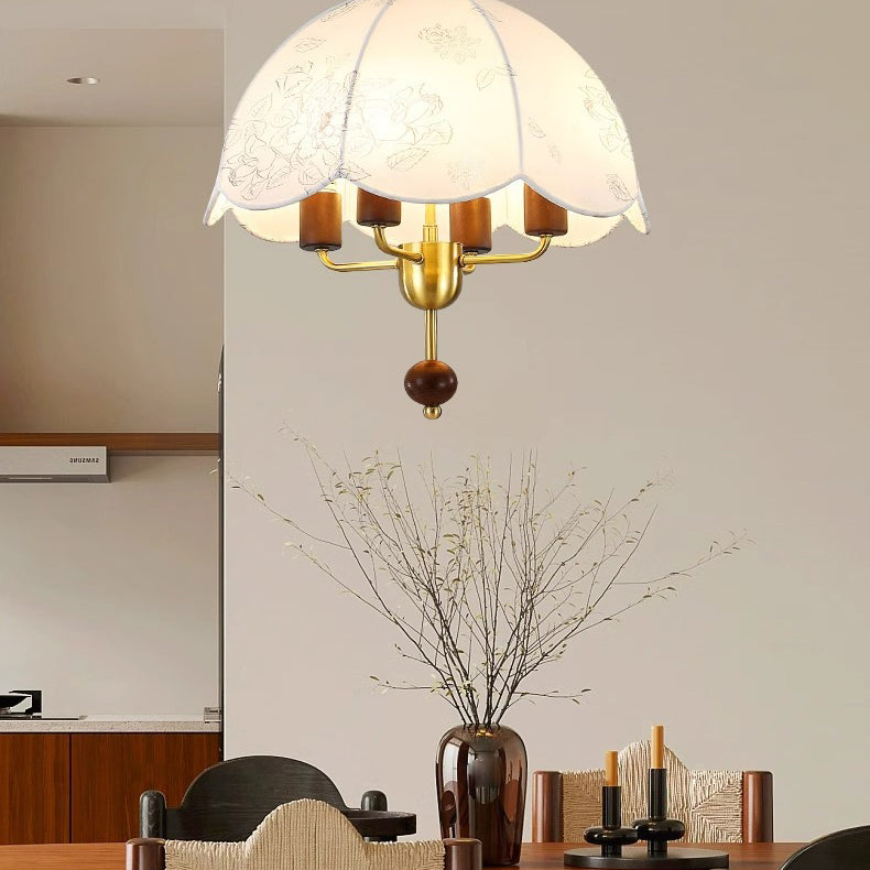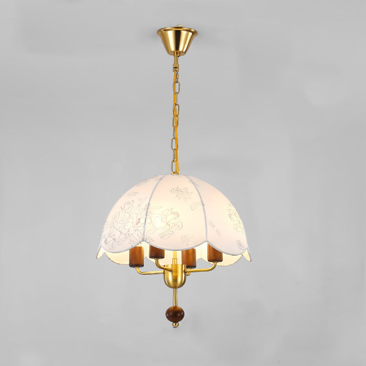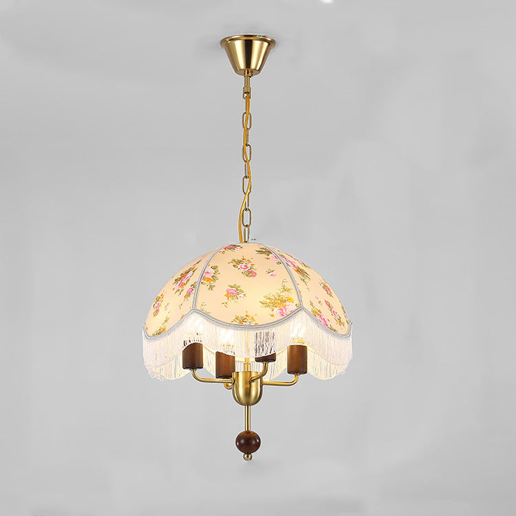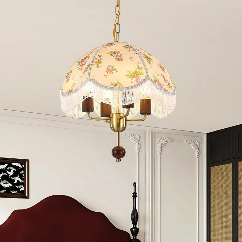伝統的なフレンチドームファブリックアイアン無垢材4灯ペンダントライト寝室用