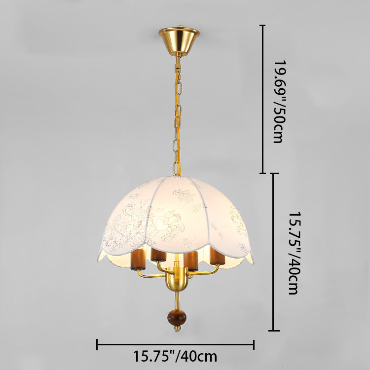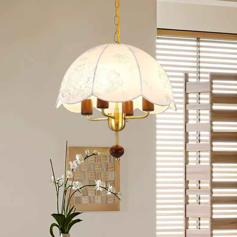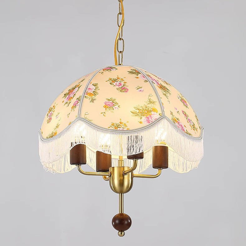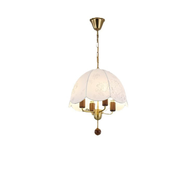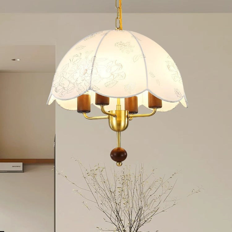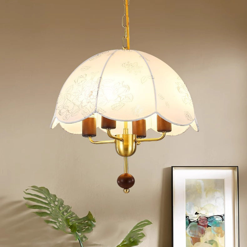 伝統的なフレンチドームファブリックアイアン無垢材4灯ペンダントライト寝室用